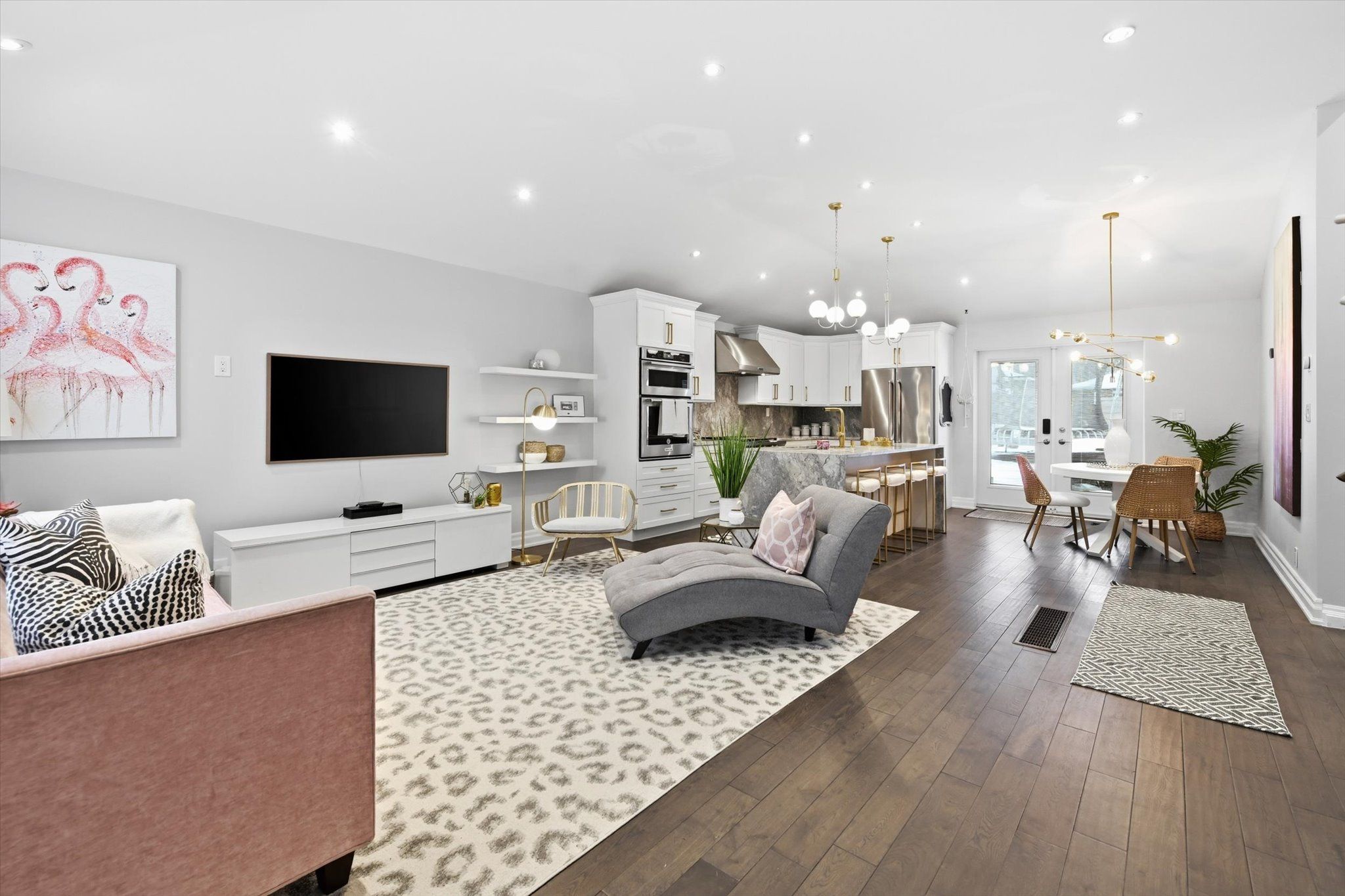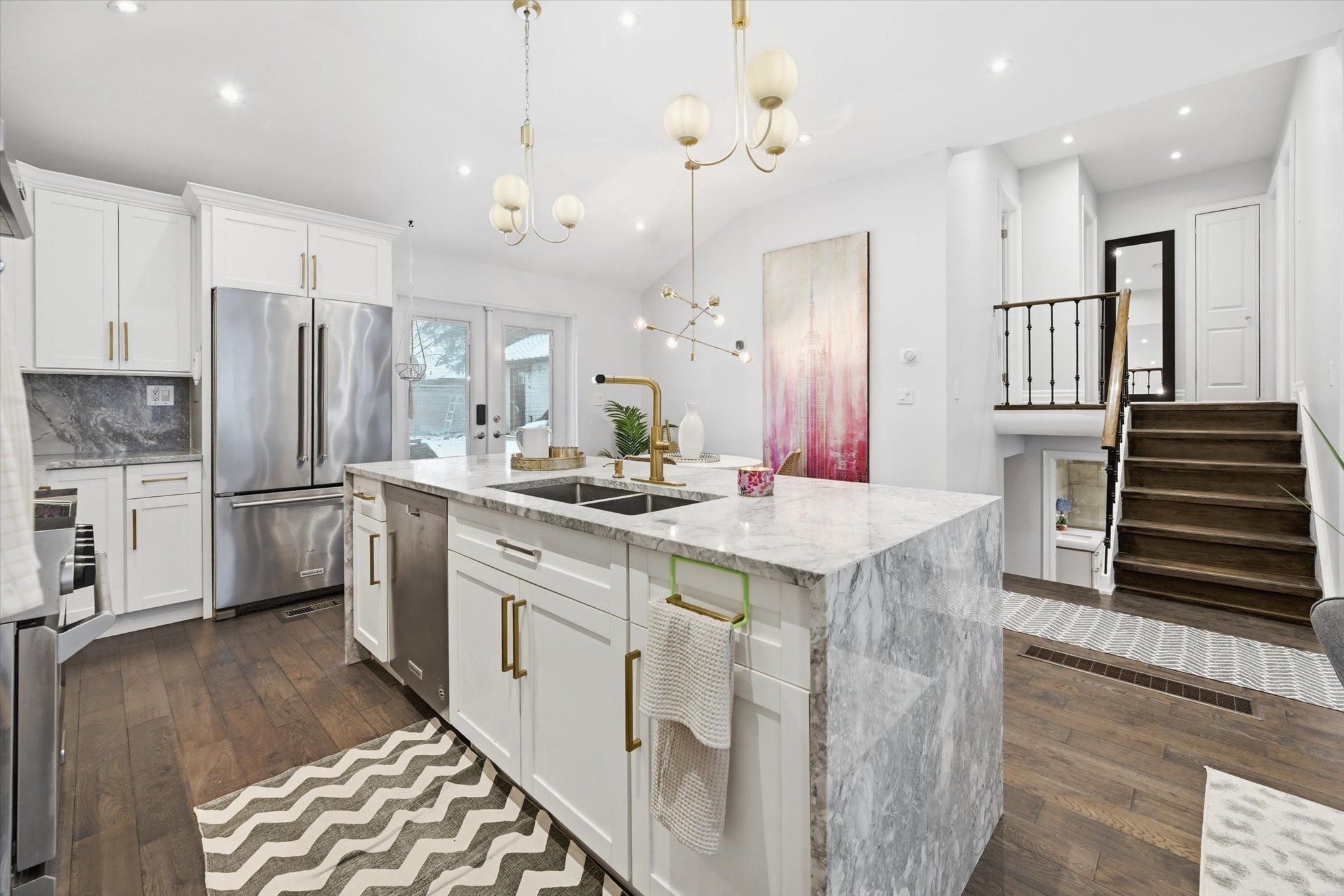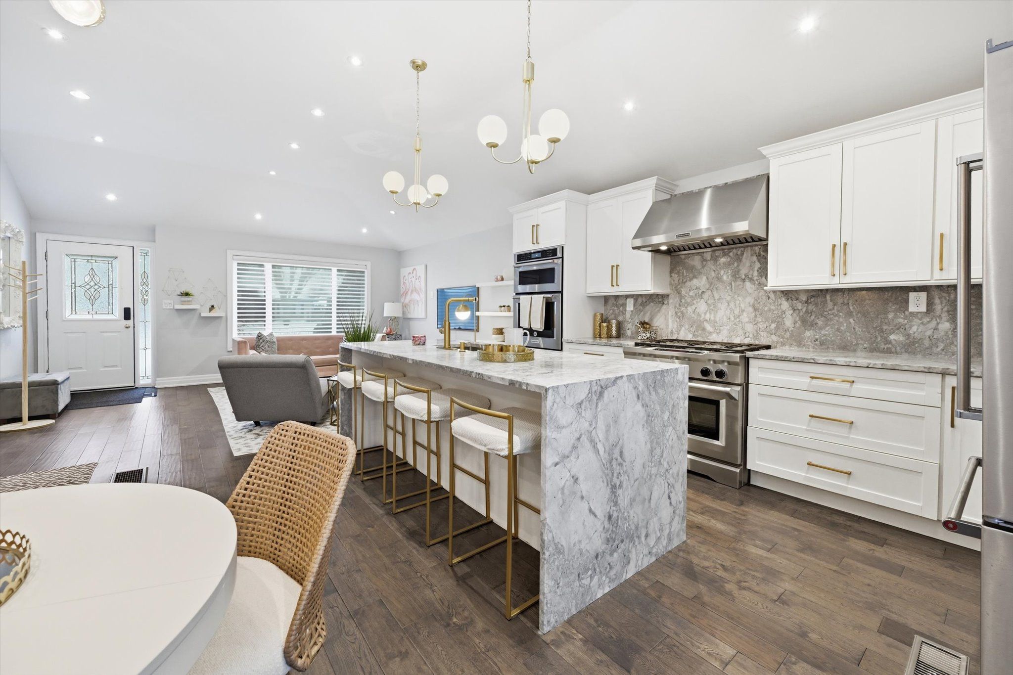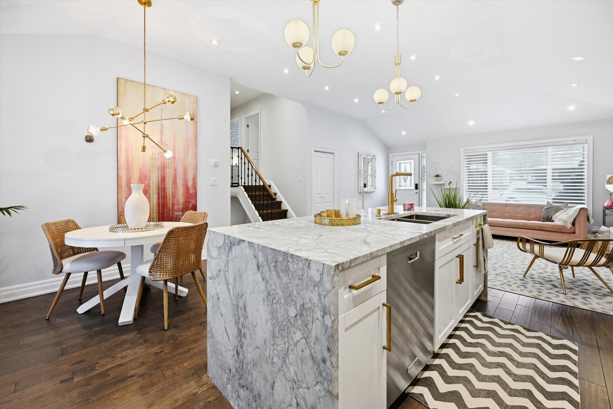 Welcome to 16 wareside road, a beautifully renovated 3+1 bedroom home nestled on a quiet, tree-lined street in one of etobicoke's most sought-after neighbourhoods. Located near top-rated schools and offering quick access to highways 401, 427, and the qew, this home combines exceptional convenience with the charm of a mature, family-friendly community. A complete interior remodel in 2017 transformed the home into a bright, open-concept living space with a clean, modern aesthetic. The main floor showcases 10' vaulted ceilings and seamless flow between the living, dining, and kitchen areas, all enhanced by pot lights throughout. The designer kitchen is a true showpiece, featuring granite countertops, a dramatic oversized waterfall island, custom cabinetry, and premium kitchenaid appliances, including a six-burner gas stove and double ovens - perfect for everyday living and entertaining. Upstairs, three spacious bedrooms offer comfortable family living, complemented by a fully renovated spa-inspired five-piece bathroom with double sinks, freestanding tub, glass-enclosed shower, and elegant marble tiled walls and floor. The finished lower level adds exceptional versatility, complete with a fourth bedroom, recreation area, and a second fully renovated full bathroom - ideal for an in-law suite, teen retreat, or private guest quarters. Nearly $100,000 in exterior upgrades further elevate the property's curb appeal and long-term value, including driveway paving, exterior painting, custom front stonework, backyard stonework, and new fencing for added privacy. The oversized insulated garage (approximately 13' x 35') provides outstanding flexibility - perfect for multiple vehicles, storage, a workshop, or future customization. Just minutes from centennial park, with planned redevelopment bringing enhanced playgrounds, trails, and family-friendly amenities. This turnkey home offers the perfect blend of modern living, thoughtful upgrades, and an unbeatable location.