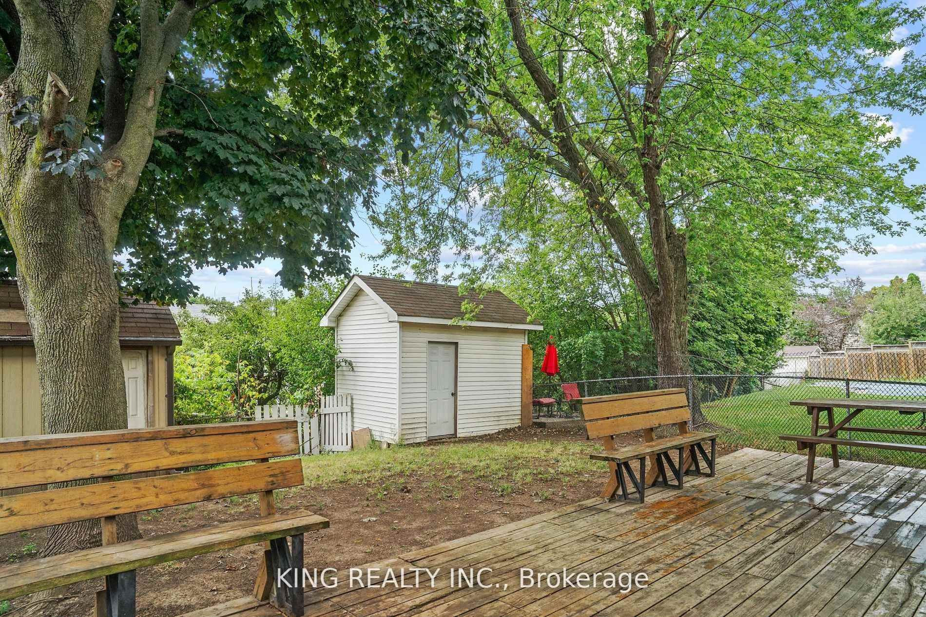 Location advantage nicely tucked away on a quiet, large court! This charming 3-bedroom family home offers the perfect balance of coziness and space, ideal for comfortable everyday living. Enjoy a sun-filled kitchen with an abundance of brand new cabinetry and a walkout to a large wooden deck that overlooks the private backyard complete with two powered sheds and a convenient side entrance and finished basement. Step inside to find a well-designed floorplan with generously sized rooms and several recent upgrades throughout, including:- brand new oak hardwood stairs and hardwood flooring across the entire upper level, fresh paint throughout the whole house, new stove, dishwasher and chimney, updated baseboards and shoe molding, beautifully redone patio woodwork. This is a move-in ready gem, perfectly located in a peaceful court setting while still being close to all amenities. A must-see for growing families or anyone looking for space, updates, and a quiet, friendly neighborhood!