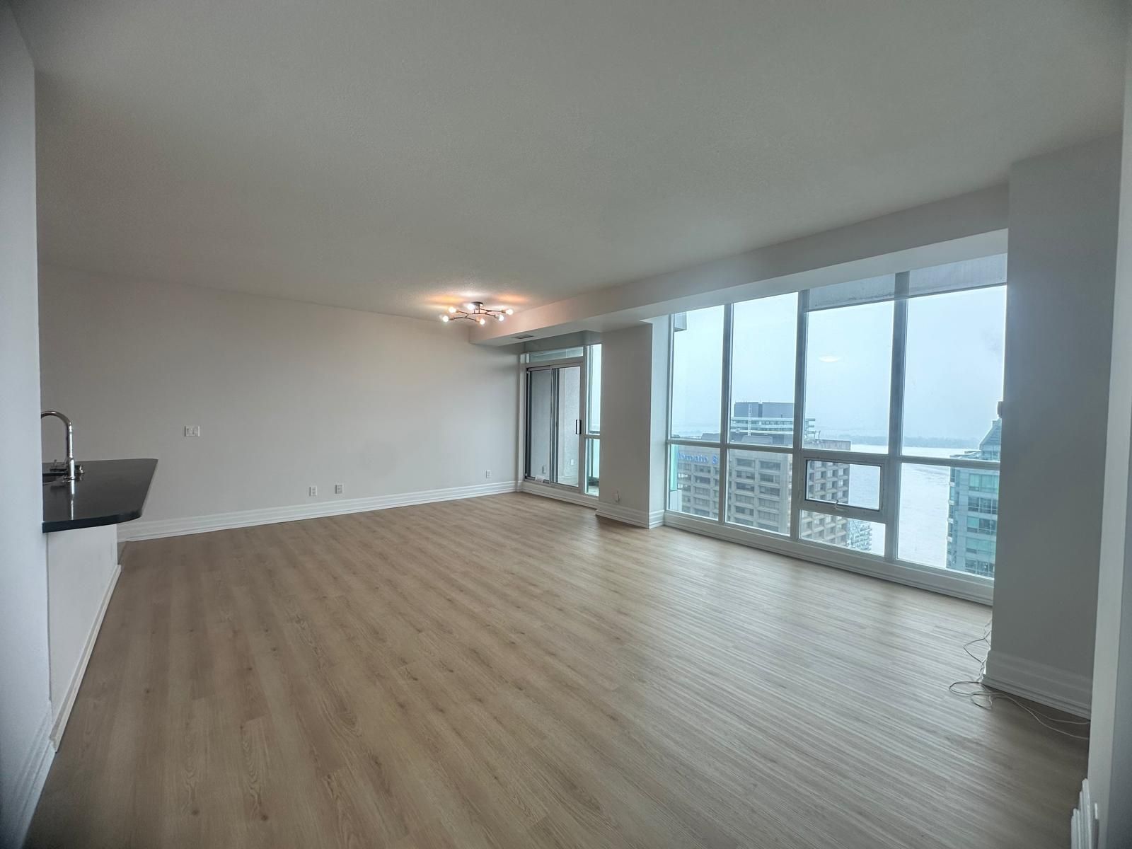 Spectacular downtown location, corner suite with south west views of the lake from 2 balconies. Steps to waterfront, subway, scotia arena, shopping and more, approx 1415 sqft plusterrace and balconies, two side by side parkings next to exclusive locker, 9'+ ceilings, floor to ceiling windows, breathtaking south exposures overlooking the lake and city skyline, freshly painted. Available for immediate occupancy.