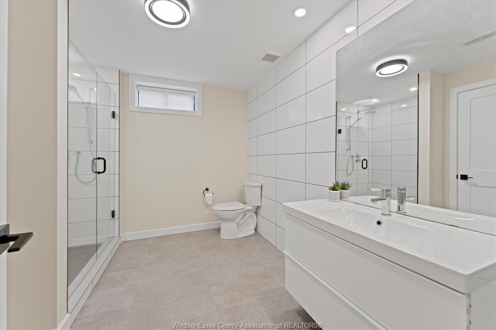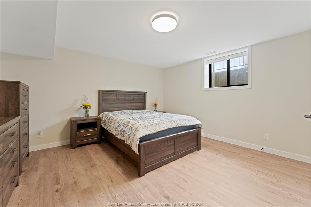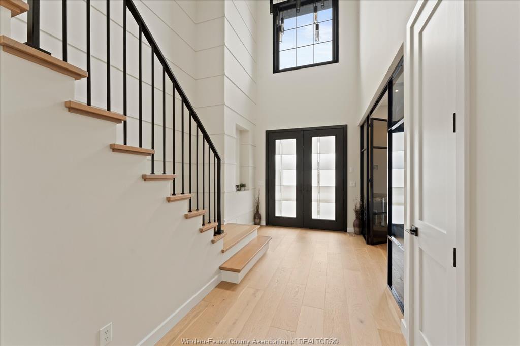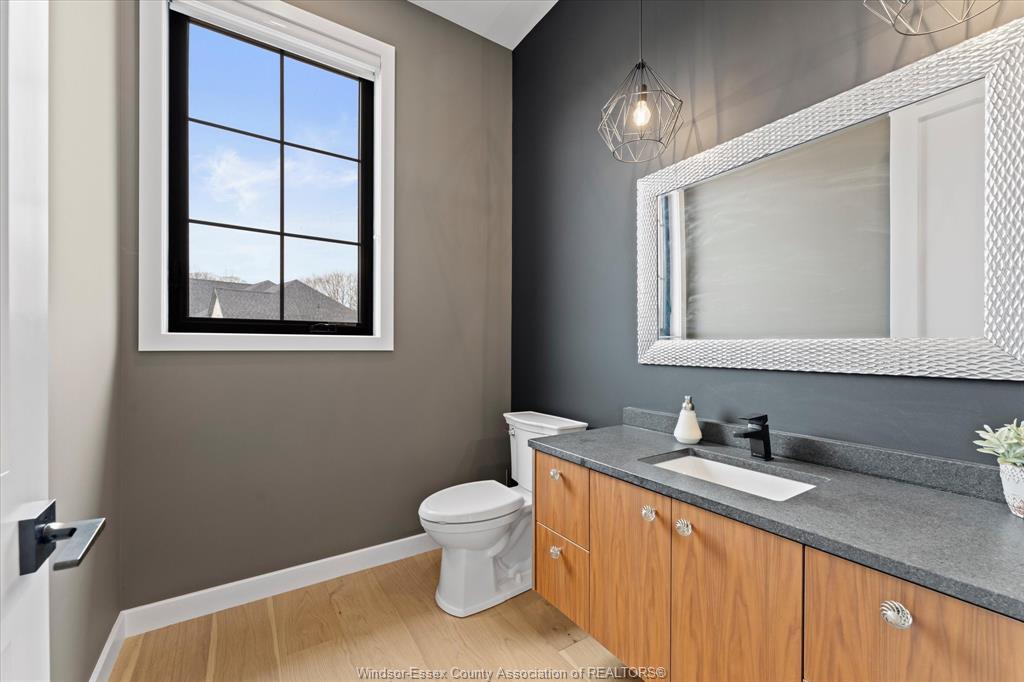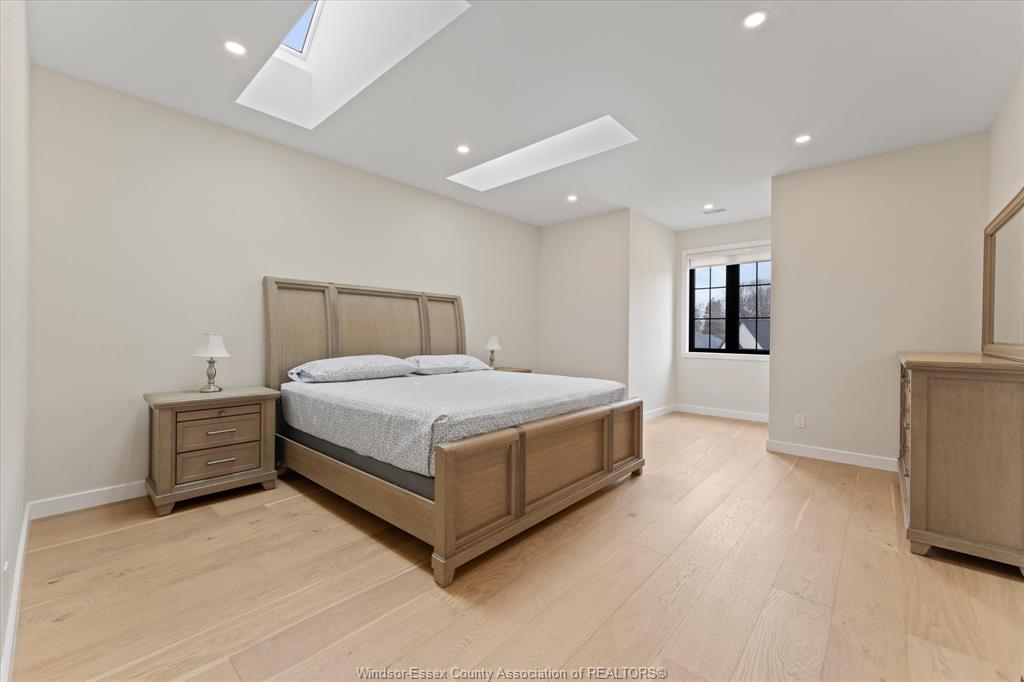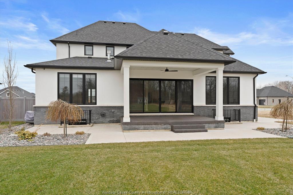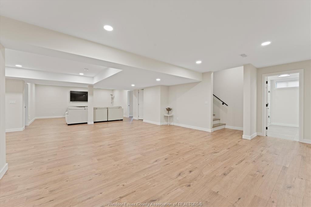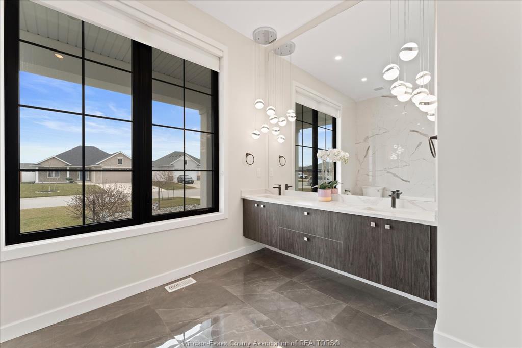 Stunning custom-built two-storey home (2022) set on an exceptional 80 x 350 ft lot backing onto a conservation area, offering rare privacy and picturesque natural views. Boasting over 3,200 sq ft plus a fully finished basement, this home is filled with natural light, highlighted by expansive windows and soaring 12 ft ceilings on the main floor. Thoughtfully designed with elegant, modern finishes throughout, the main level features a luxurious primary suite with a spa-inspired ensuite and heated floors, and a private office with full glass doors. The beautifully appointed chef’s kitchen showcases a large angled center island with quartz countertops and integrated sink, ceiling-height custom cabinetry, stylish backsplash, and high-end stainless steel appliances including a built-in oven and gas cooktop. The open-concept layout flows seamlessly into the dining and living areas, where you’ll find custom ceiling details, built-in shelving, and a gas fireplace, along with an extra-wide patio door leading to a covered porch overlooking the serene natural setting. Upstairs offers three spacious bedrooms, including a junior ensuite, along with skylights that enhance the bright and airy ambiance. The fully finished basement provides exceptional versatility with a summer kitchen, two additional bedrooms, a family room, and a grade-level entrance. Additional highlights include hardwood flooring throughout, a landscaped yard, two-zone heating and cooling, a double car garage, and an extra-wide driveway. Ideally located in one of kingsville’s most desirable areas, just steps from the kingsville golf club and minutes to downtown, the lake erie waterfront, parks, and local wineries. An exceptional opportunity to enjoy refined living in a setting that perfectly balances tranquility and convenience.