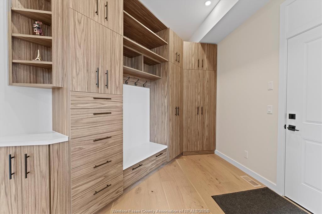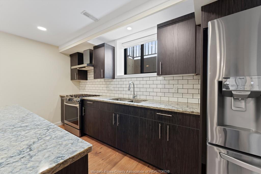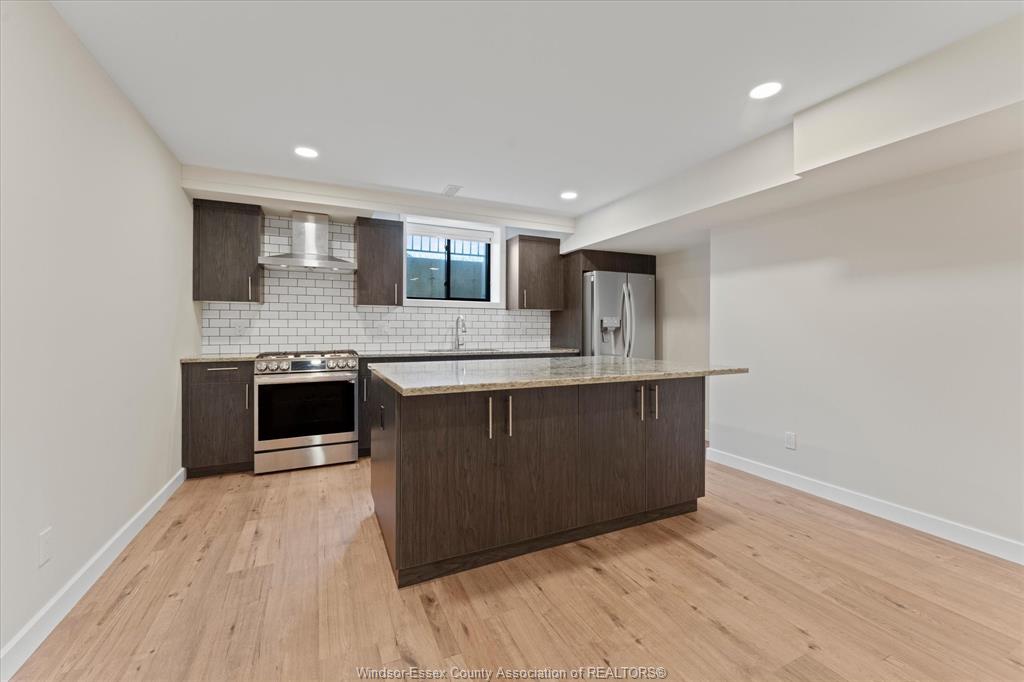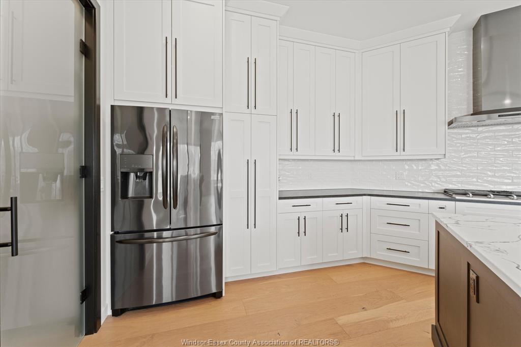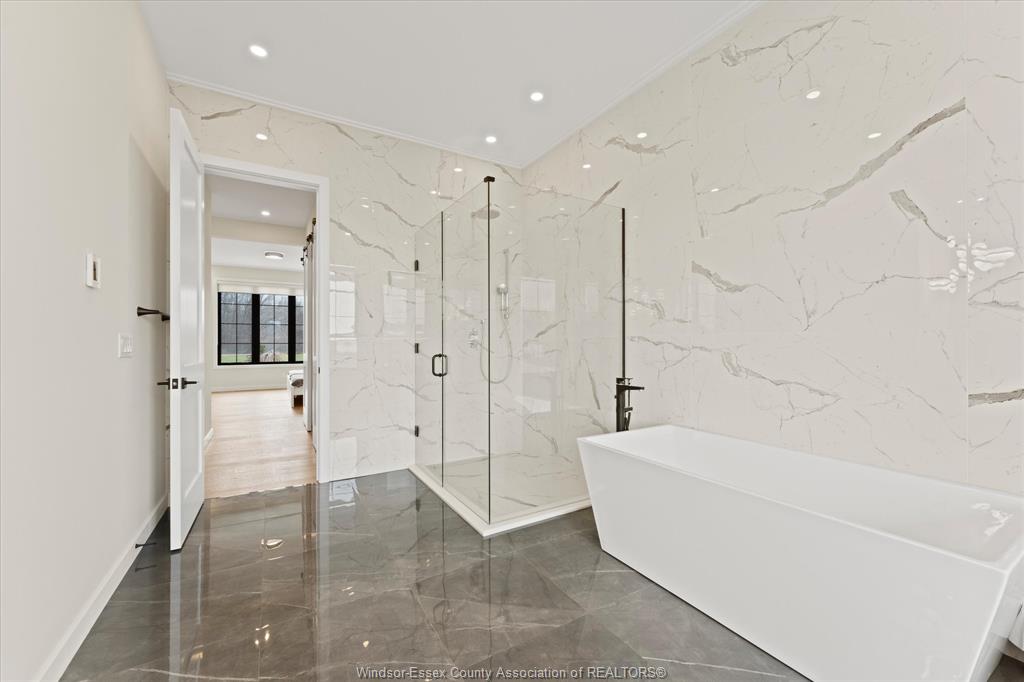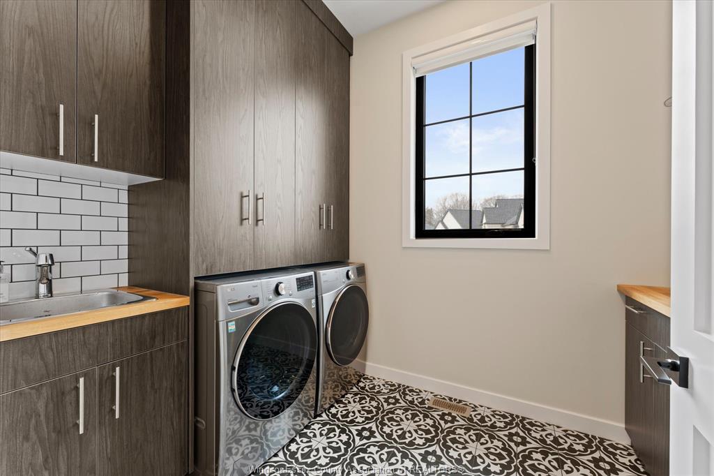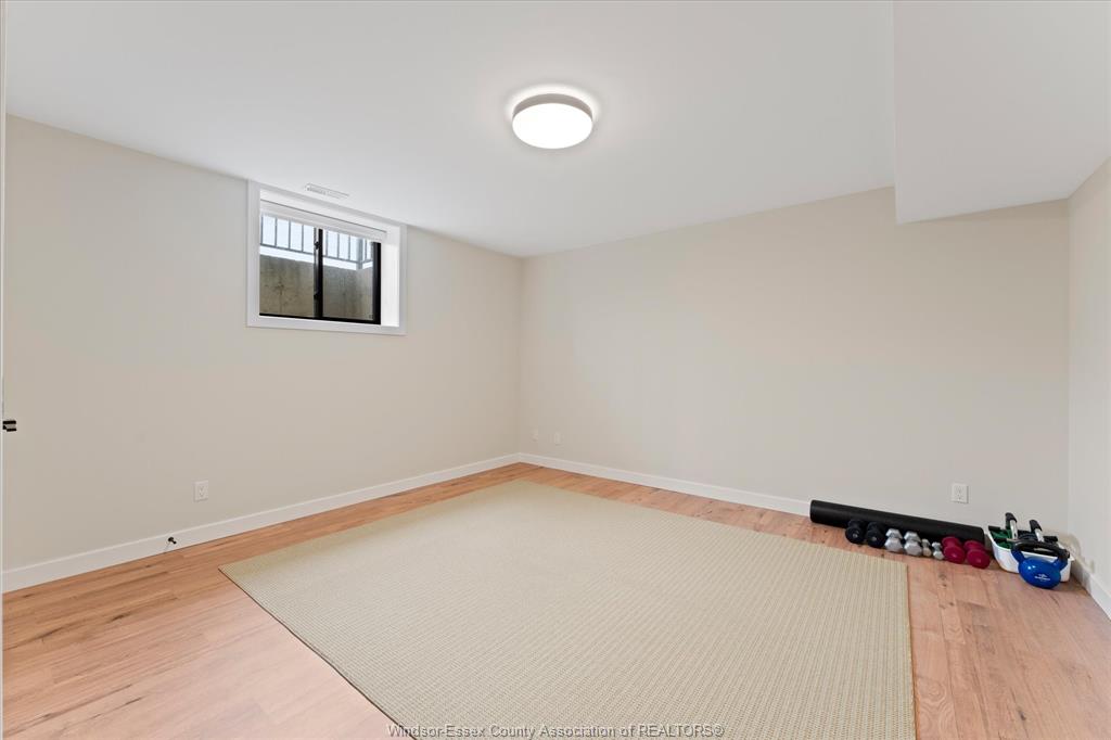 Stunning custom-built two-storey home (2022) set on an exceptional 80 x 350 ft lot backing onto a conservation area, offering rare privacy and picturesque natural views. Boasting over 3,200 sq ft plus a fully finished basement, this home is filled with natural light, highlighted by expansive windows and soaring 12 ft ceilings on the main floor. Thoughtfully designed with elegant, modern finishes throughout, the main level features a luxurious primary suite with a spa-inspired ensuite and heated floors, and a private office with full glass doors. The beautifully appointed chef’s kitchen showcases a large angled center island with quartz countertops and integrated sink, ceiling-height custom cabinetry, stylish backsplash, and high-end stainless steel appliances including a built-in oven and gas cooktop. The open-concept layout flows seamlessly into the dining and living areas, where you’ll find custom ceiling details, built-in shelving, and a gas fireplace, along with an extra-wide patio door leading to a covered porch overlooking the serene natural setting. Upstairs offers three spacious bedrooms, including a junior ensuite, along with skylights that enhance the bright and airy ambiance. The fully finished basement provides exceptional versatility with a summer kitchen, two additional bedrooms, a family room, and a grade-level entrance. Additional highlights include hardwood flooring throughout, a landscaped yard, two-zone heating and cooling, a double car garage, and an extra-wide driveway. Ideally located in one of kingsville’s most desirable areas, just steps from the kingsville golf club and minutes to downtown, the lake erie waterfront, parks, and local wineries. An exceptional opportunity to enjoy refined living in a setting that perfectly balances tranquility and convenience.