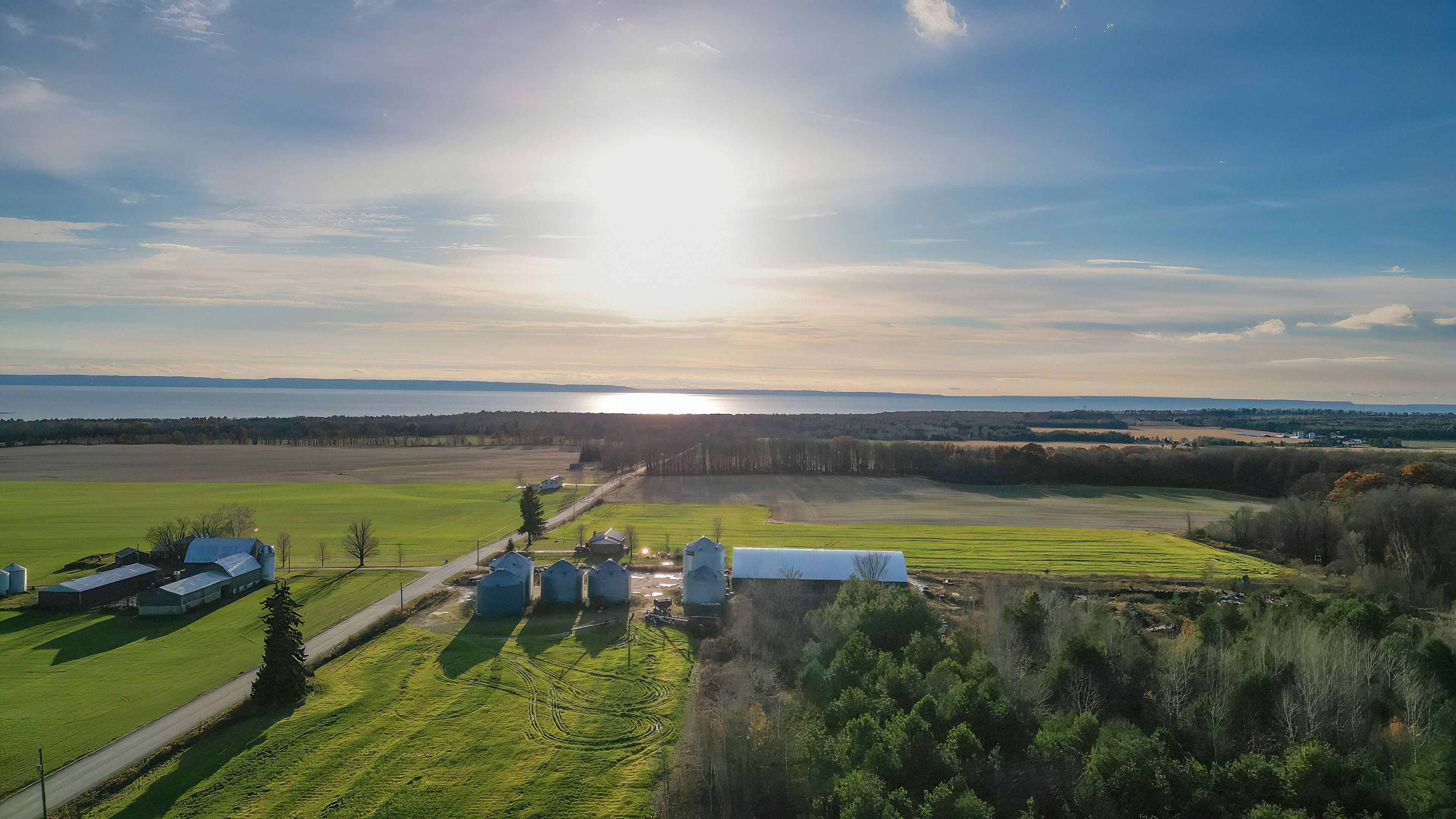 Custom home on 50. 6 acres +/- with stunning views of georgian bay, farm land, and blue mountain seen from the living room, primary bedroom, and covered porch. The home offers privacy from the road, the convenience of a wrap-around driveway, and finished garage/shop. 10 minute drive to all major shopping in the area and a three minute drive to the sandy beach at the bottom of con 14 w. Note: the treed acreage is part of the ontario managed forest tax incentive program. Also, one of the bedrooms was converted into a large walk-in closet for the primary, which can be changed back if the buyer wishes. The exterior of the home was just refinished (including new chinking) by an expert log home builder. Landscaping was also done this year and the view across the bay has been opened up. Come see this beauty!