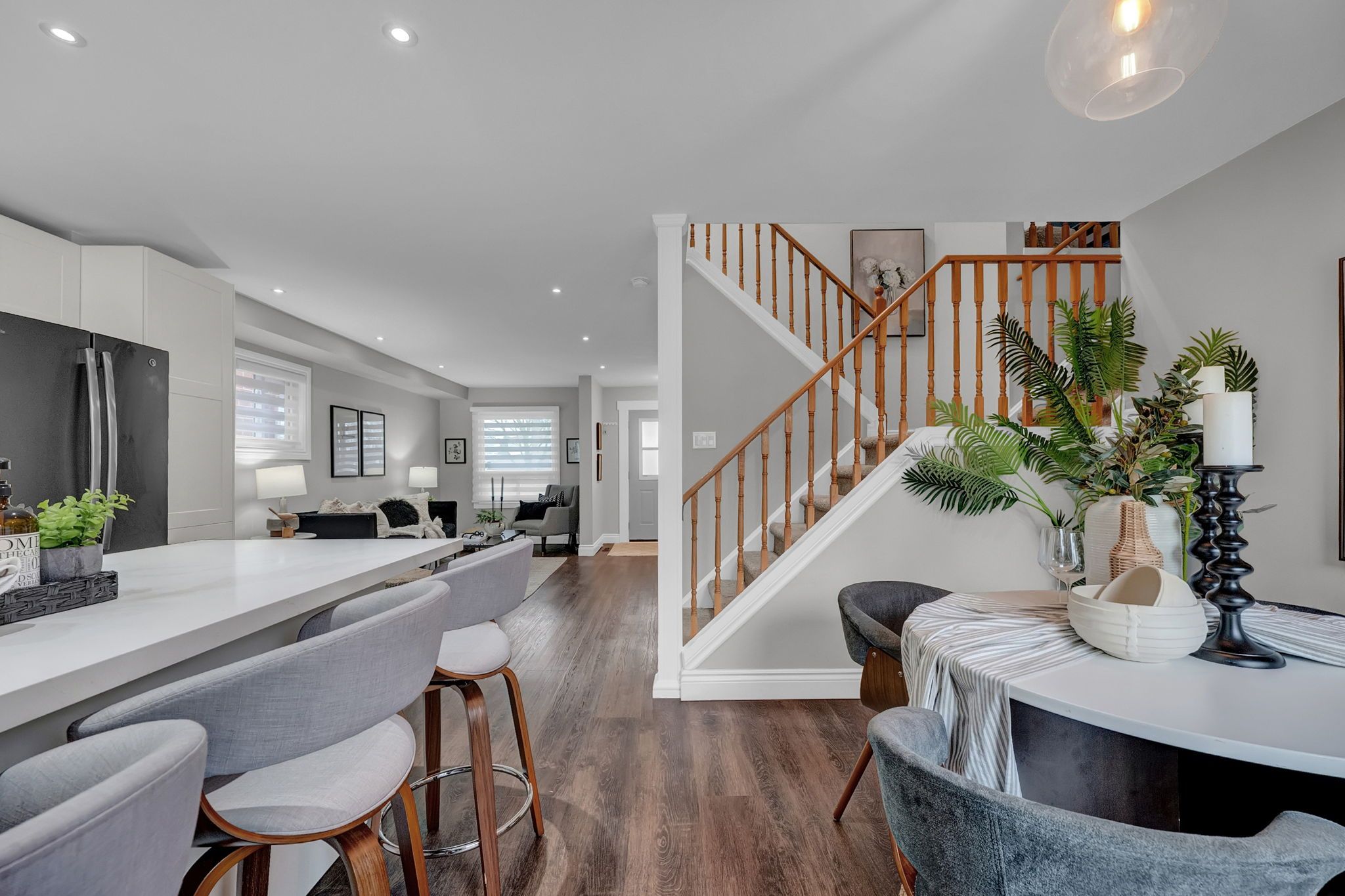 • Seamless main floor flow between living, dining, and kitchen areas.