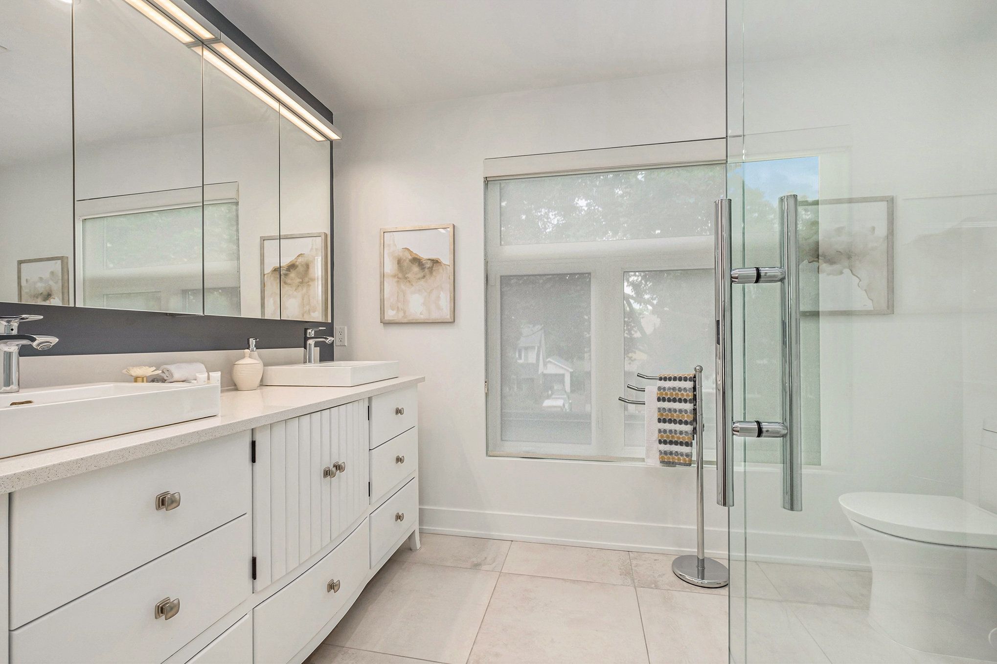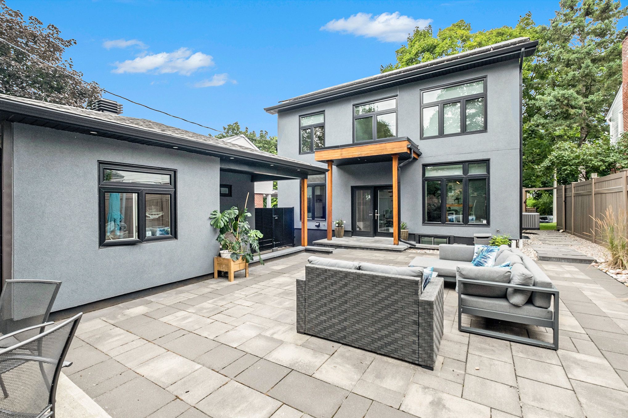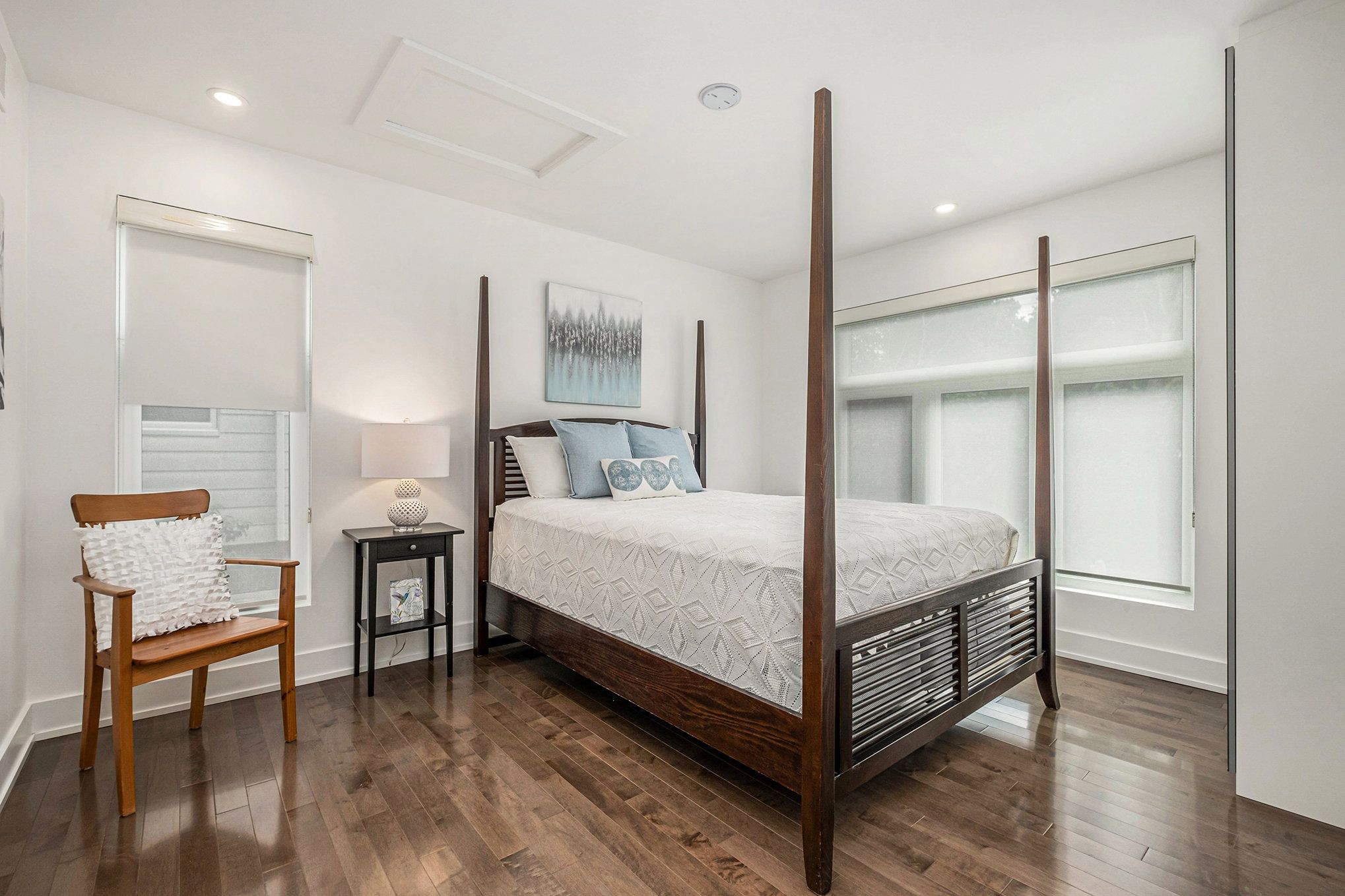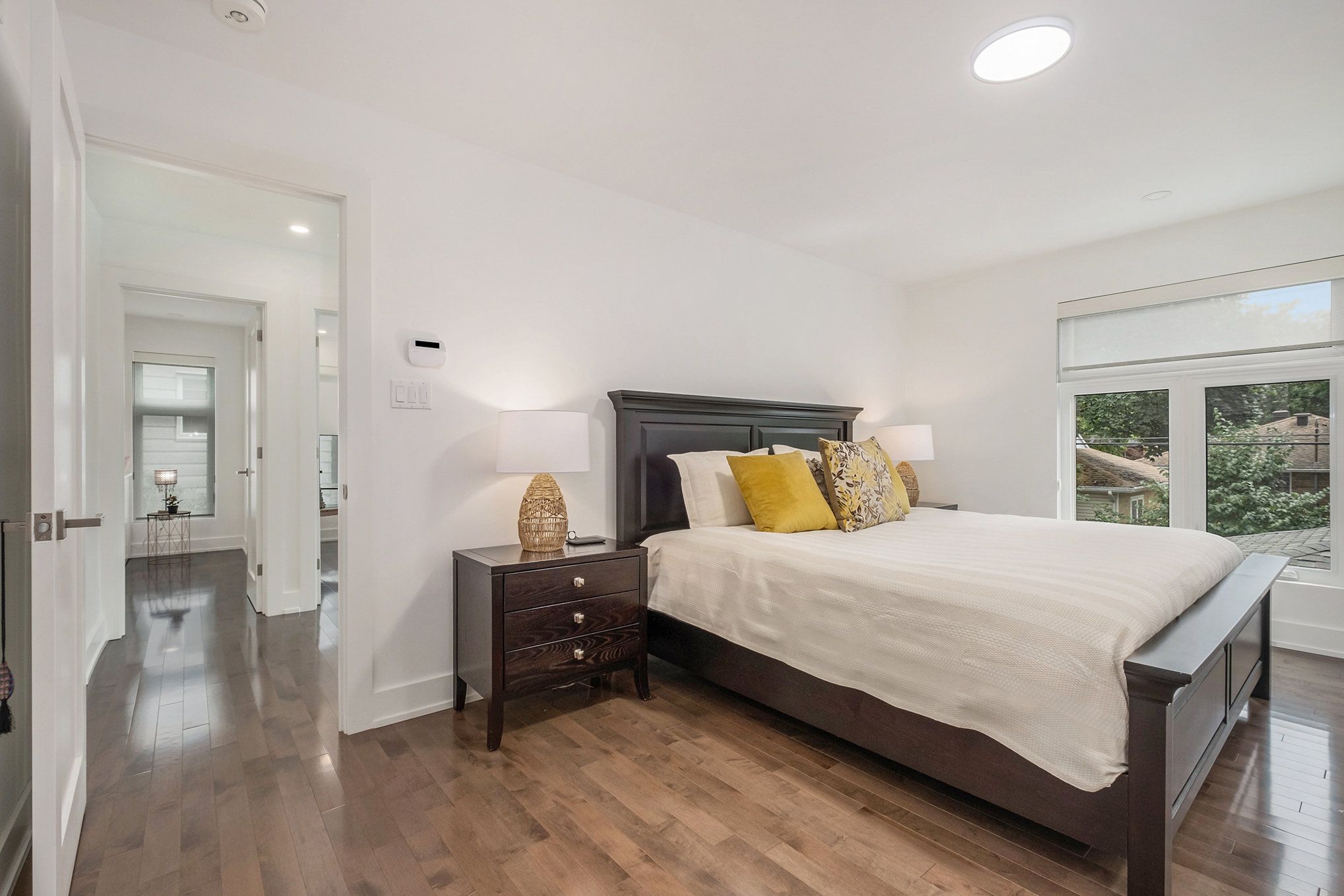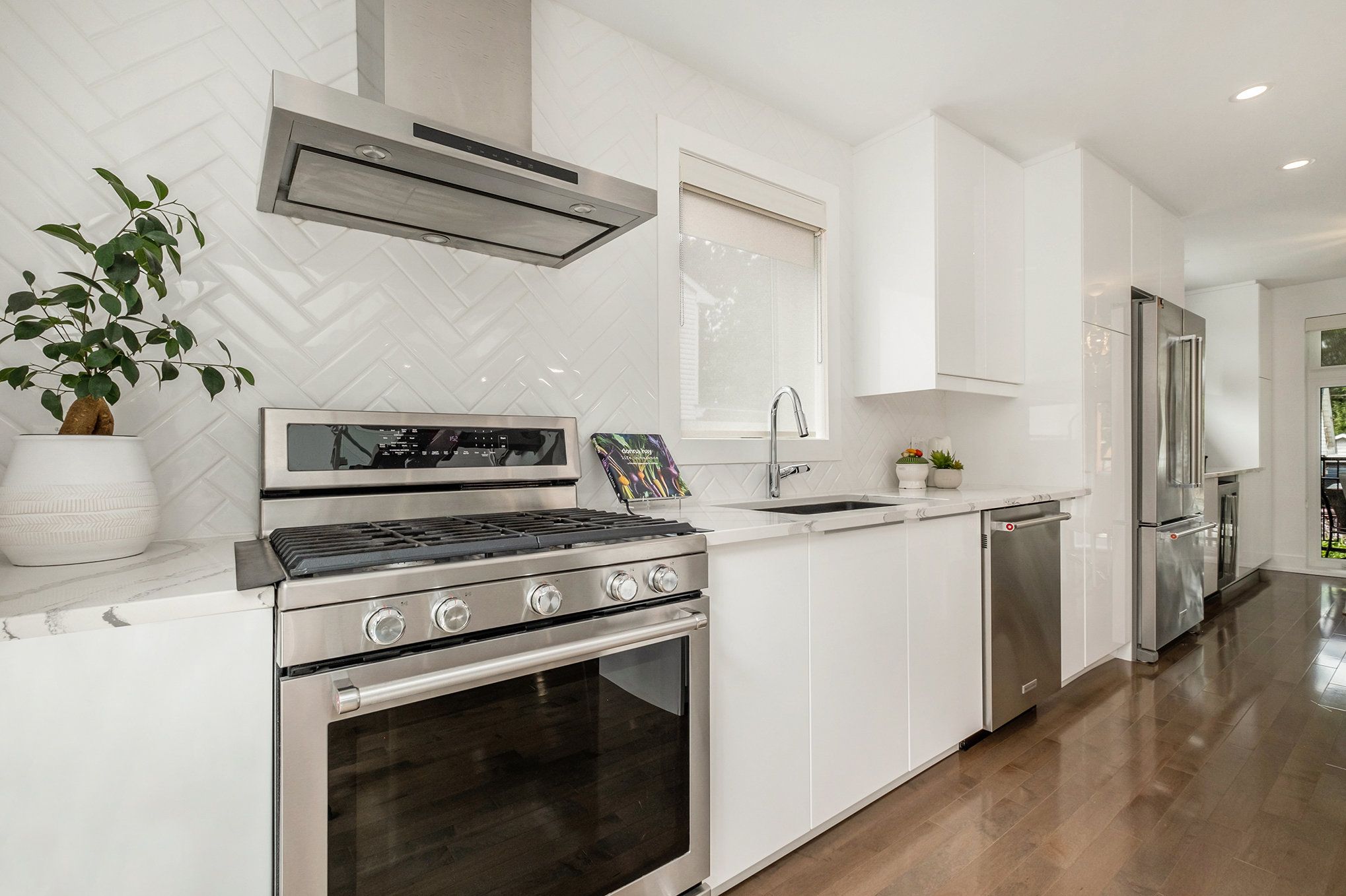 Professionally rebuilt in 2018. This luxury residence is a testament to superior craftsmanship. Trex front porch & a scarlet red front door welcome you. Main floor boasts high ceilings and large picture windows. The feature engineered glass staircase will impress your guests, w metal railings &thick glass landing & stairs. The living room, accentuated by a contemporary fireplace, offers a cozy retreat. The adjoining dining area seamlessly flows into the custom artisan kitchen, complete with cambria waterfall quartz counters and in-drawer lighting. The modern cabinetry w coffee station w bar flow to eat in kitchen, with floor to ceiling windows for optimal natural light. Potlights and flat ceilings, no stipple anywhere! Upstairs, discover gleaming hardwood throughout the 3 generous bedrooms and landing area. Primary ensuite w/radiant heated floors and main bath provide luxury with gorgeous modern finishes. The basement adds versatility with a den, fourth bedroom, and full laundry with 3 piece bath. All hardwood throughout main and upper levels is solid wood, there is no carpet anywhere. The entire basement has radiant heating throughout. Bonus cold storage room with racks included. Income is generated from the solar panels, contract is transferrable. Backyard is low maintenance, with modern pavers, covered gas bbque hookup. Pad for hot tub at back, with all hookups included (no hot tub). Professional landscaping w automatic exterior lighting. Garaga california glass garage doors for extra wow factor! The industrial shelving in the oversized garage is included. Full list of upgrades attached to highlight features of home. Furnace, humidifier, hrv, a/c, 2019, hot water tank 2021, electrical panel 200 amp, tesla ev charger in garage 200 amp , nest control included. Walls double roxul fire & soundproofed. Framing upgraded pressure-treated lumber. Walking distance to shops on bank & the ottawa hospital. Net 0 home electricity.