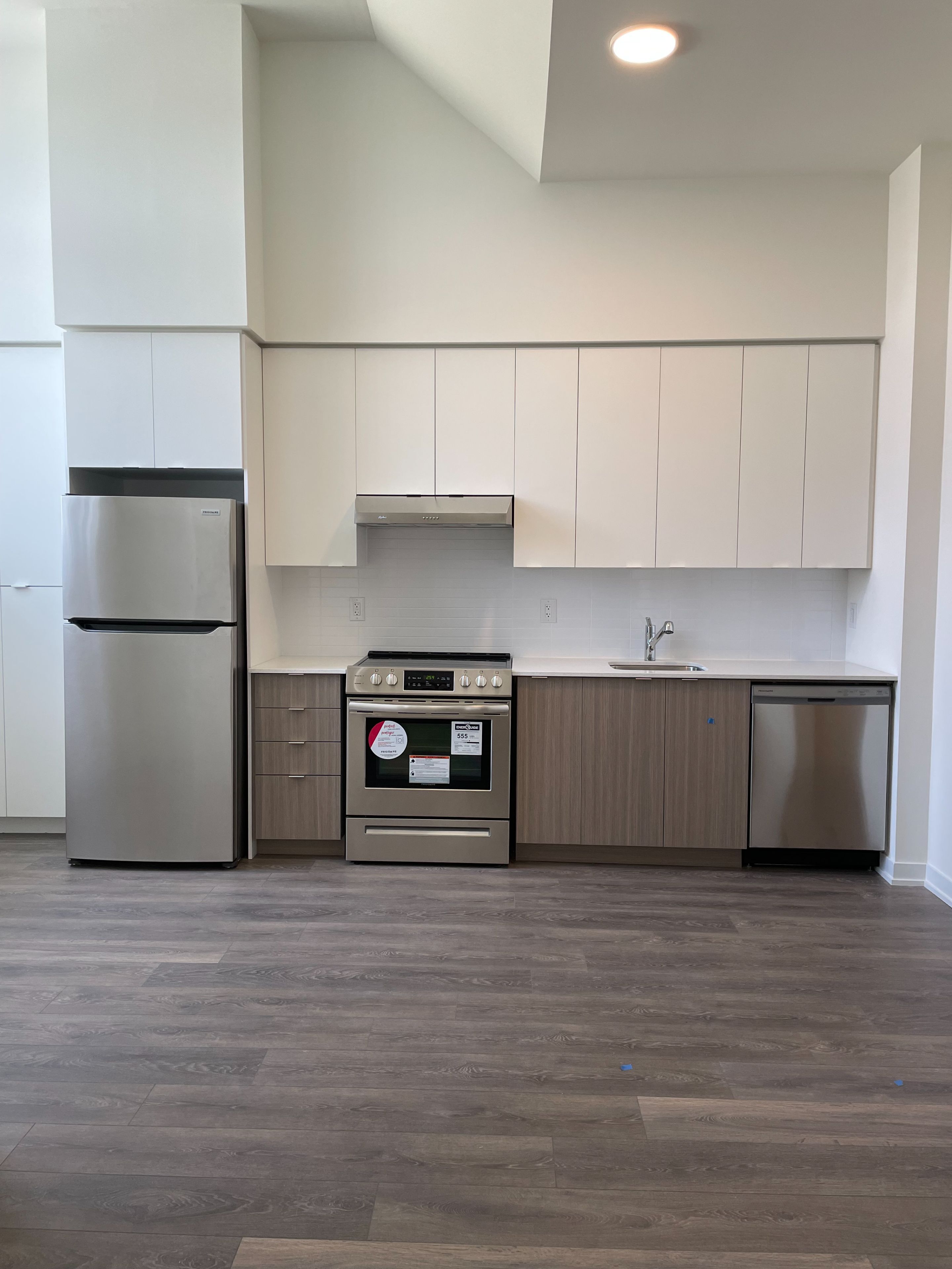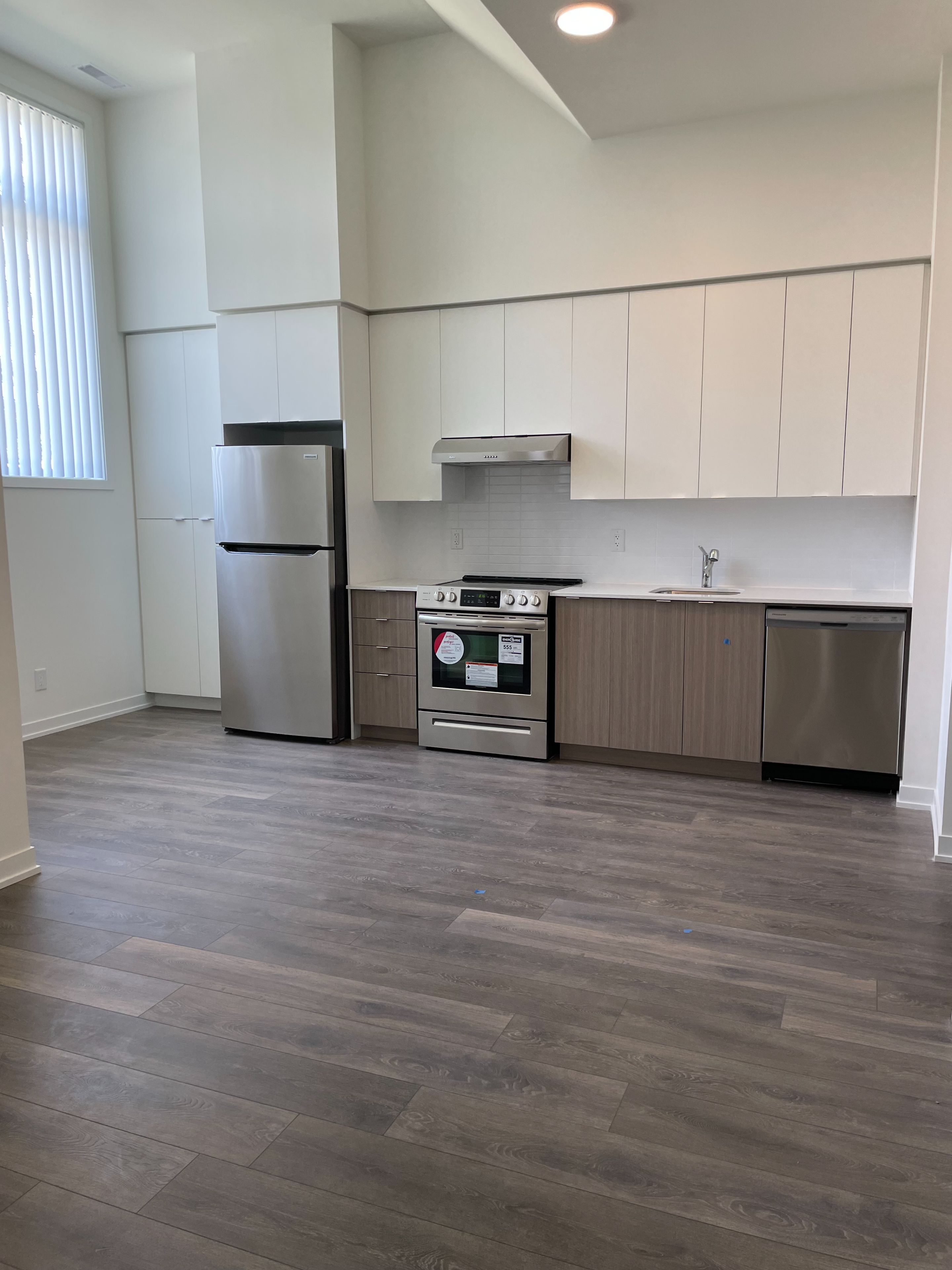 • Spacious open concept with high 12' ceilings for a modern feel.