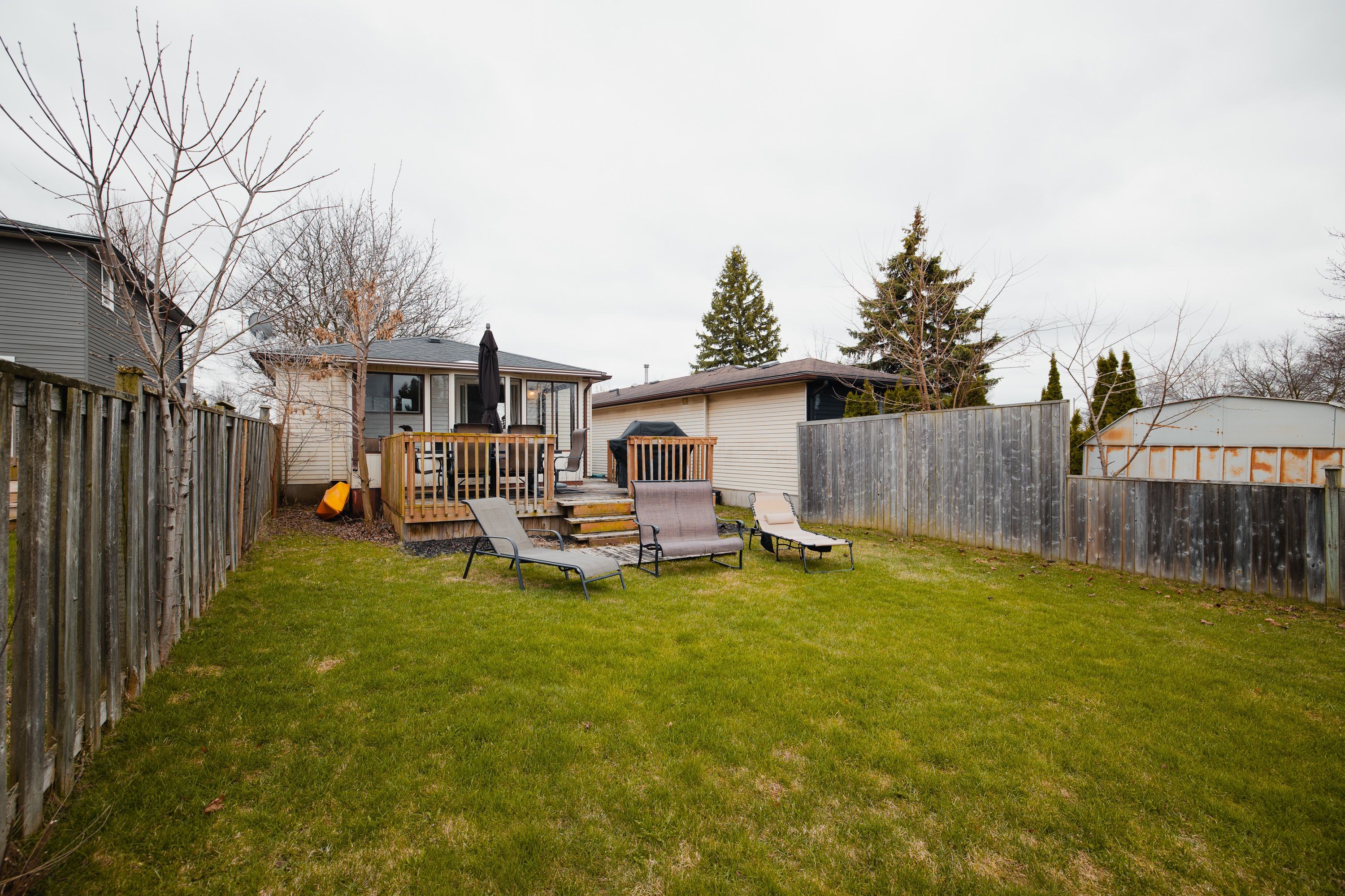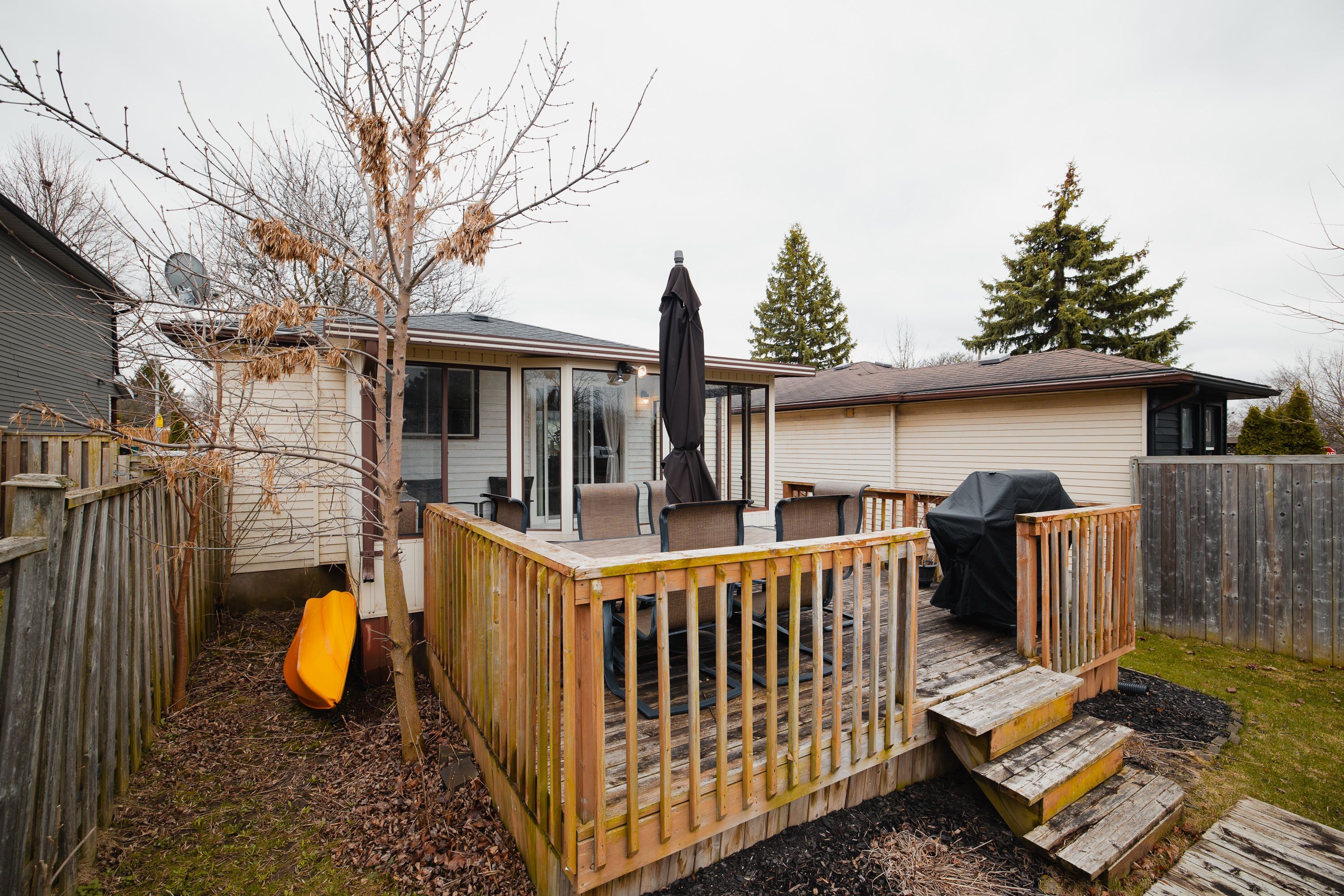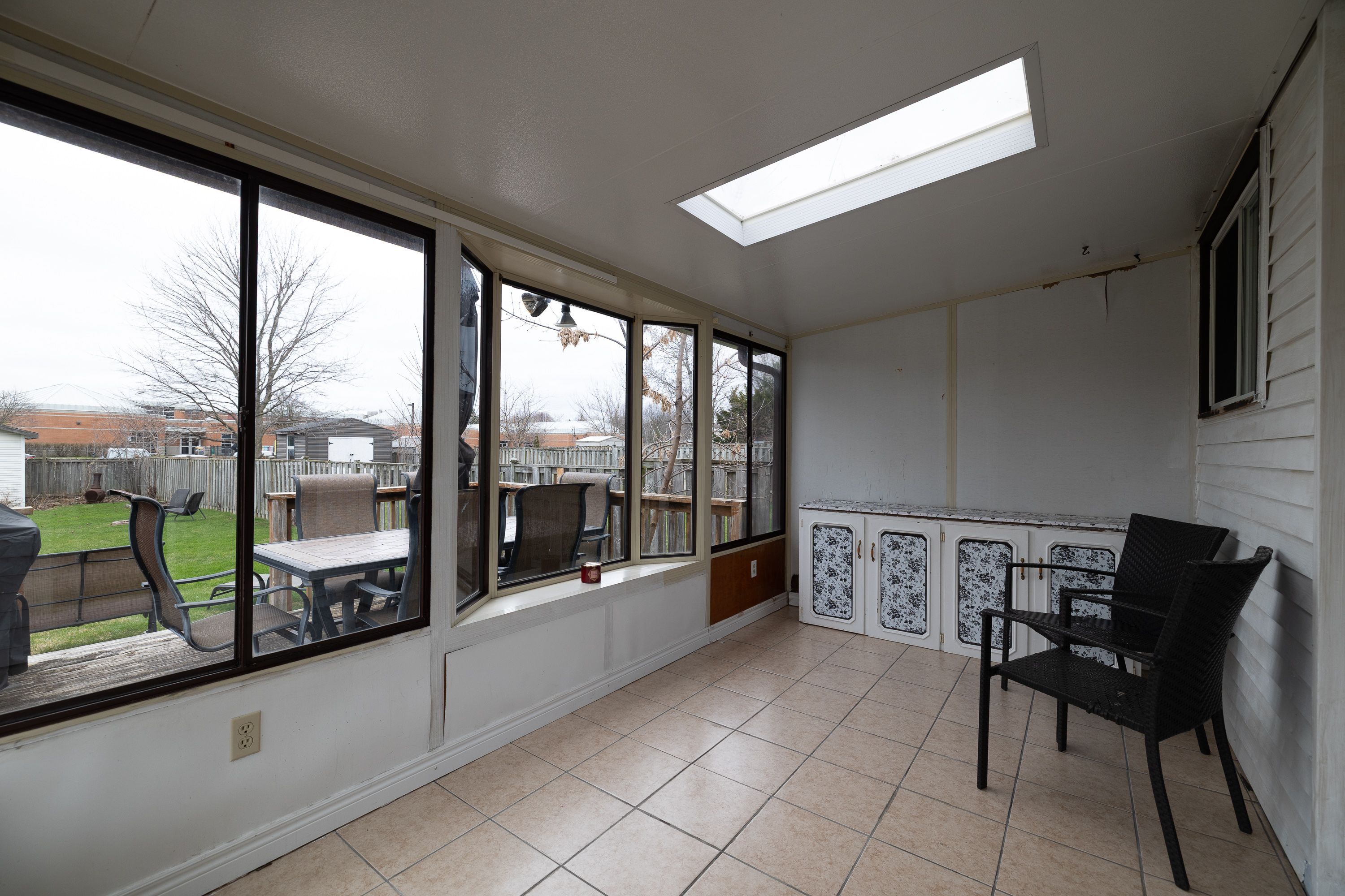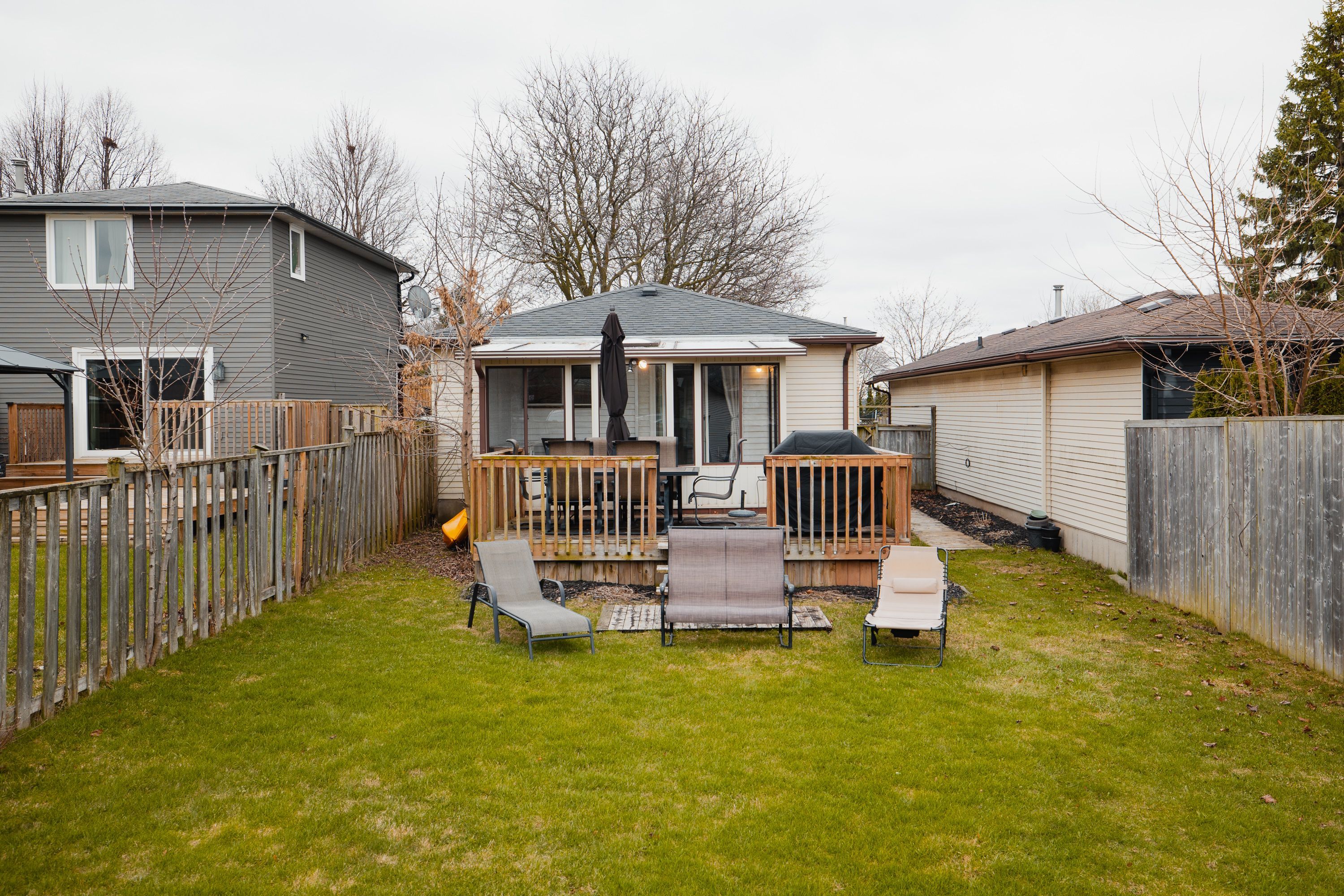 • Three-season sunroom, large deck, and deep backyard for outdoor enjoyment.