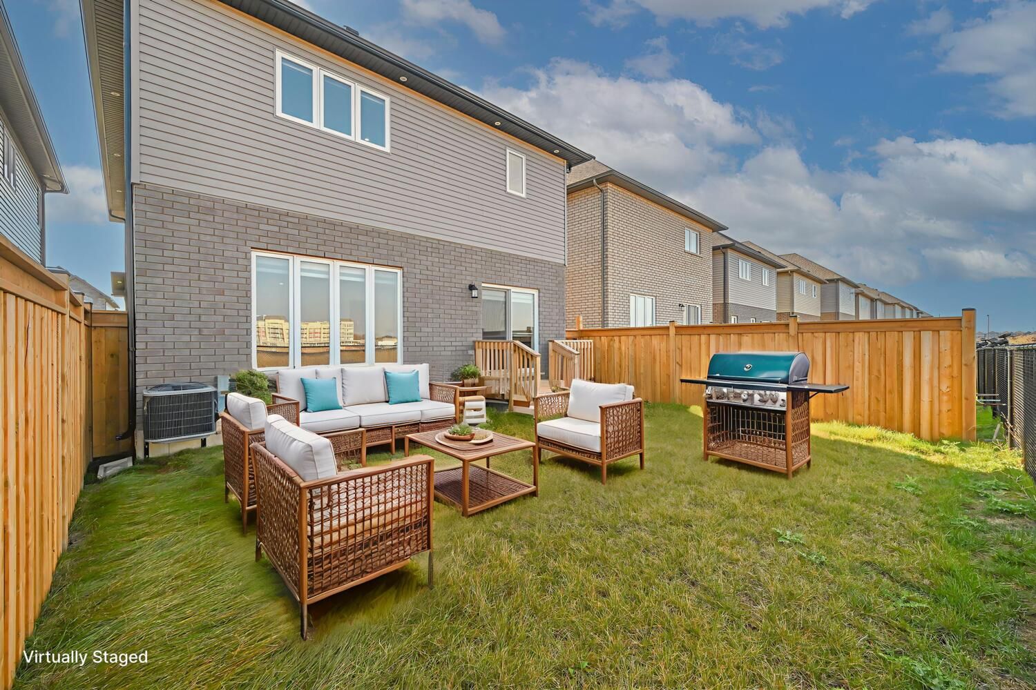 Welcome to this beautiful 4-bedroom, 2. 5 bath detached home built by summit park homes, a trusted builder known for exceptional quality and craftsmanship. Located in the highly desirable hamilton area, this home offers modern comfort with the added bonus of no rear neighbors and scenic countryside views right from your backyard. Step inside to an elegant entrance featuring an open layout and high-impact hardwood stairs, giving the home a luxurious, high-end feel. The open-concept extended kitchen is fully upgraded with premium finishes, a separate pantry, and a movable island, seamlessly flowing into the bright and spacious living and dining areas-ideal for family gatherings and entertaining. A convenient main-floor mudroom adds extra functionality. Upstairs you'll find a large primary bedroom with a private ensuite and walk-in closet, along with three additional well-sized bedrooms. A cozy loft area offers the perfect space for a workstation or study nook. The basement layout is highly functional, offering excellent potential for future income generation or multi-generational living. Outside, enjoy a double-car garage with an extended driveway, providing ample parking. Located in a family-friendly community close to schools, parks, shopping, and major highways-