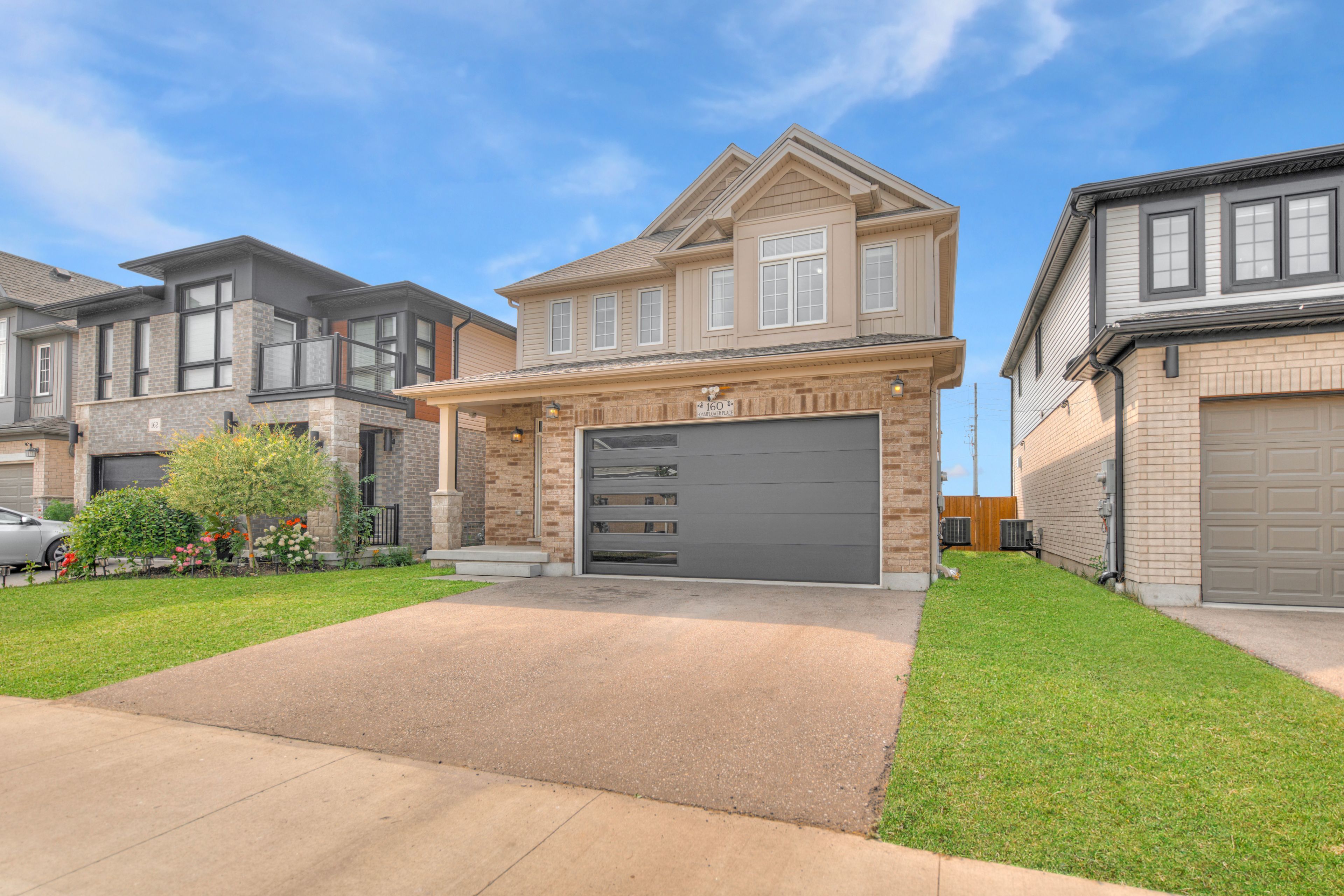 Welcome to 160 foamflower place! This 4-bedroom family home is set in one of waterloos most sought-after communities. With no rear neighbours, a functional open-concept layout, double car garage, and fully fenced backyard this one checks all the boxes. Check out our top 6 reasons why you'll want to make this house your home! #6: location, location, location set on a quiet street in one of waterloos most desirable communities, you're just minutes from top-rated schools, scenic nature & walking trails, costco, and the boardwalk shopping centre. Whether you're commuting, dining out, or exploring the outdoors, this location makes life easy. #5: sunlit main floor the bright, carpet-free main floor features 9-foot ceilings, updated lighting, and hardwood and tile flooring throughout. You'll find a generous living room with large windows and a powder room for guests. A fantastic bonus is the main floor laundry combo mudroom with garage access, saving you time and effort. #4: modern kitchen the open-concept kitchen includes stainless steel appliances, quartz countertops, sleek cabinetry, a walk-in pantry, and a large island with breakfast bar seating. Whether you're cooking or entertaining, there's plenty of space and flow. You'll also find an open dining space with walkout, perfect for family dinners. #3: spacious backyard the fully fenced backyard offers room for kids or pets to play, and with no rear neighbours, you'll enjoy fresh air and sunshine in peace. #2: bedrooms & bathrooms upstairs, you'll find 4 spacious bedrooms and two full bathrooms. The primary suite includes a walk-in closet and a 5-piece ensuite with double sinks, soaker tub, and glass shower. The remaining bedrooms share a 4-piece bath with shower/tub combo. #1: basement potential the unfinished basement provides a blank canvas, offering ample space for a future rec room, gym, guest suite, or additional storage.