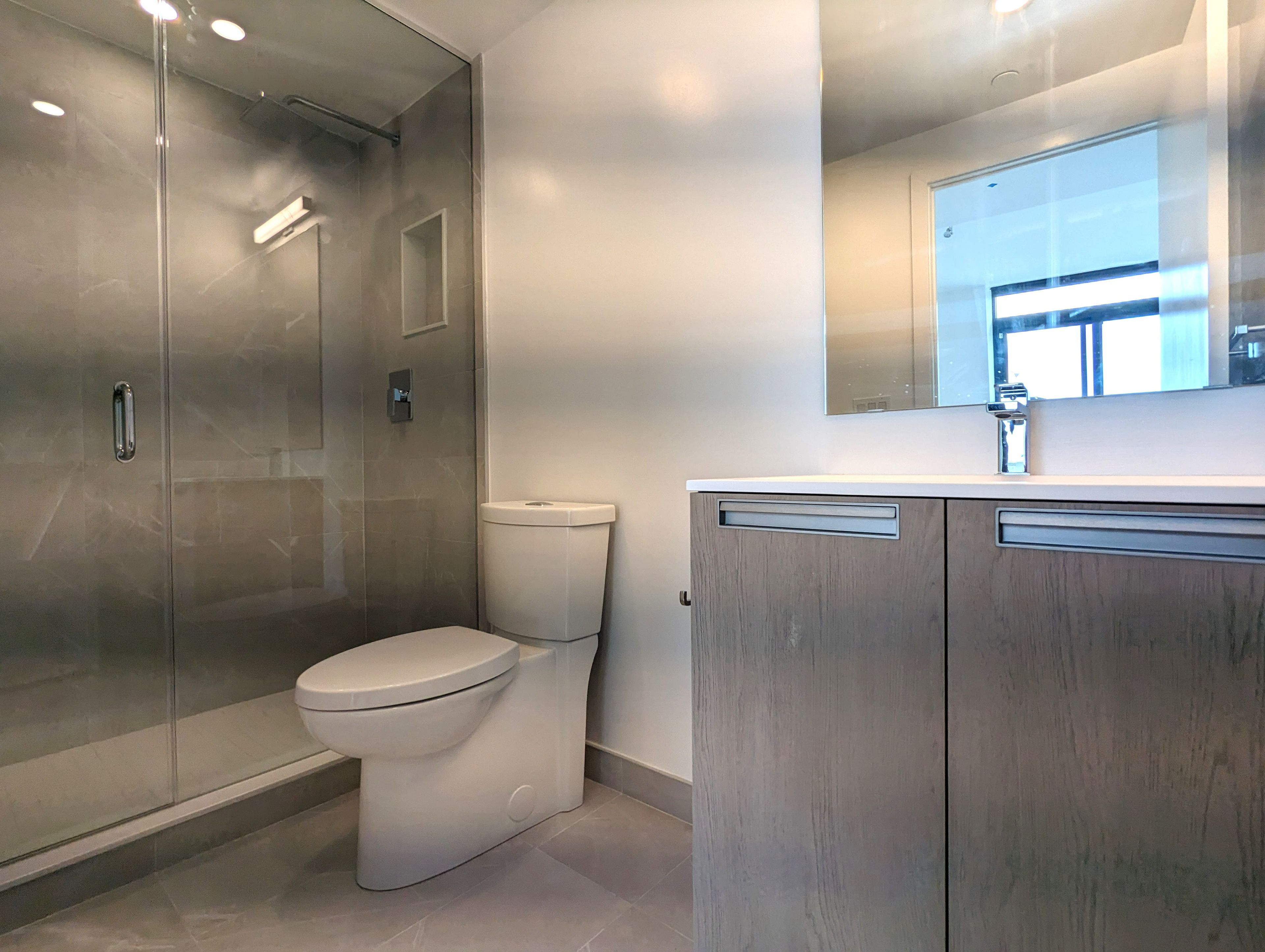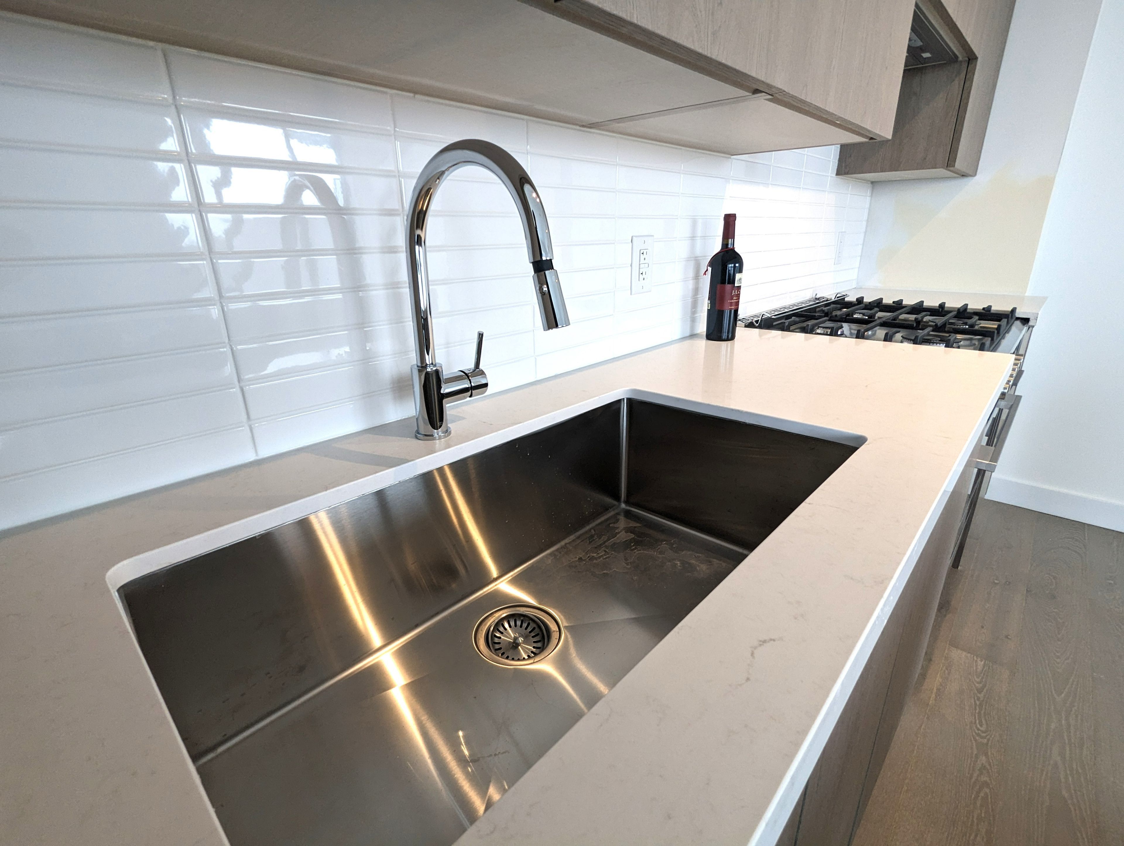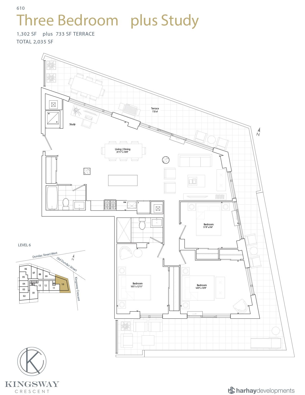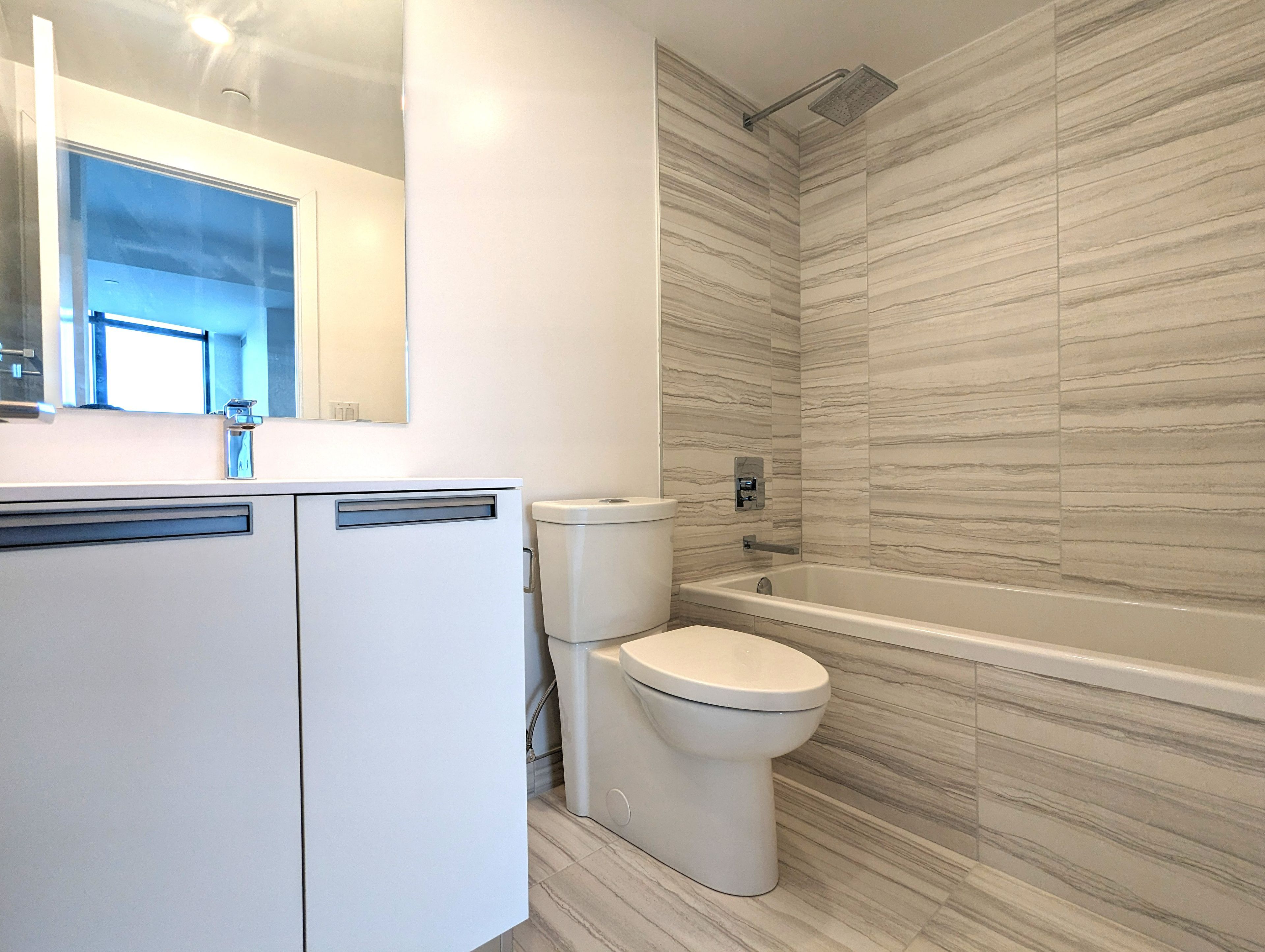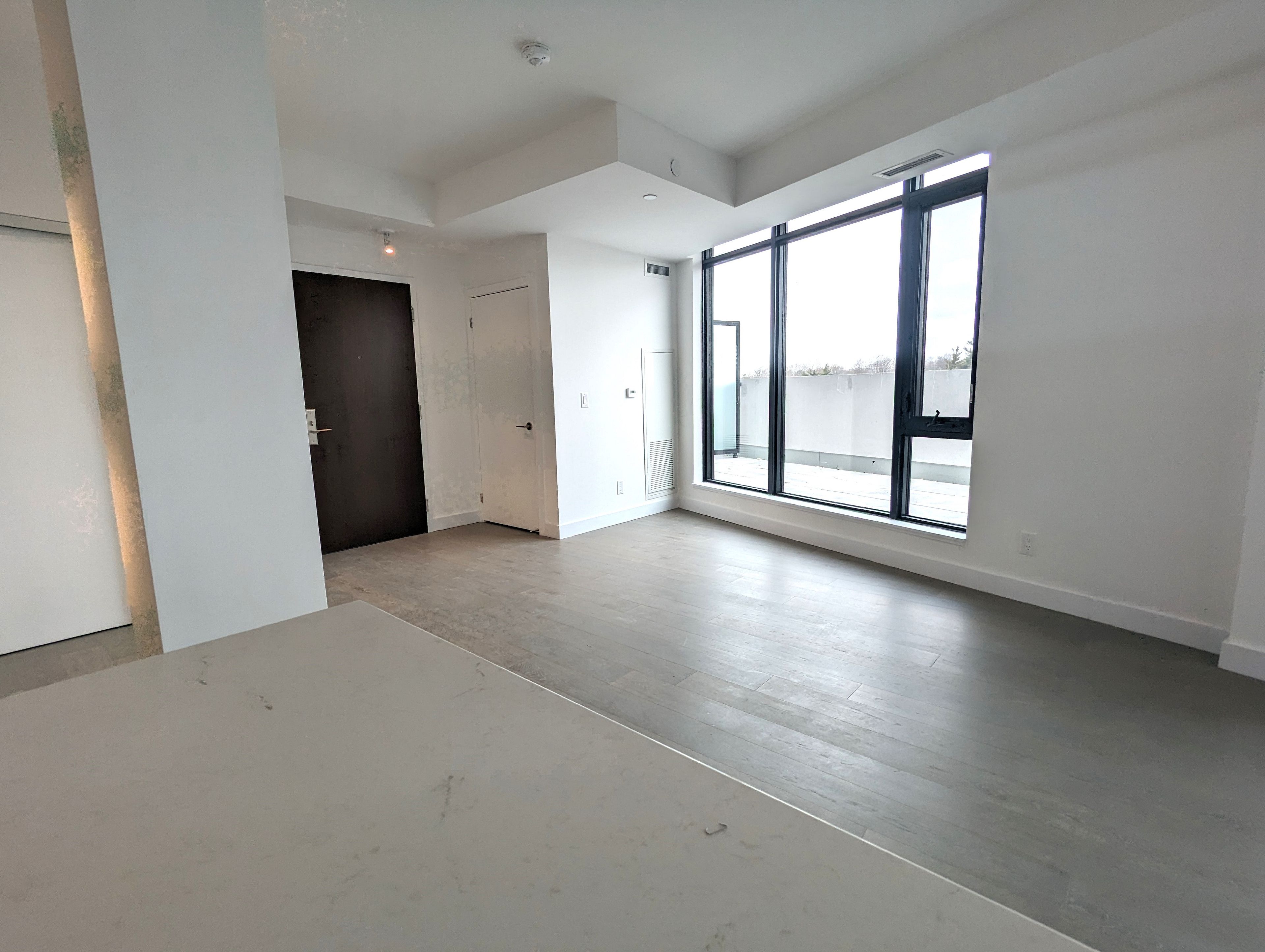 This condo is 1,302 square feet and faces north, east and south, benefiting from natural light at all times of the day. The kitchen features beautiful scavolini cabinetry with fisher & paykel appliances (double door fridge, full sized gas oven, and wide sink) an island with lots of storage and natural stone counter tops complete the kitchen. With plenty of room for entertaining, the condo benefits from 9 foot smooth finished ceilings and hardwood flooring throughout. Outside you will love the 733 square foot terrace equipped with a gas bbq connection and a water hose bib.