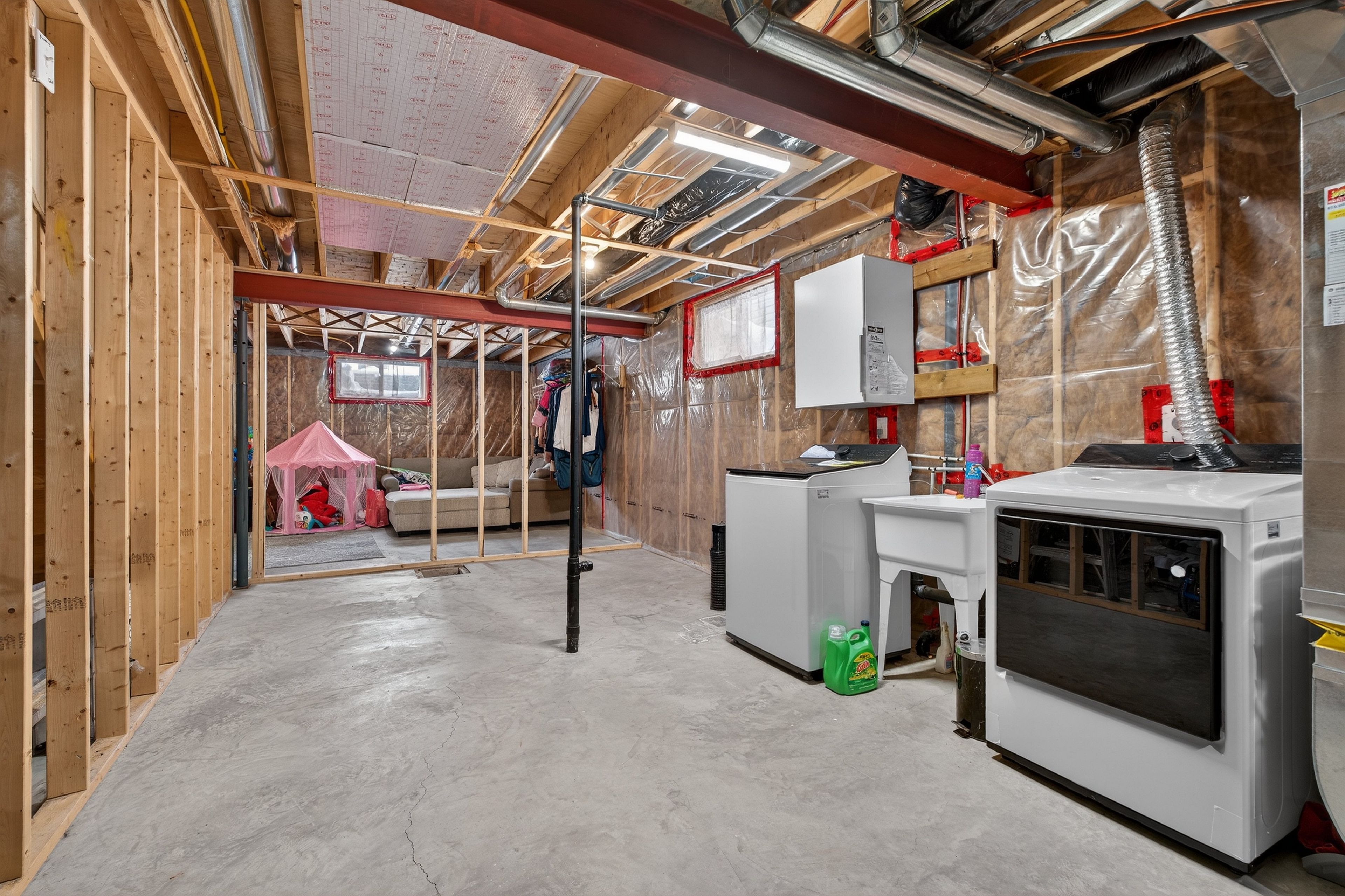• Unfinished basement with potential for more bedrooms and a rec room.