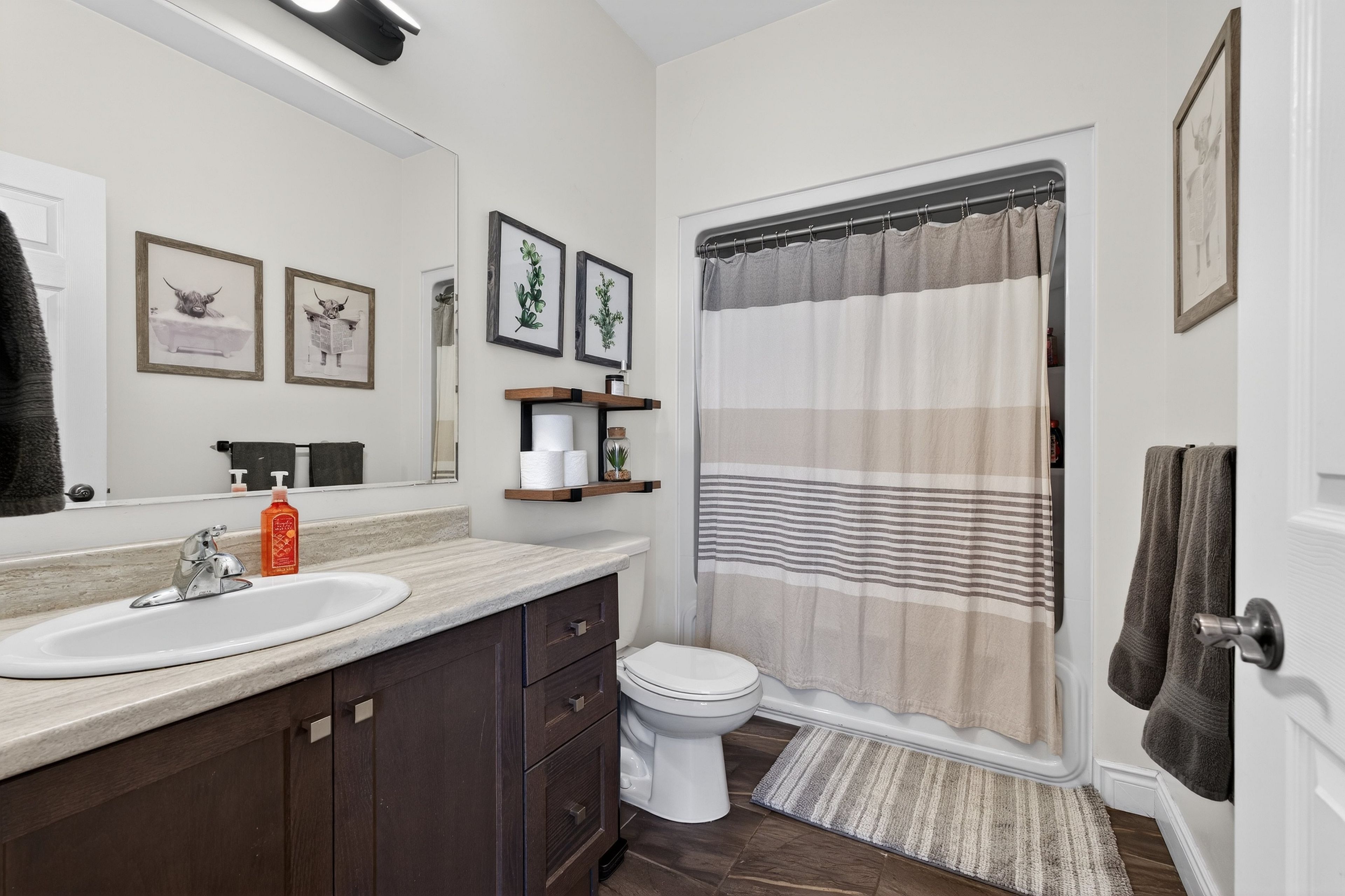 • Three spacious bedrooms and two full bathrooms, including an ensuite.