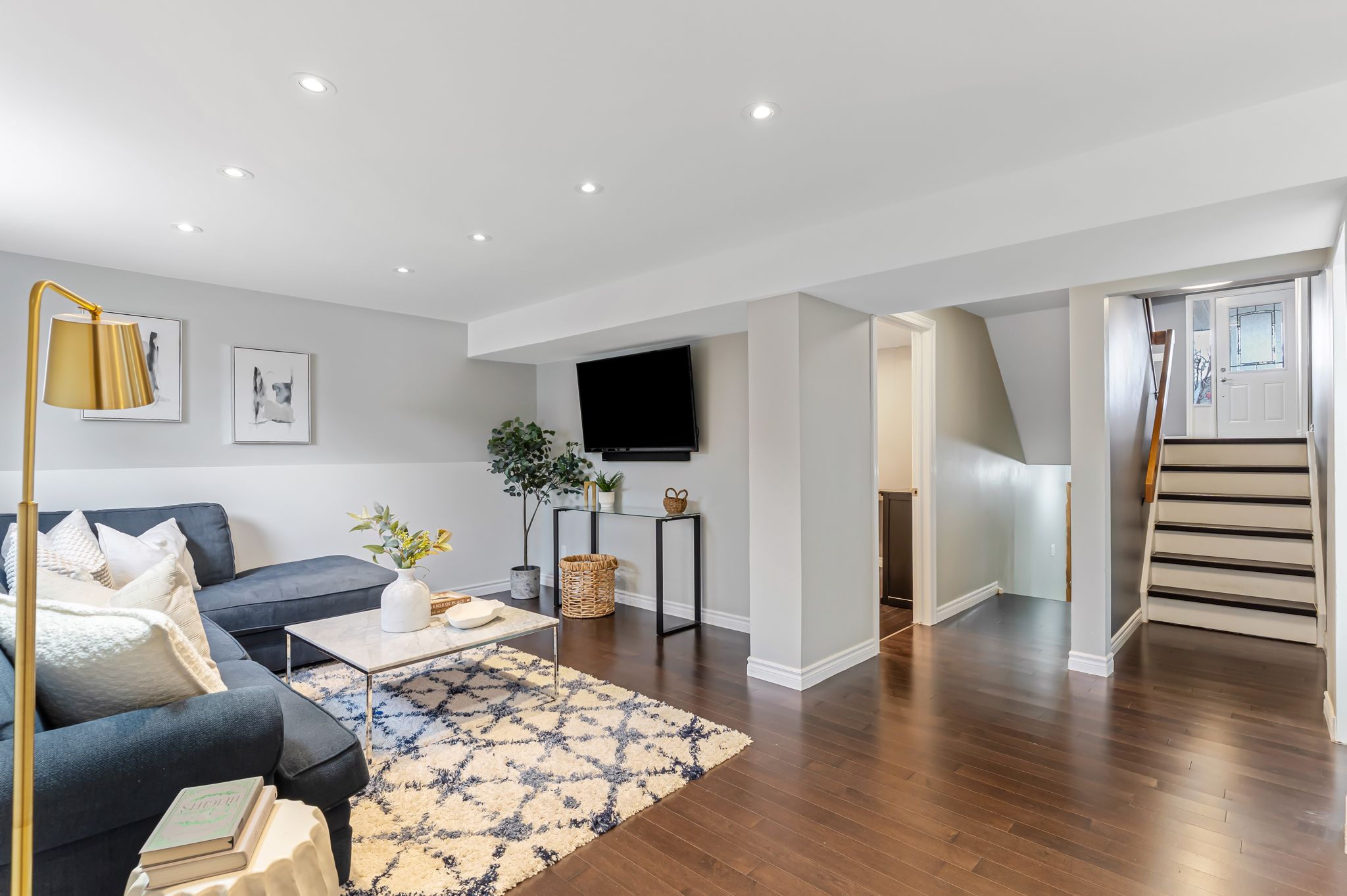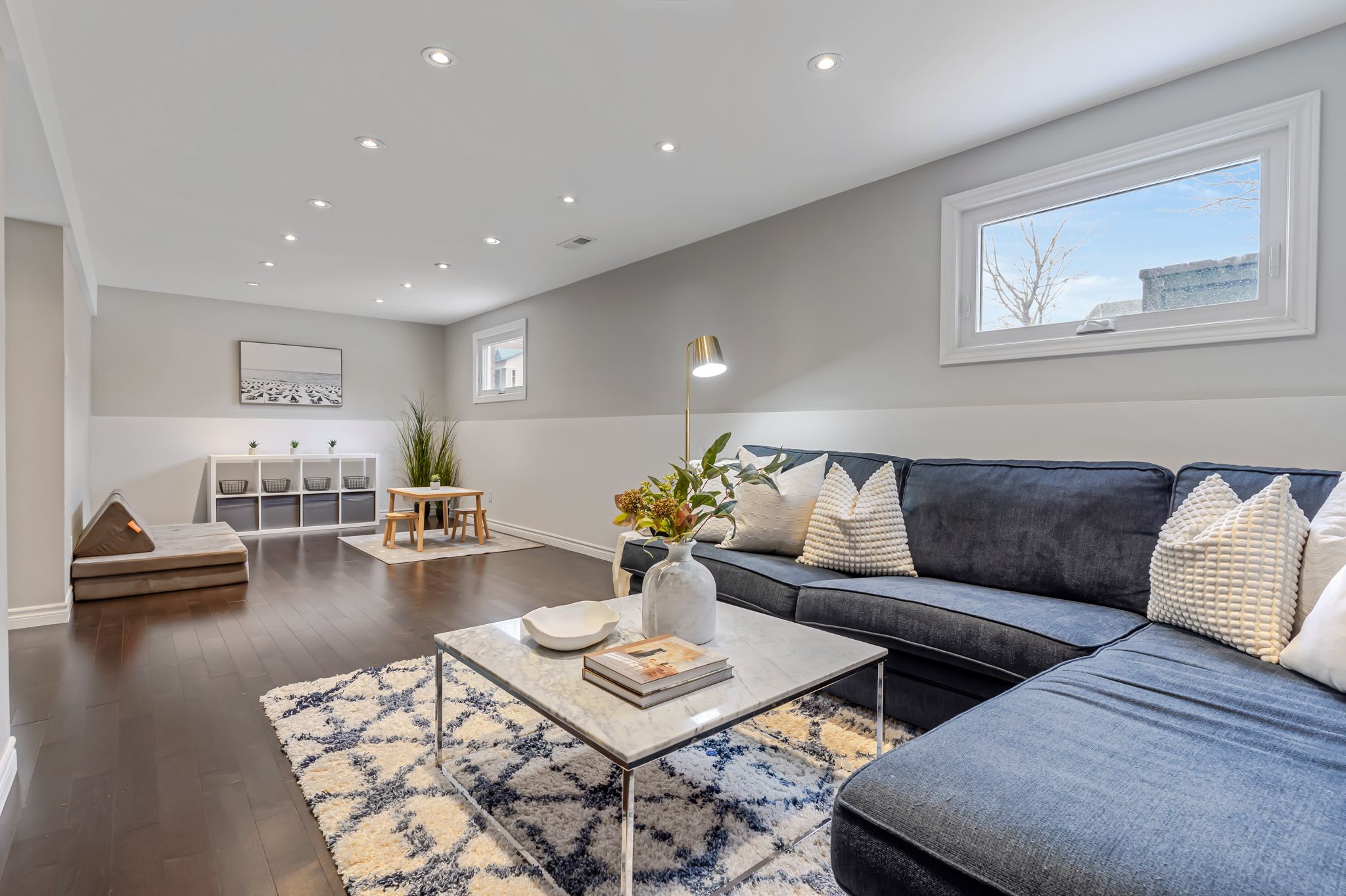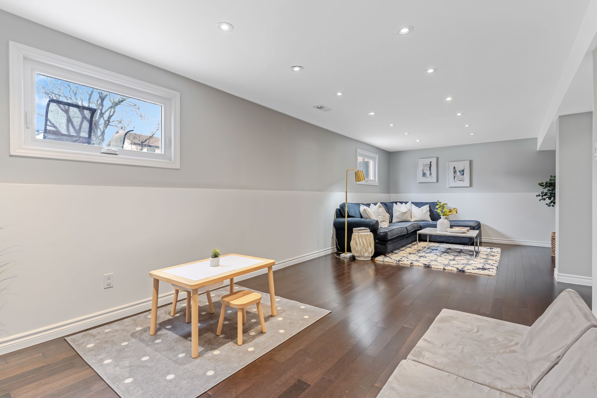 • Versatile lower level with recreation room, den, and second bathroom.