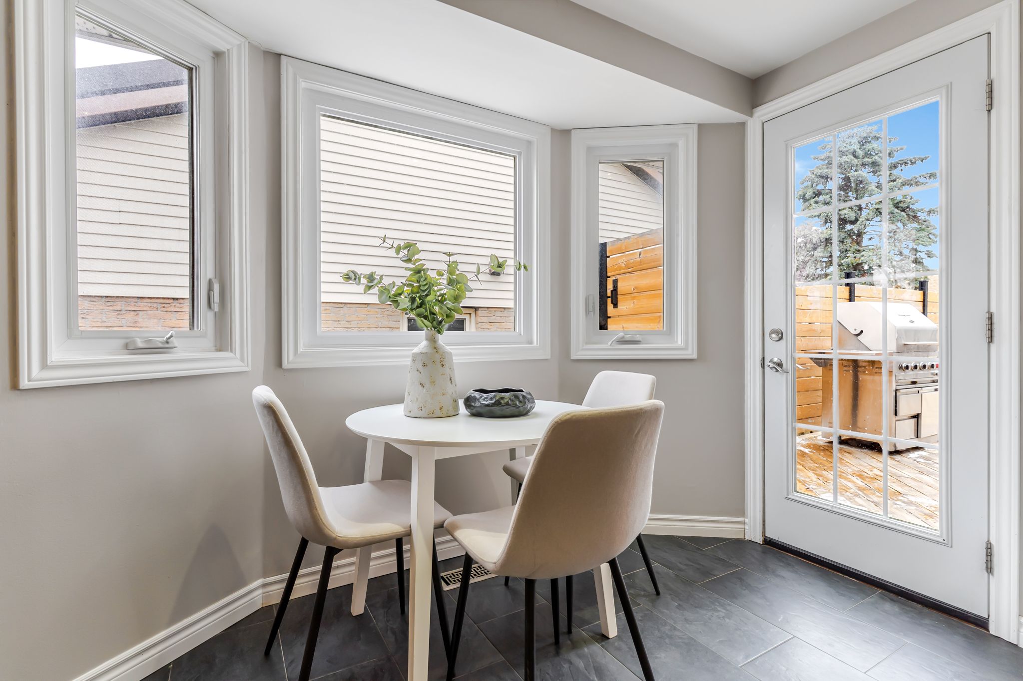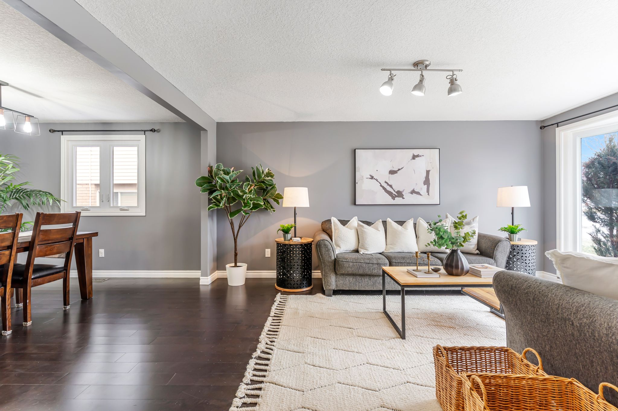 • Bright living room and dining area with direct backyard access.