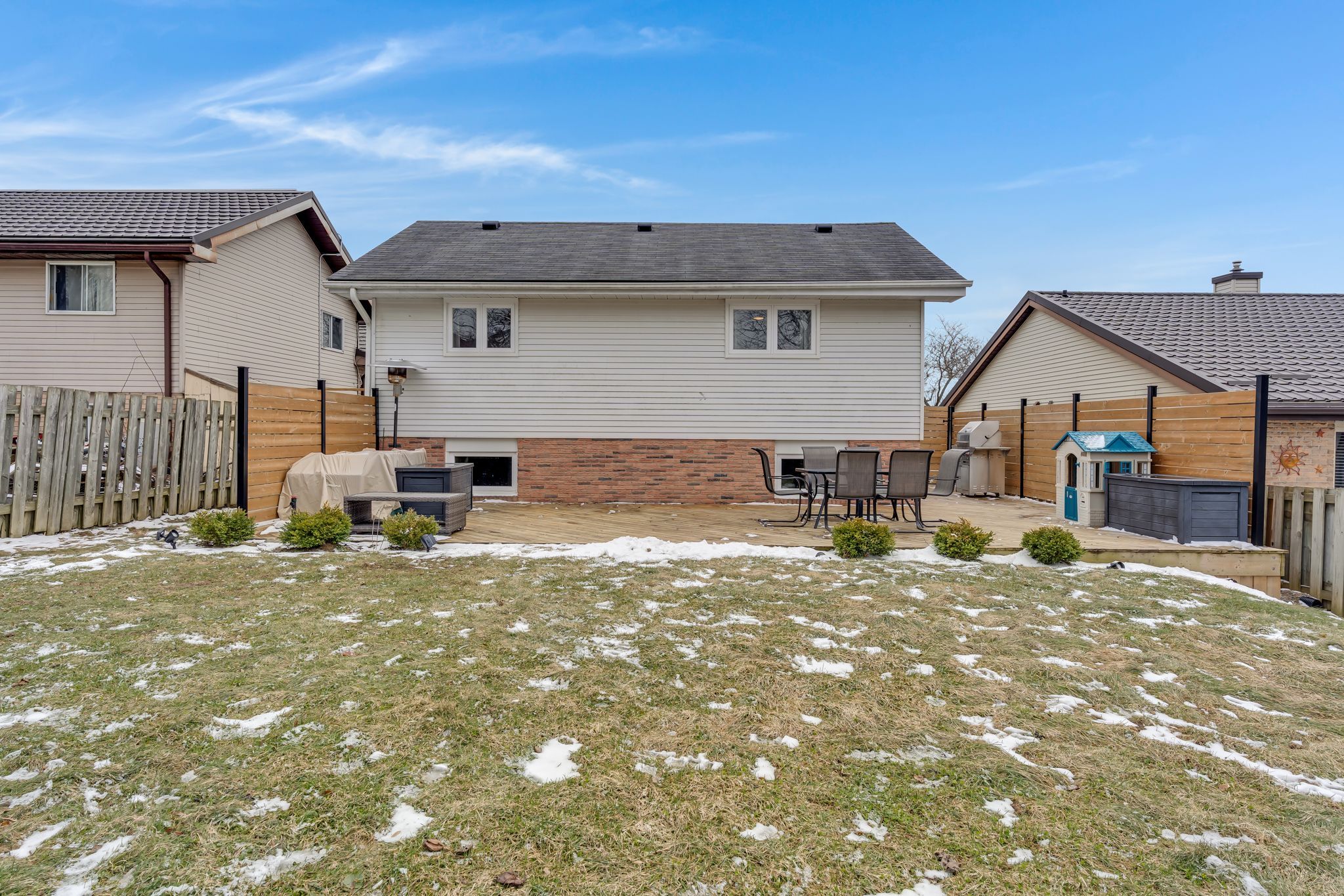 Welcome to 160 oneida place in kitchener's chicopee neighbourhood, just steps from the ski hill, parks, and scenic walking trails. Tucked away on a quiet, family-friendly street, this location offers easy access to highway 8, the 401, and nearby shopping at fairview park mall. This 4-level backsplit offers a spacious and functional layout designed for everyday living. The main floor features a bright living room, a dedicated dining area, and a kitchen with direct access to the backyard and newer deck, creating a natural extension of the living space for both relaxing and entertaining. Upstairs, you'll find three generously sized bedrooms along with a fully renovated bathroom completed in 2022, finished in a clean and modern style. The lower level adds even more living space with a bright recreation room featuring large windows, along with a second full 3-piece bathroom and a versatile den or office space, ideal for working from home or creating a quiet retreat. An additional level provides excellent storage, plus room for a workshop, hobby space, or future customization. Recent updates include hardwood flooring and modern finishes throughout, as well as updated windows in 2016, with the exception of the front bay window. Set on a well-sized lot and complete with a single car garage, this home offers a great balance of space, comfort, and convenience. Located near excellent schools, including a new catholic elementary school and the future notre dame high school opening in 2026, this is a fantastic opportunity in a well-established neighbourhood.