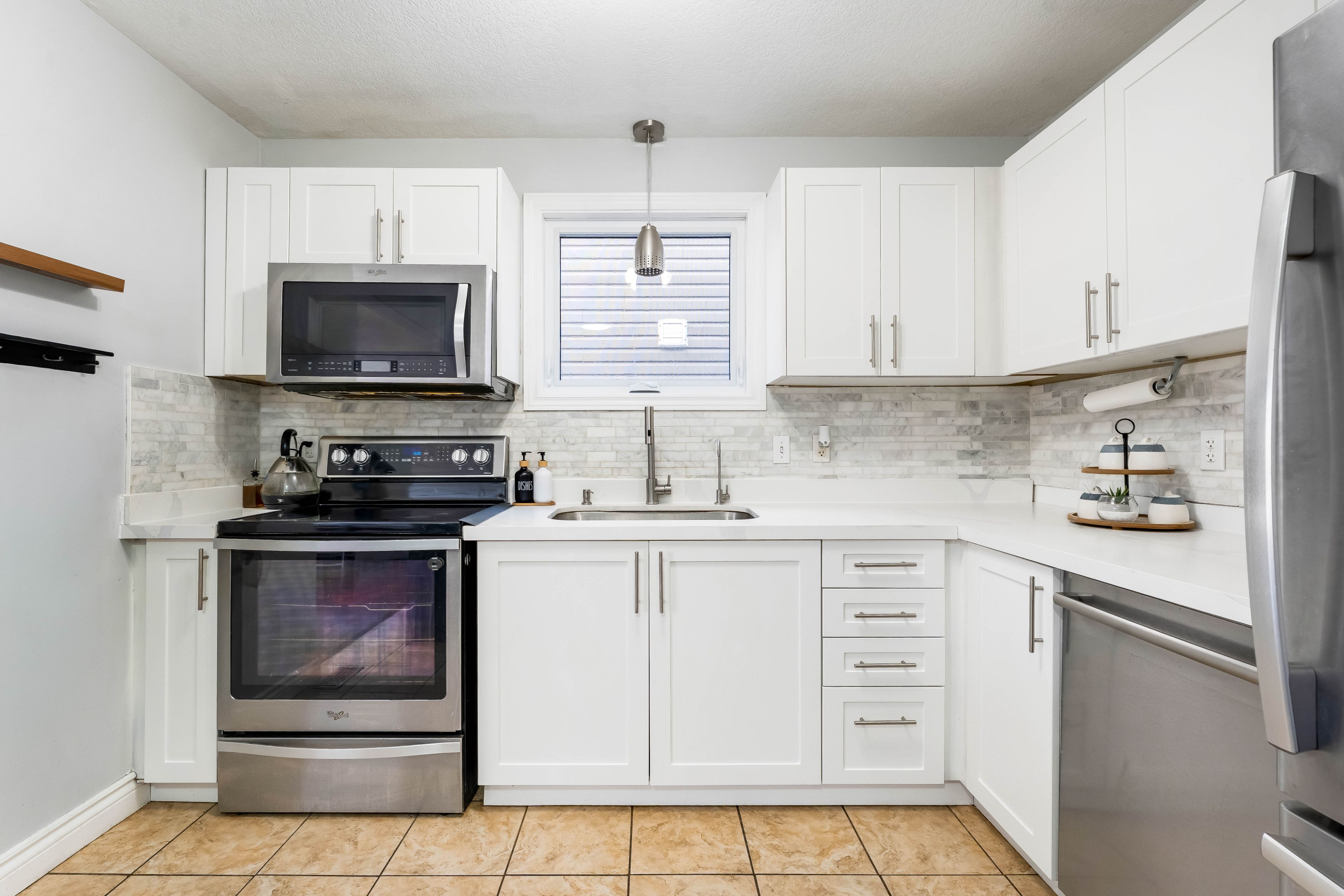 Welcome to 160 prosperity drive, nestled in the highly sought-after williamsburg neighborhood of kitchener: a family-friendly community known for unbeatable convenience. From the moment you arrive, the amazing curb appeal sets the tone. This beautifully maintained detached home offers 3-car parking (1 garage + 2 driveway) and welcomes you into a move-in ready space. Step inside to a bright open-concept main floor filled with natural light from large windows. The 2025 renovated kitchen features quartz countertops, white cabinetry, chic backsplash, stainless steel appliances and a centre island. The carpet-free main level enhances the modern feel, while the living room provides the ideal setting for cozy movie nights or family gatherings. A stylish powder room with designer wall detail and upgraded vanity adds a luxury touch. Upstairs offers three generously sized bedrooms, including a primary retreat with walk-in closet and convenient access to a 4-piece jack-and-jill bathroom. The additional bedrooms provide backyard views and ample closet space. The walkout basement is a standout feature, thoughtfully finished in a bachelor-style layout complete with its own kitchenette, 3-piece bathroom and a large recreation space. Whether you envision an in-law suite, mortgage helper potential, extended family living, or a private entertainment zone, this level offers incredible flexibility. Walk out to fully fenced backyard oasis, perfect for summer fun, gardening, or simply relaxing after a long day. The raised deck is ideal for hosting bbqs and gatherings while enjoying peaceful outdoor living. Location is ideal as it is just minutes from: williamsburg's top-rated schools, parks and scenic walking trails, sunrise shopping centre, quick access to highway 7/8 and hwy 401, grocery stores, restaurants and everyday amenities this home it perfect for families, professionals, or savvy investors. Dont miss this opportunity, book your private showing today and make it yours.