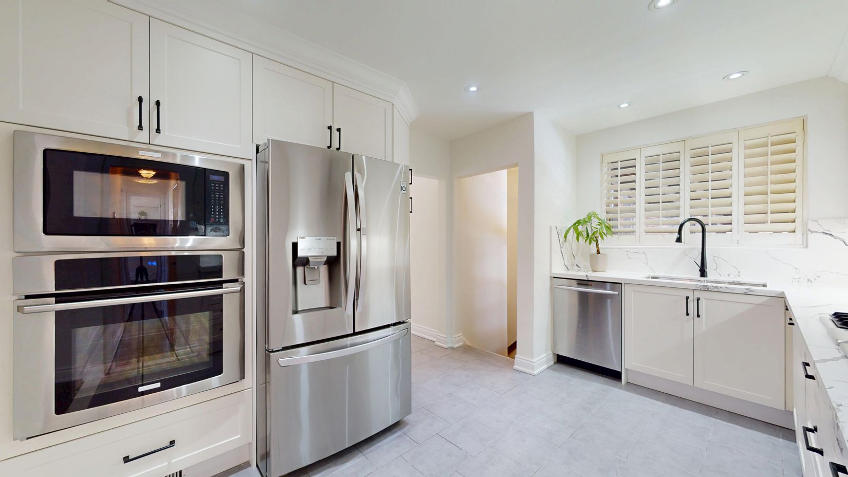 • Modern kitchen featuring stainless steel appliances for convenience.