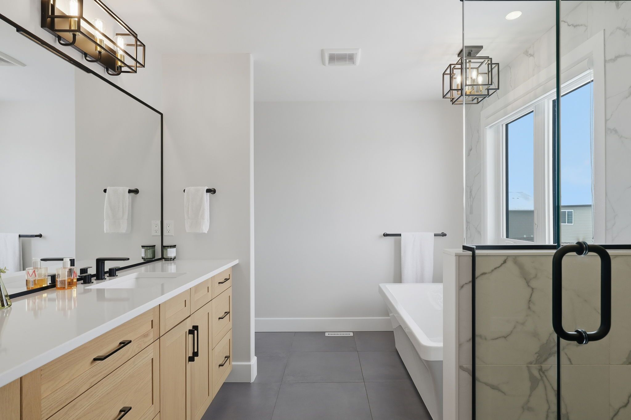 • Oversized garage with EV charger ready and ample space for a full-size pickup.