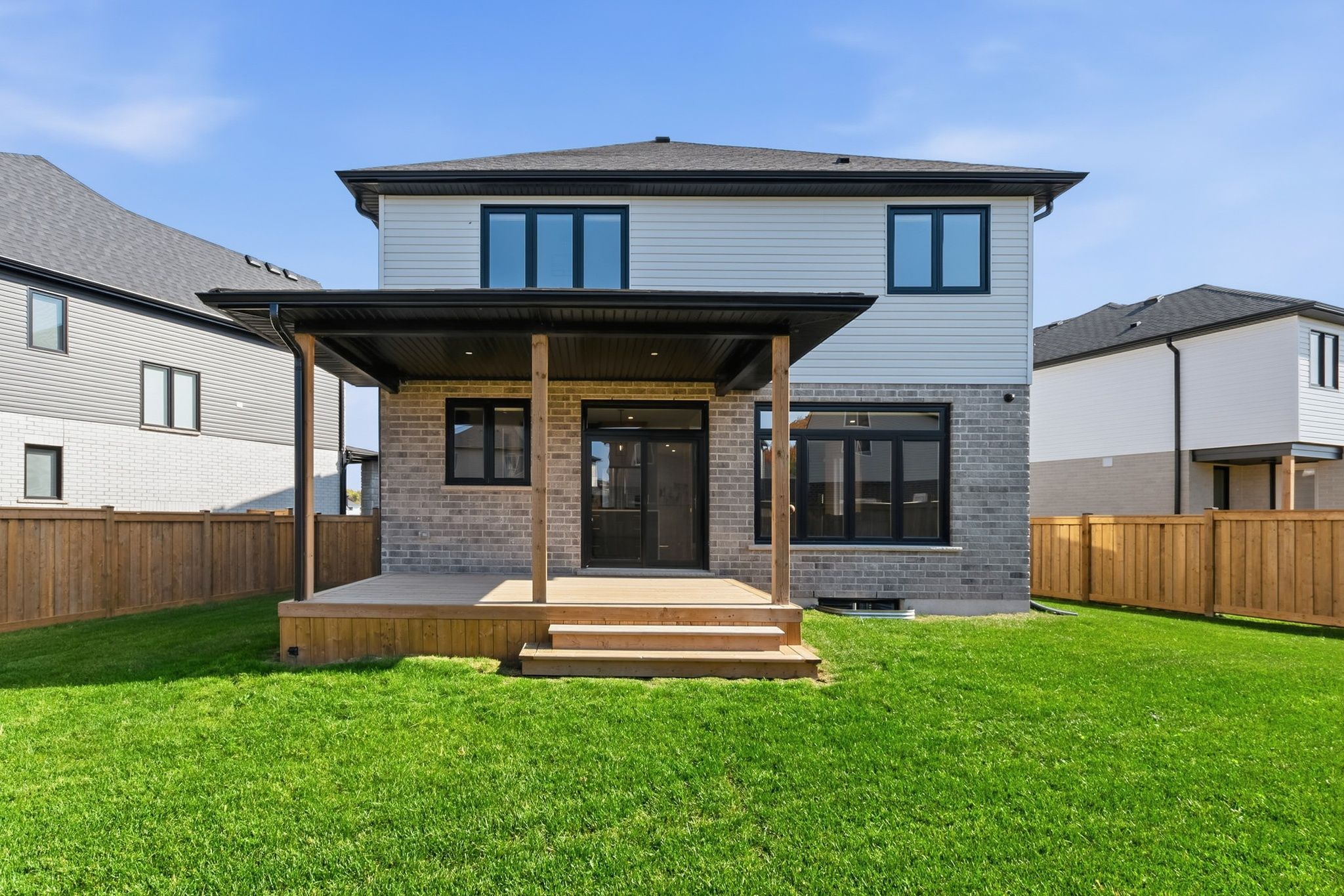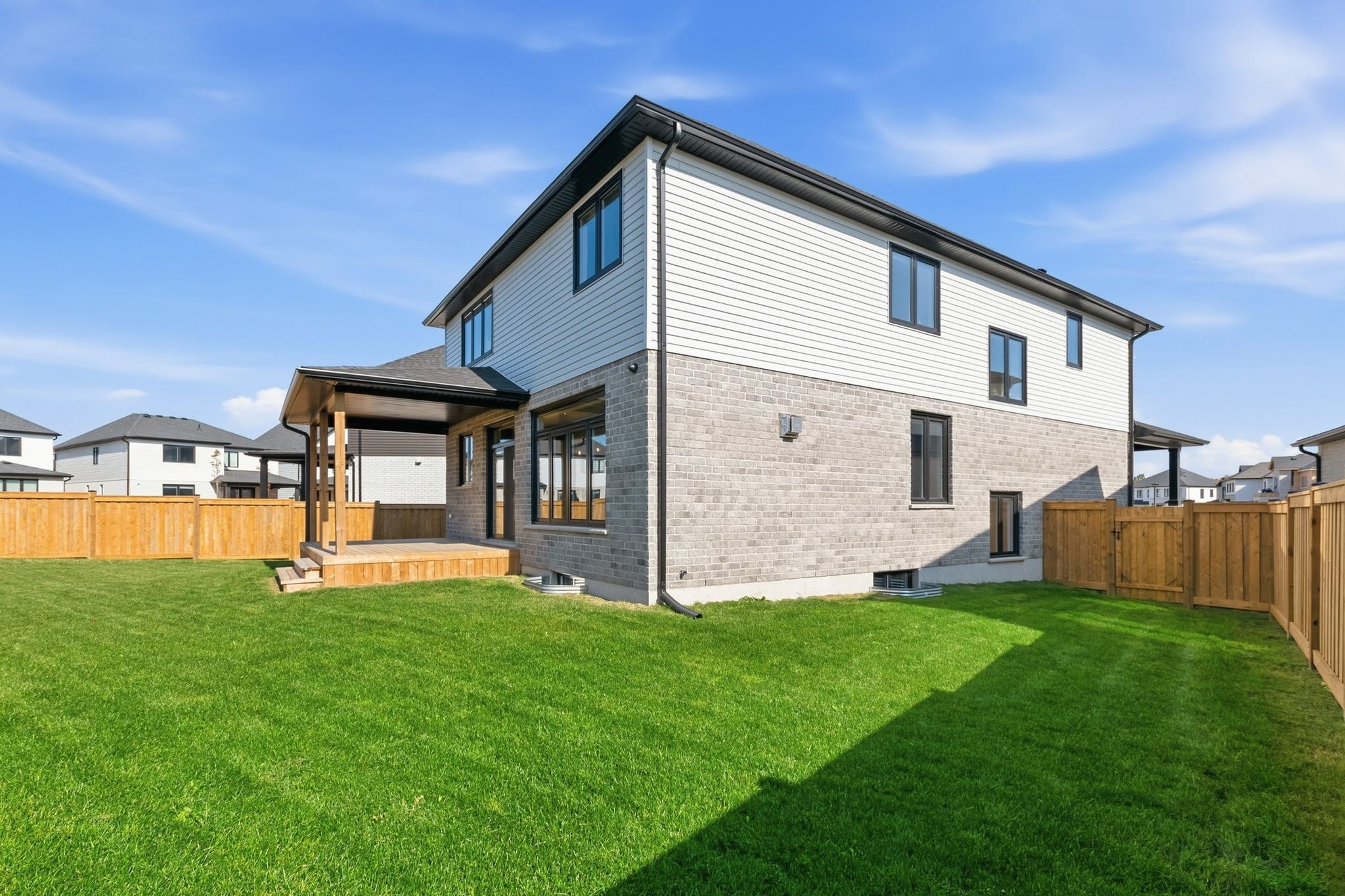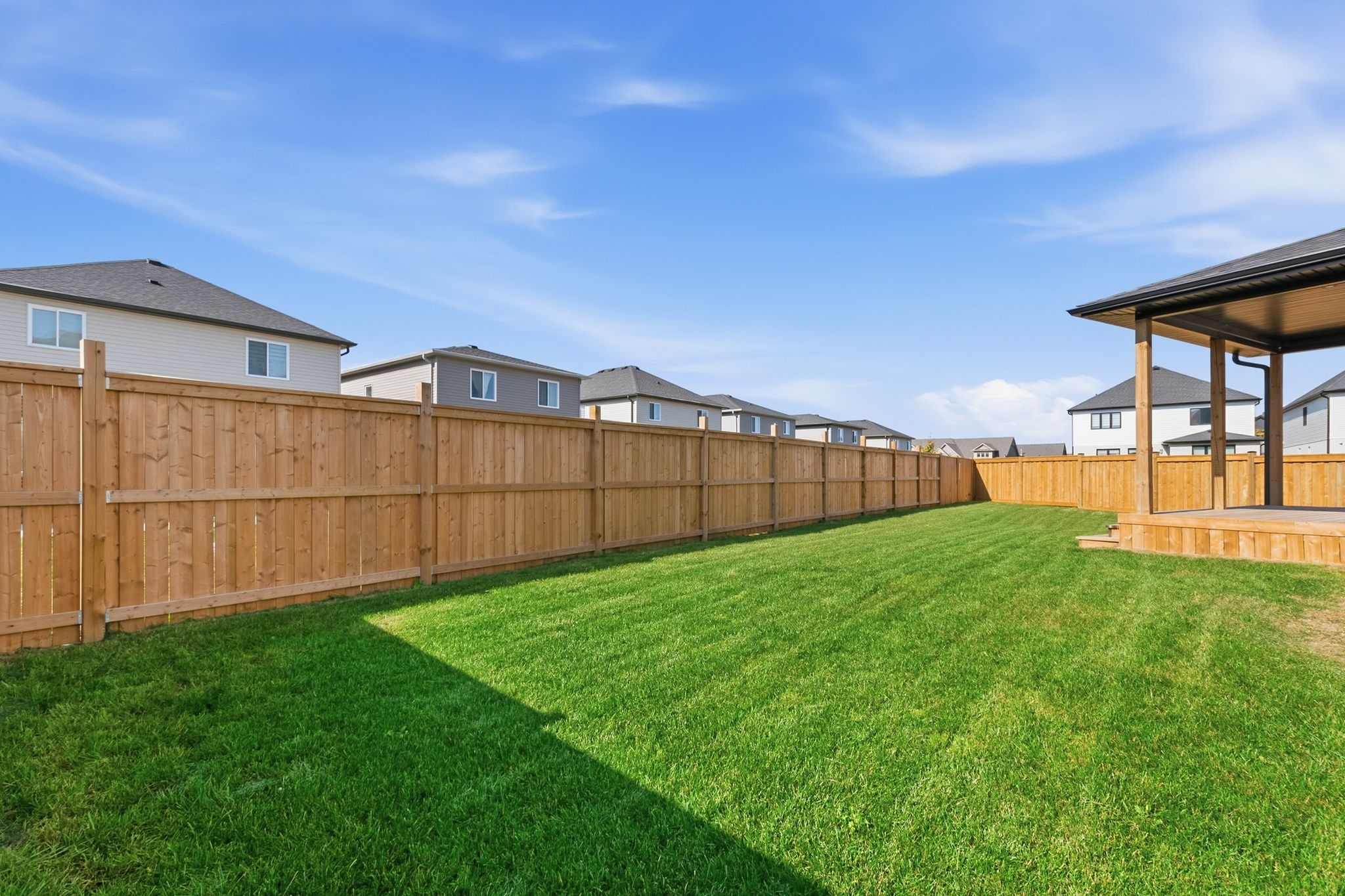 • Fully fenced yard with a covered deck, perfect for outdoor enjoyment.