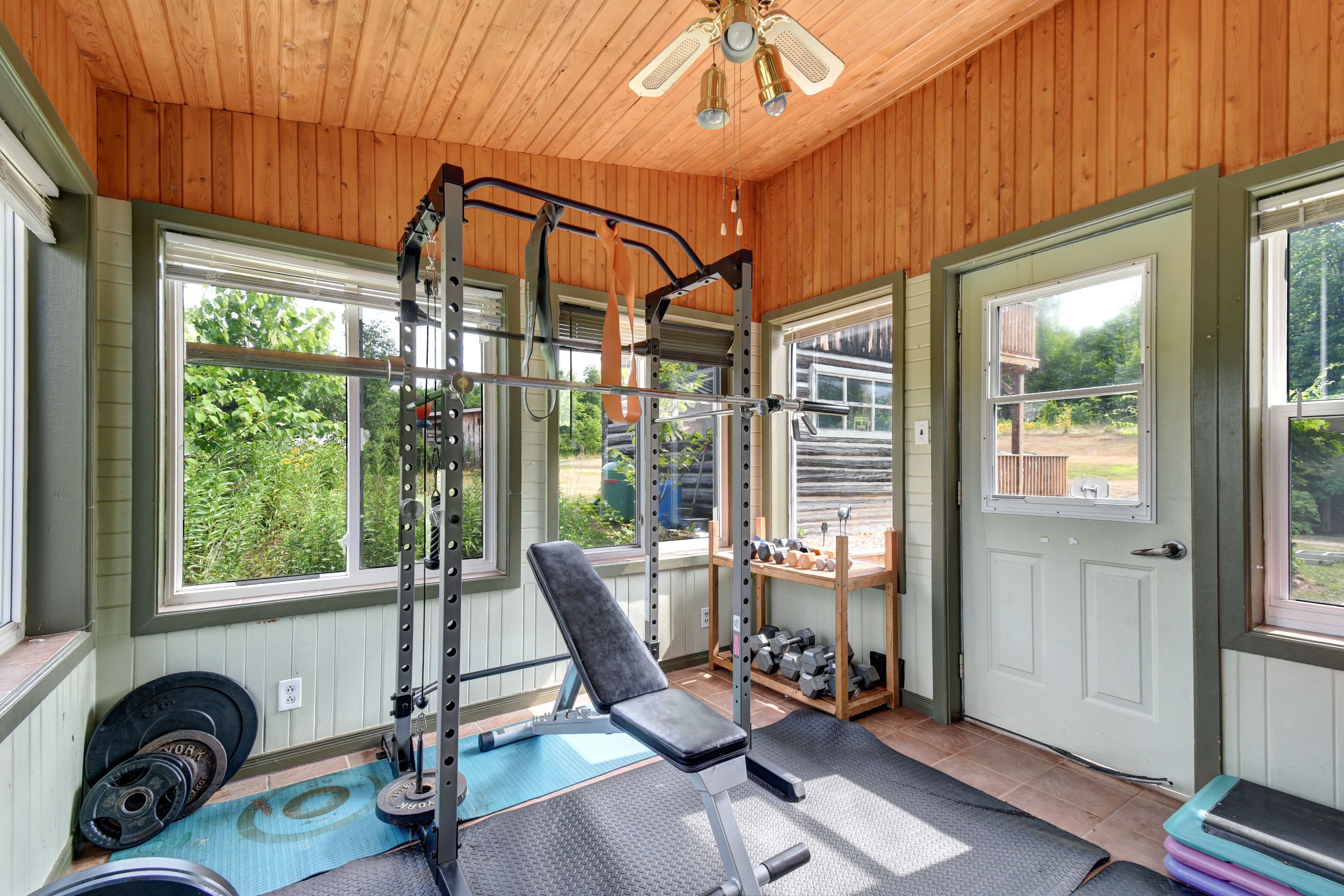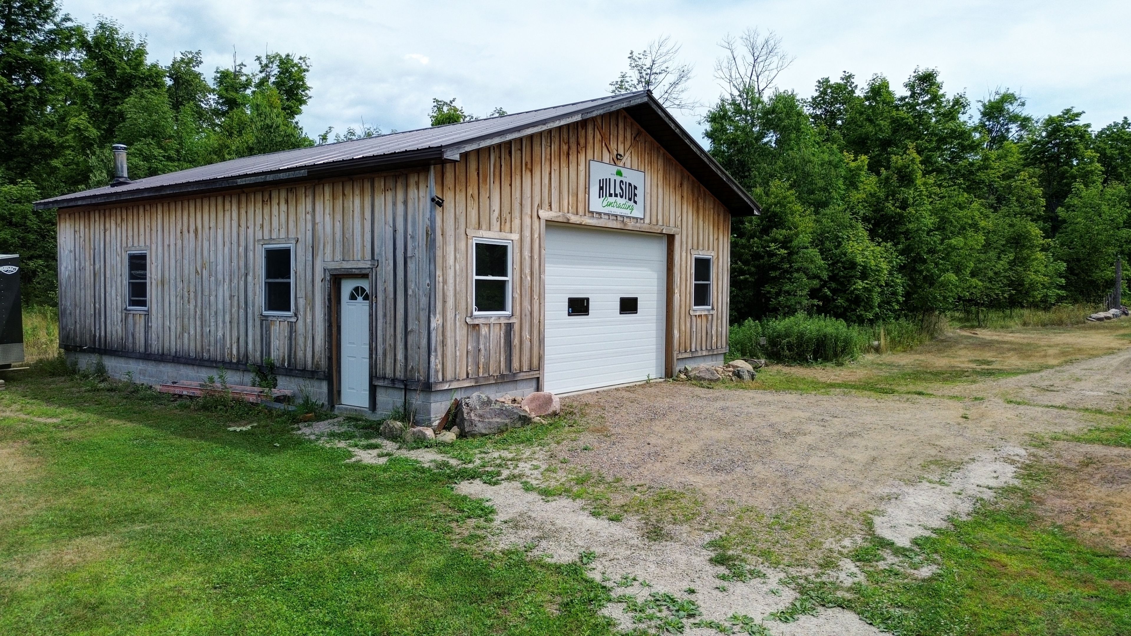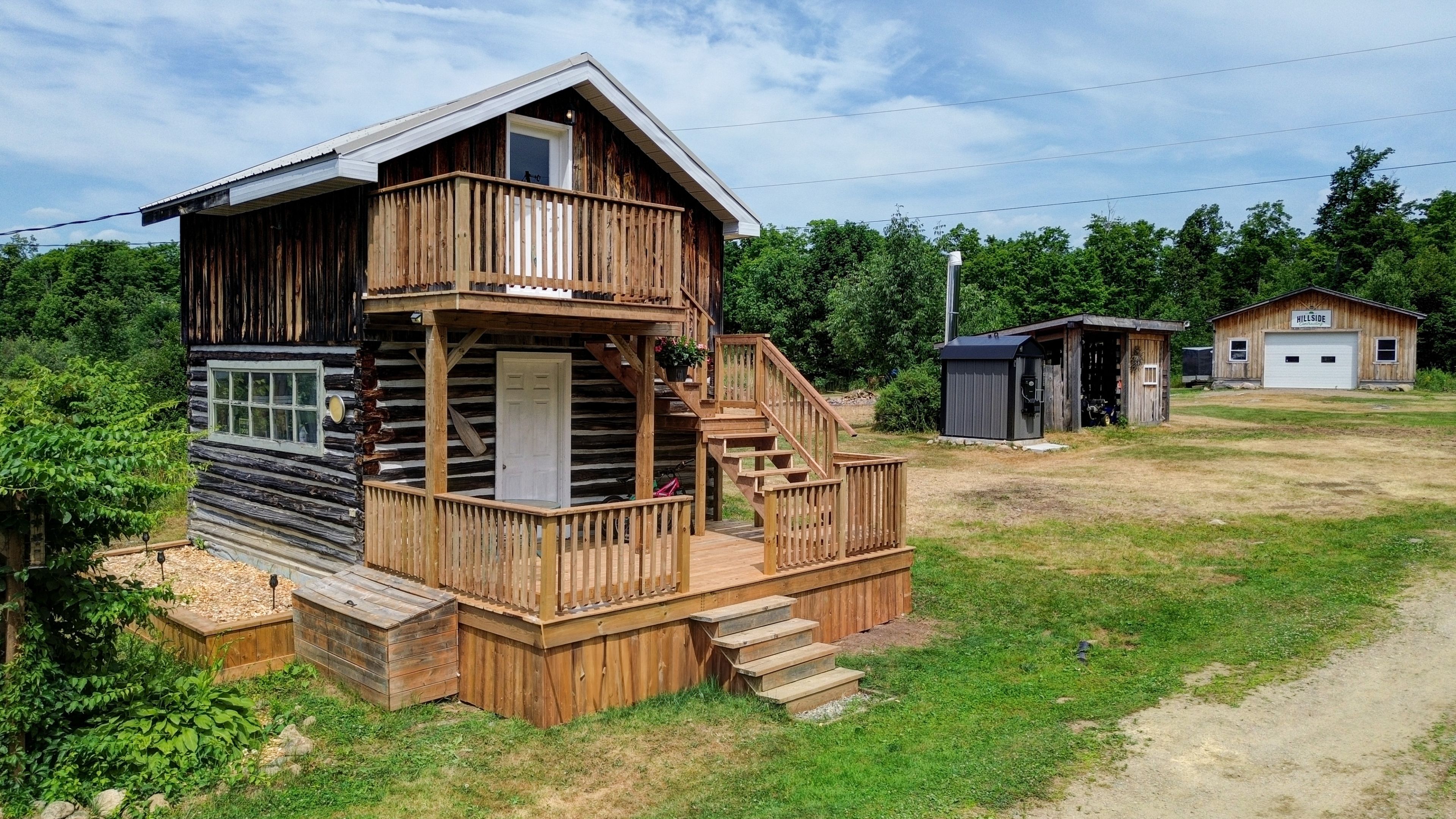 • Two-storey bunkie offers additional sleeping space and workshop potential.