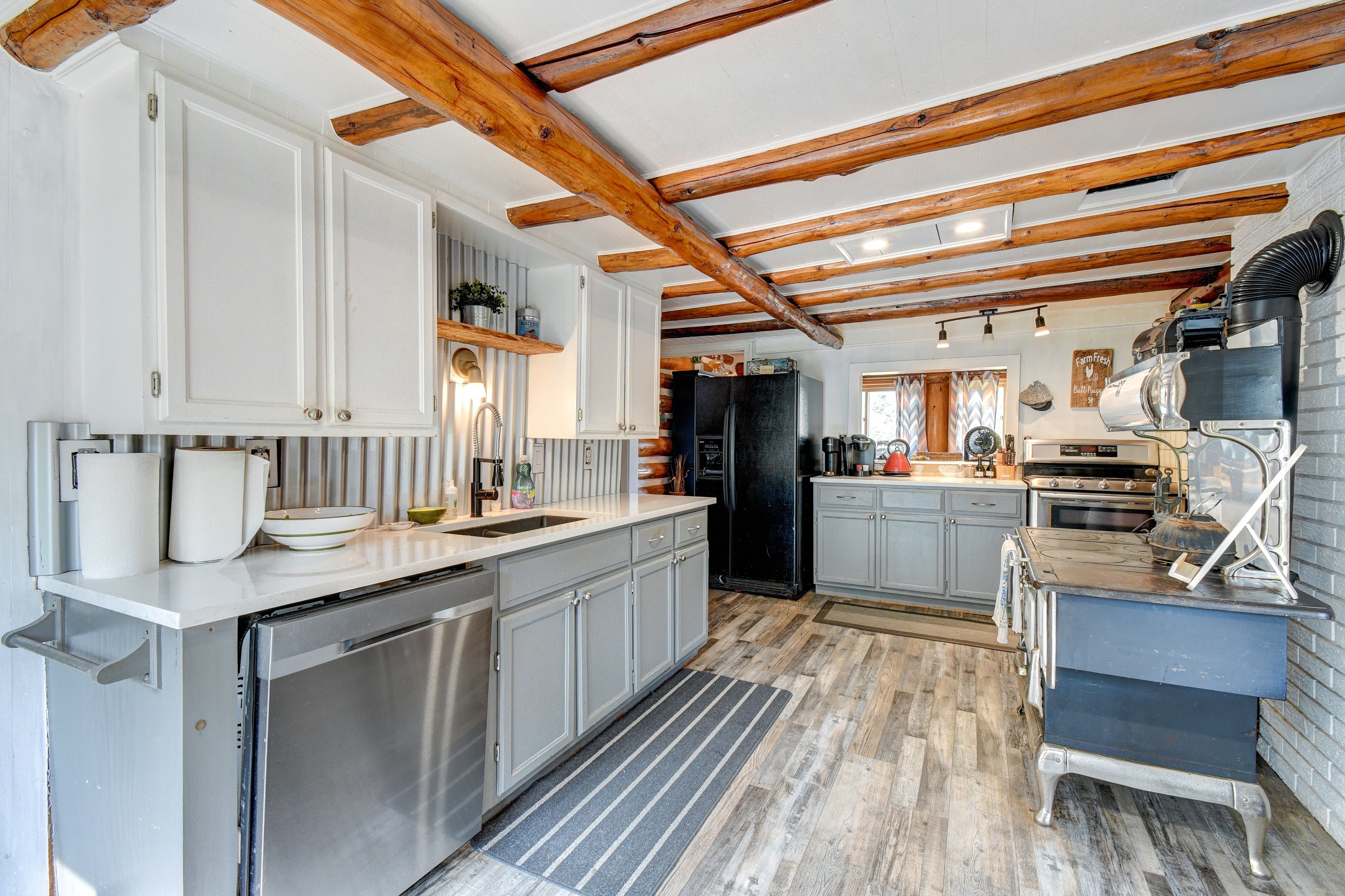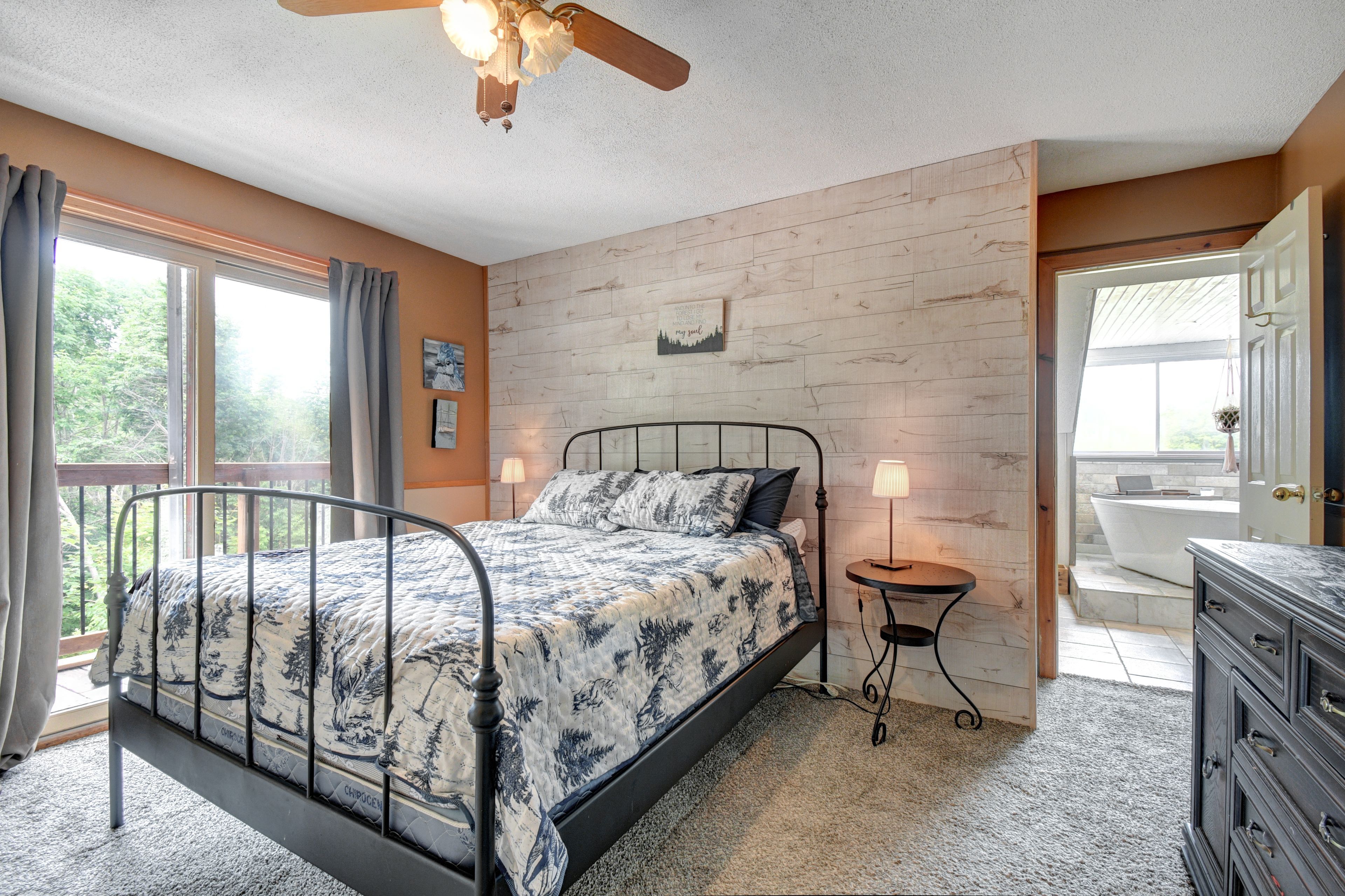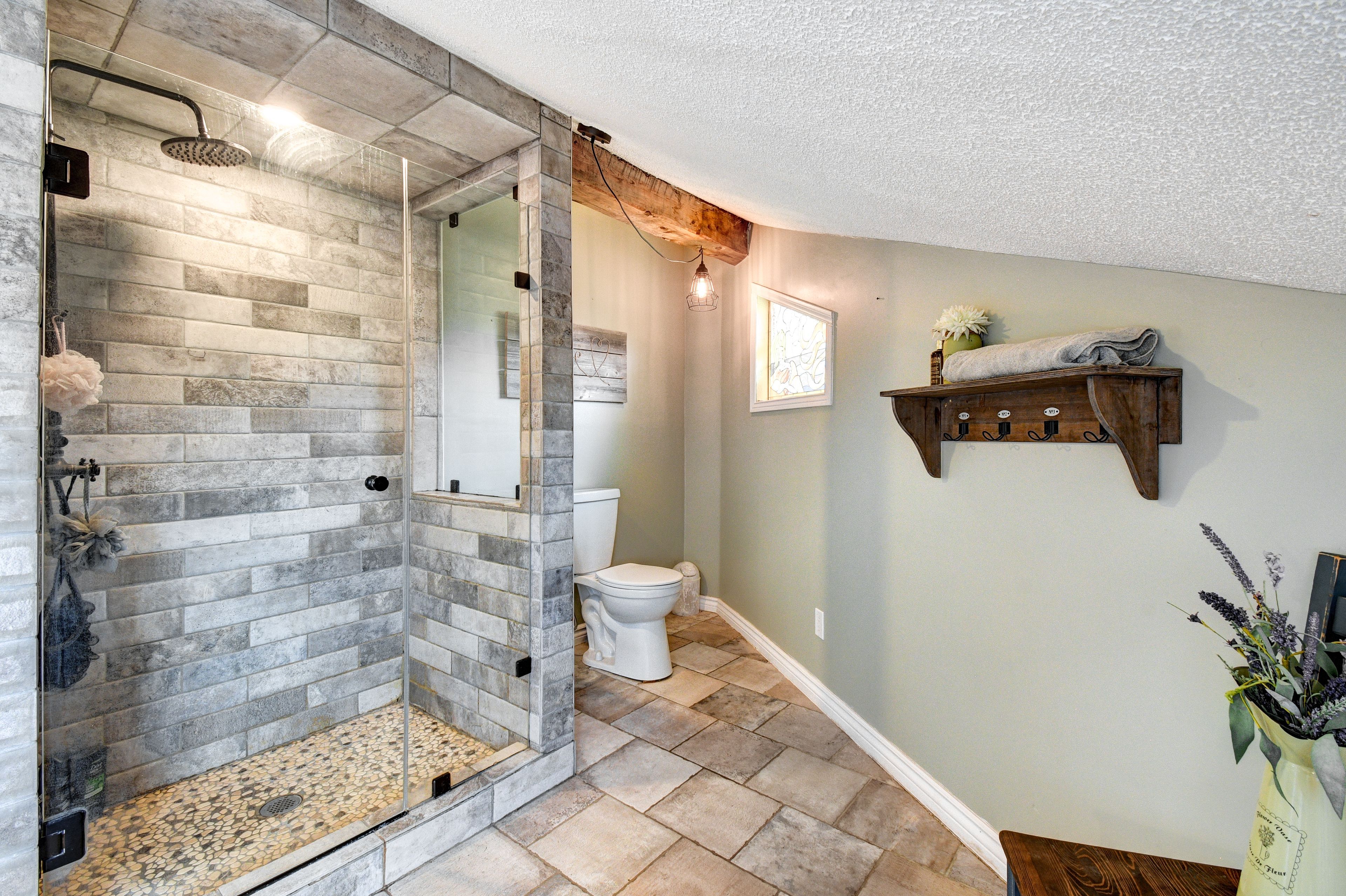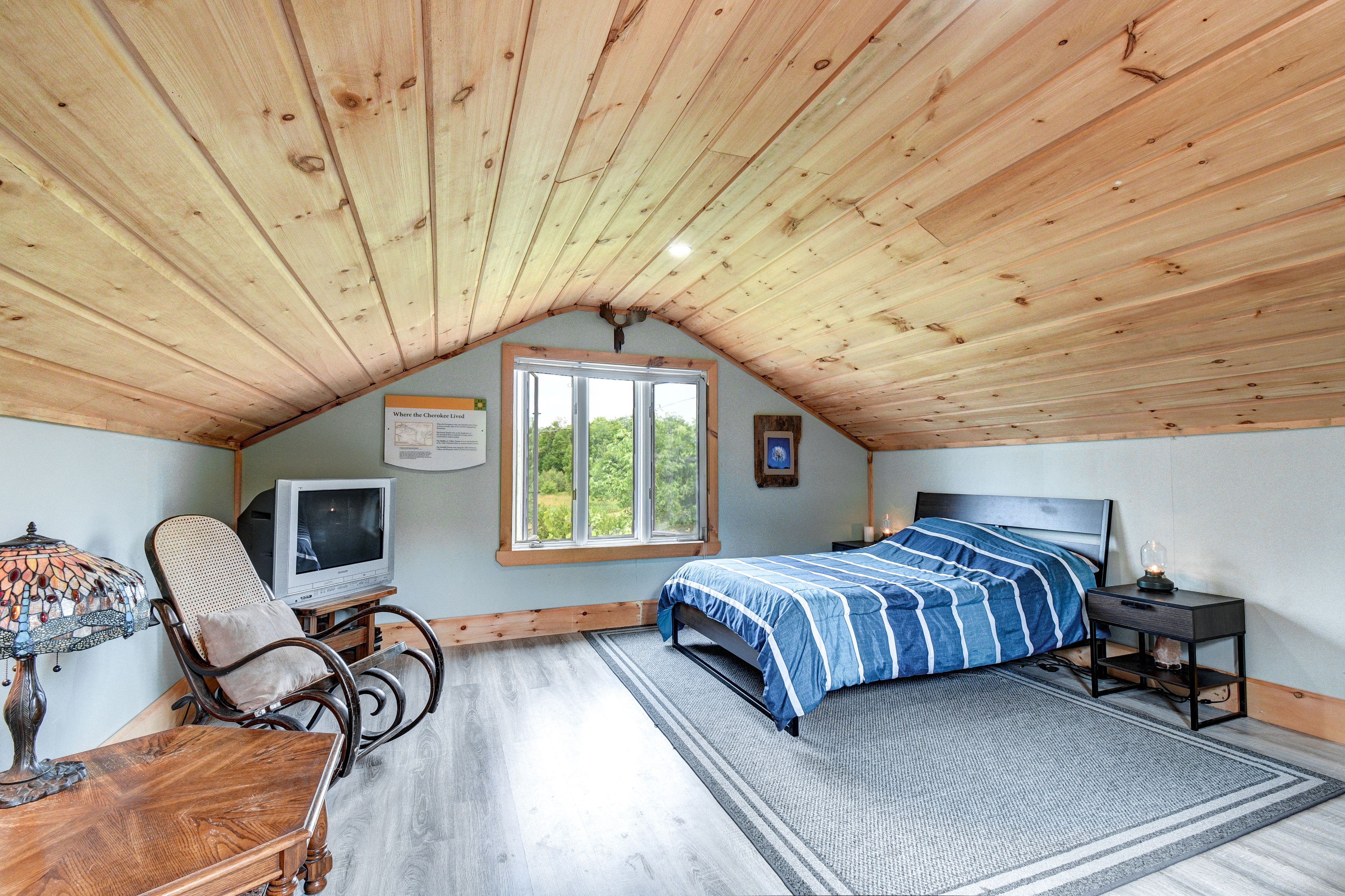 • Two-storey bunkie offers additional sleeping space and workshop potential.