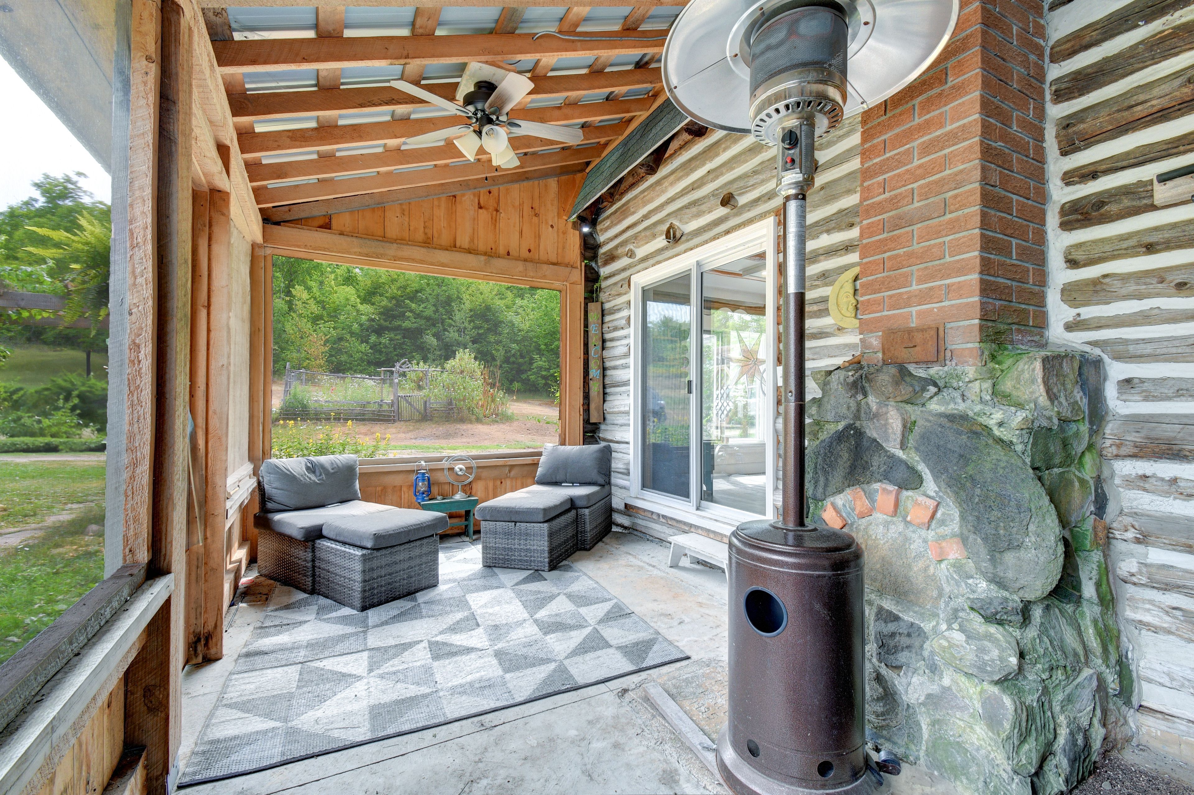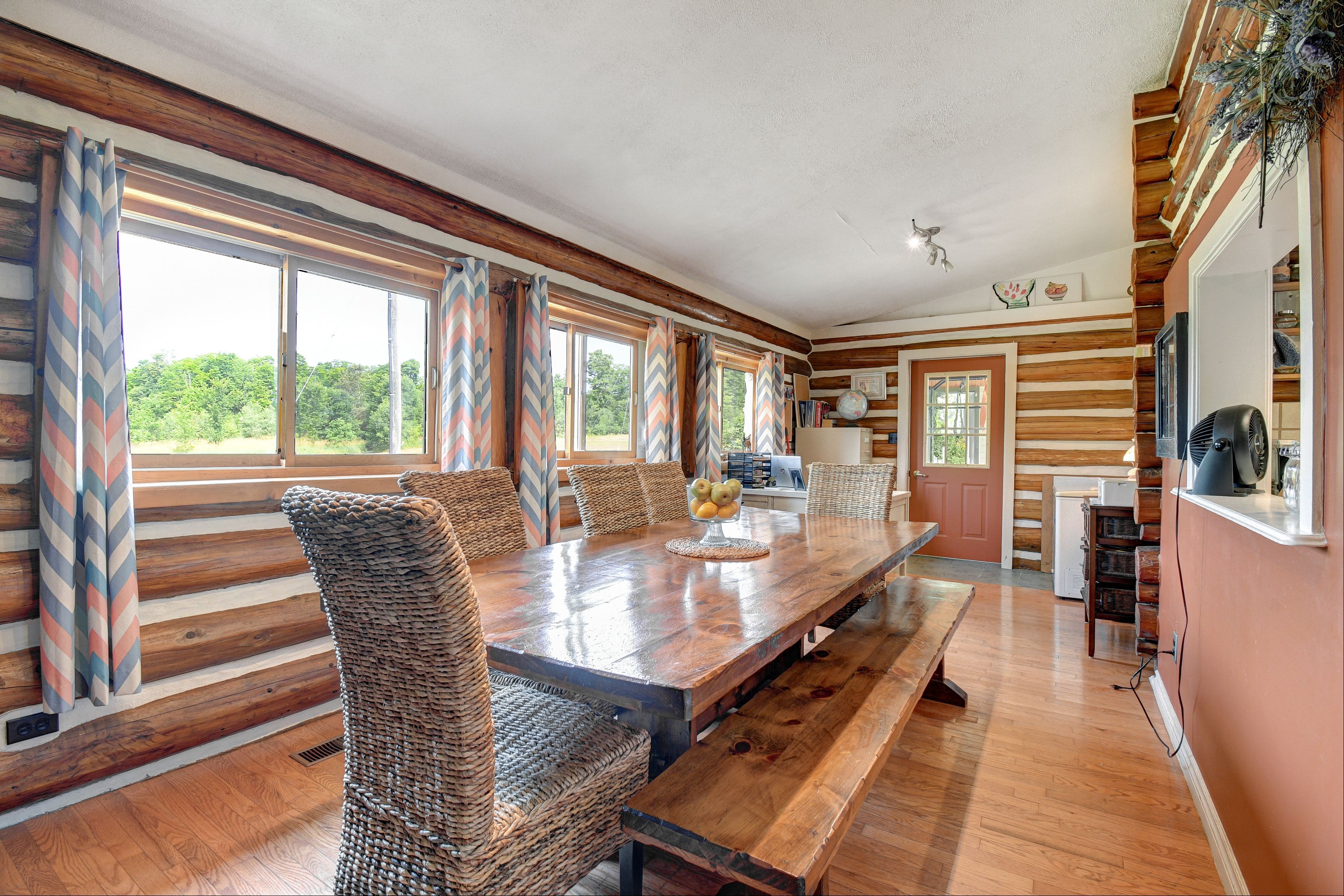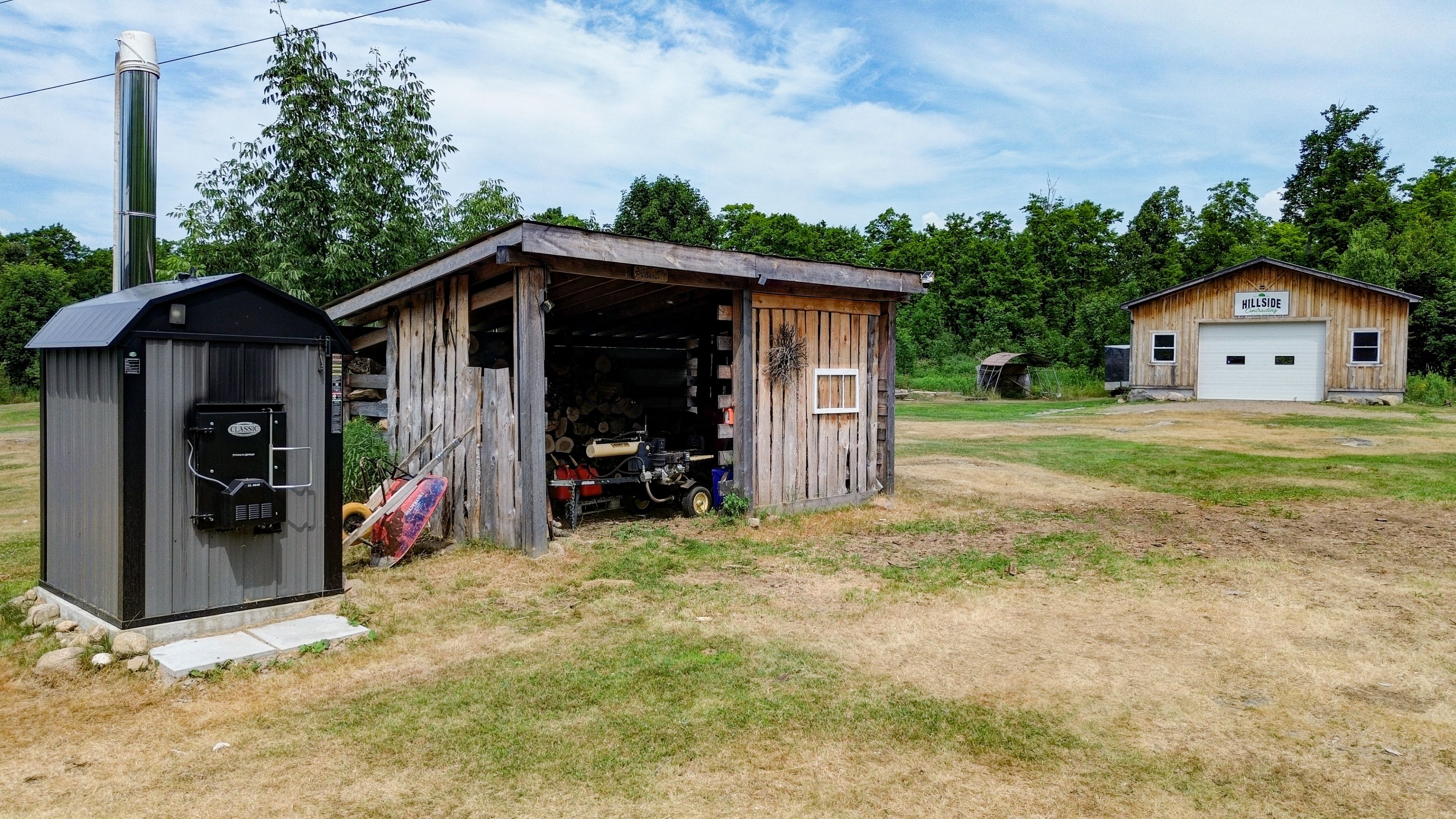 Pack your bags and load up the kids! This is a special place that is just waiting for the next family to move in and make memories. The unique log home has been hand crafted with local logs from the property, with a passive solar design allowing sunlight into the home all times of the day. The home's layout is family friendly with a large formal dining area, big living room with an open fireplace, country kitchen with woodburning cookstove and three generous bedrooms on the second floor. There is a matching two storey bunkie, with sleeping quarters on the second floor and a main floor area currently used as a small workshop, but easily transformed into living space. A large 30 x 40 shop was just built a few years ago with 12' ceilings. The property features trails, open meadow, a small pond great for an ice rink, and lots of maple trees to tap for syrup. There is also 100 acres of crown land across the road for some extra hunting opportunities. Other features include, new propane furnace, newer outdoor wood furnace which heats the home and shop, drilled well, septic and generator.