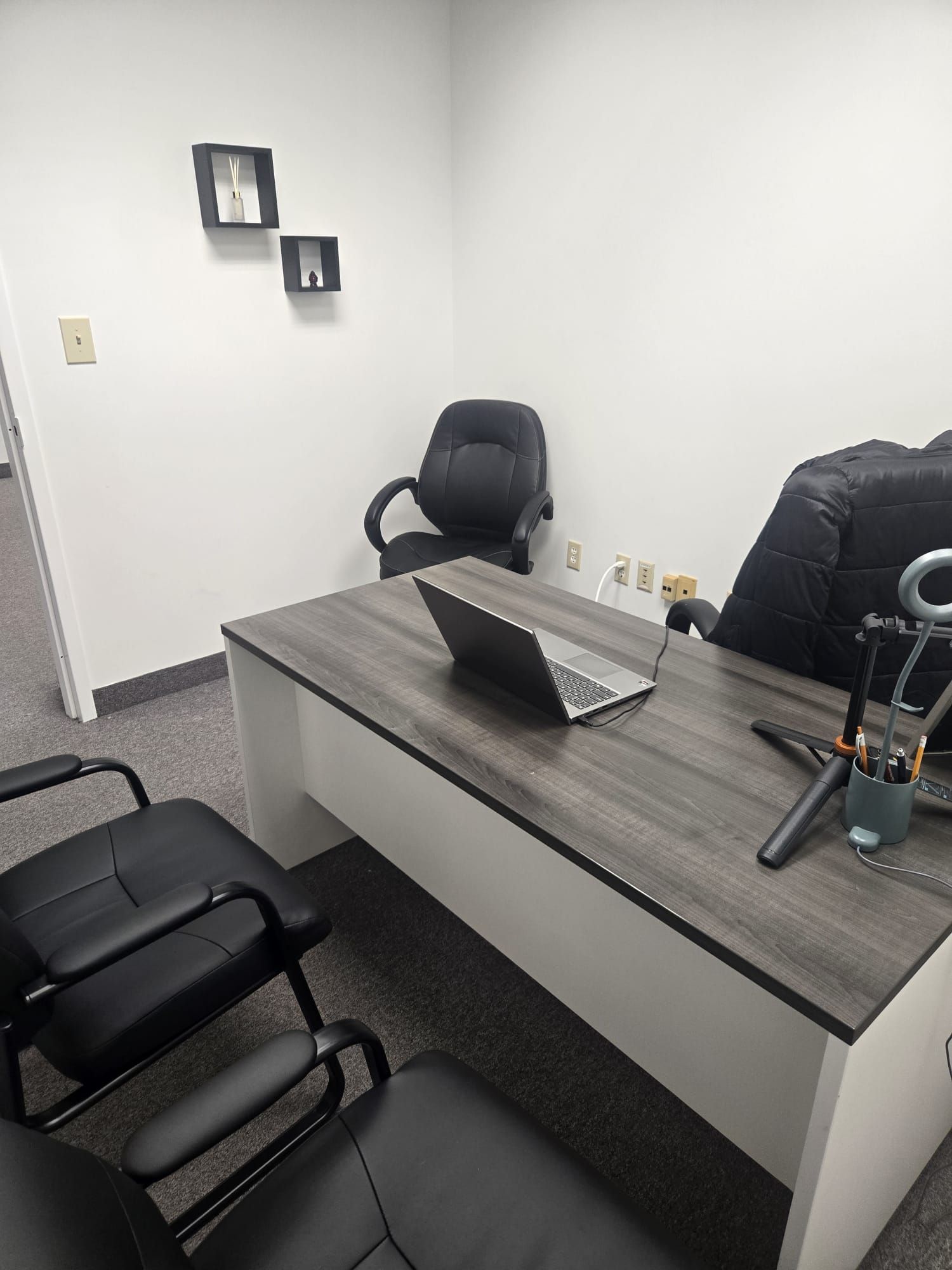 • Second-floor office unit with a bright, open-concept layout and natural light.