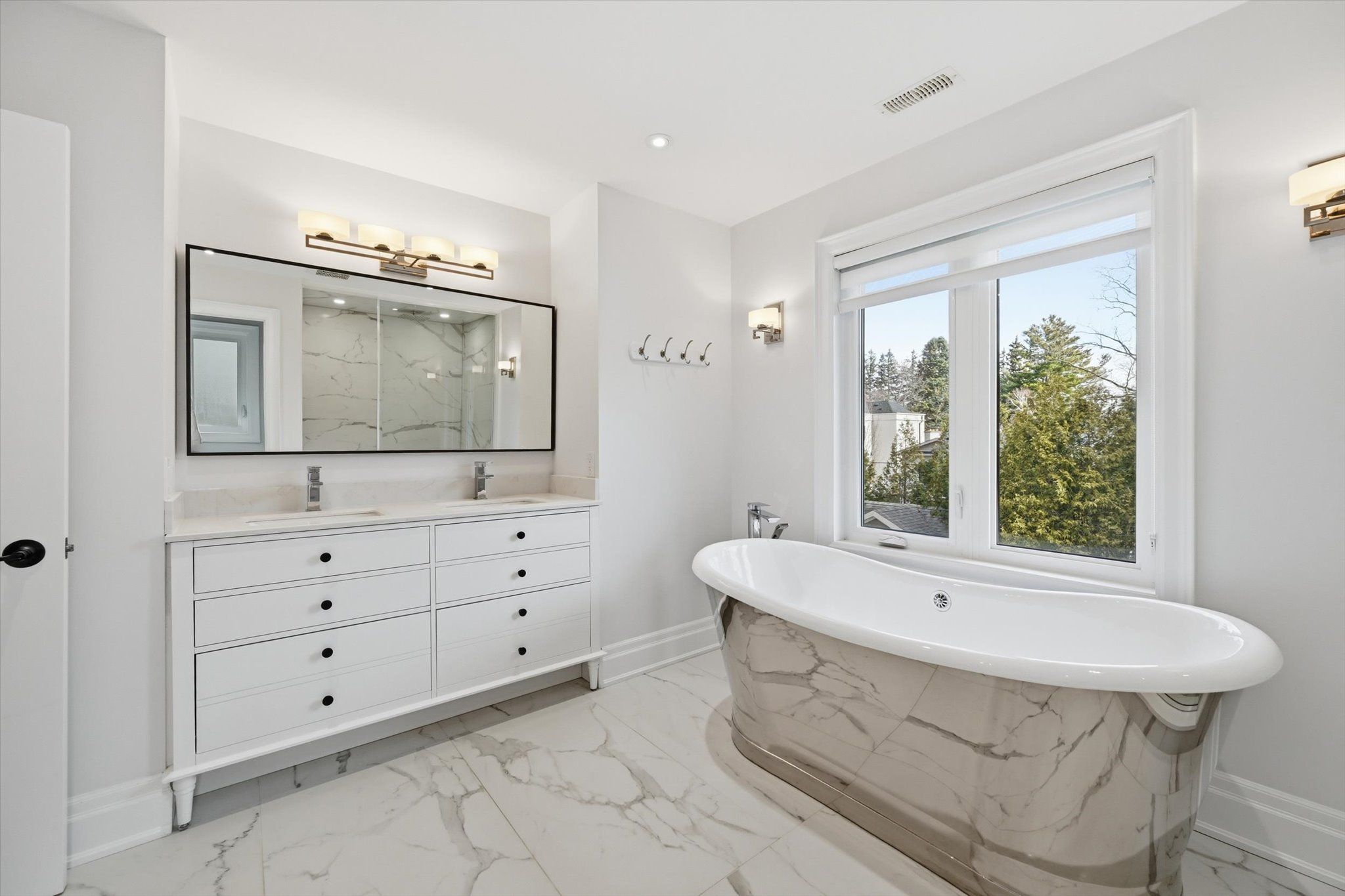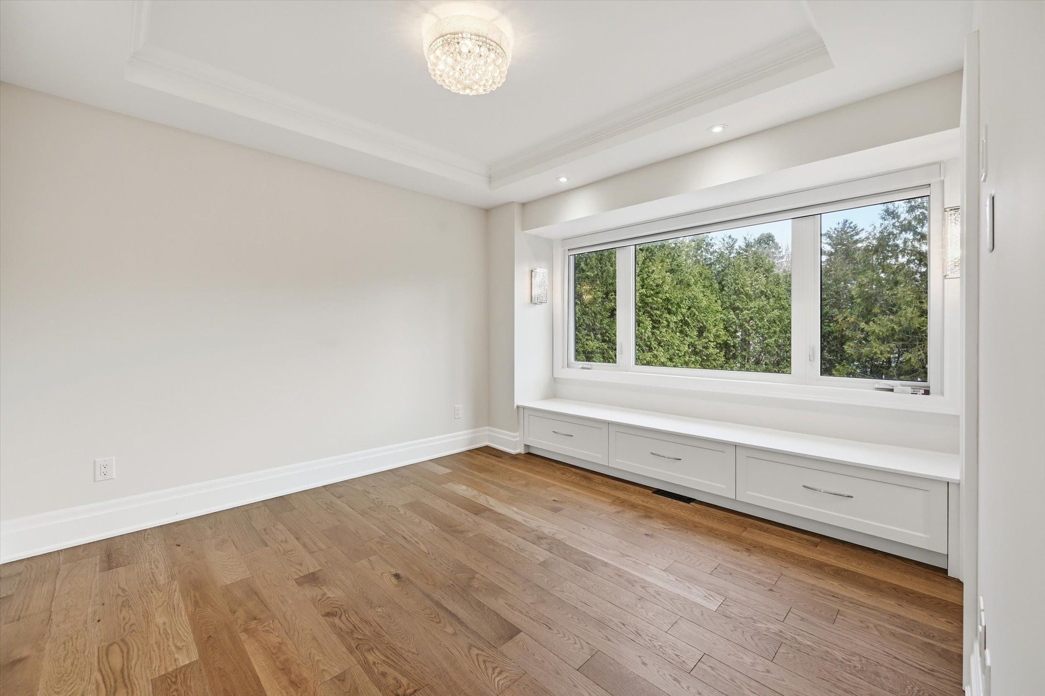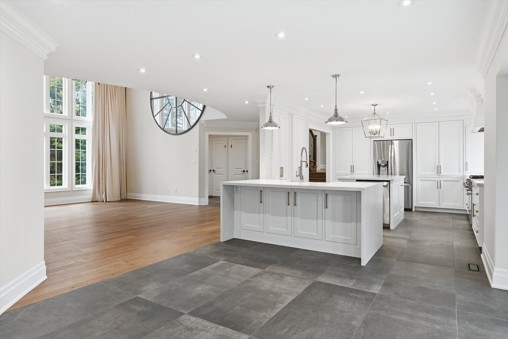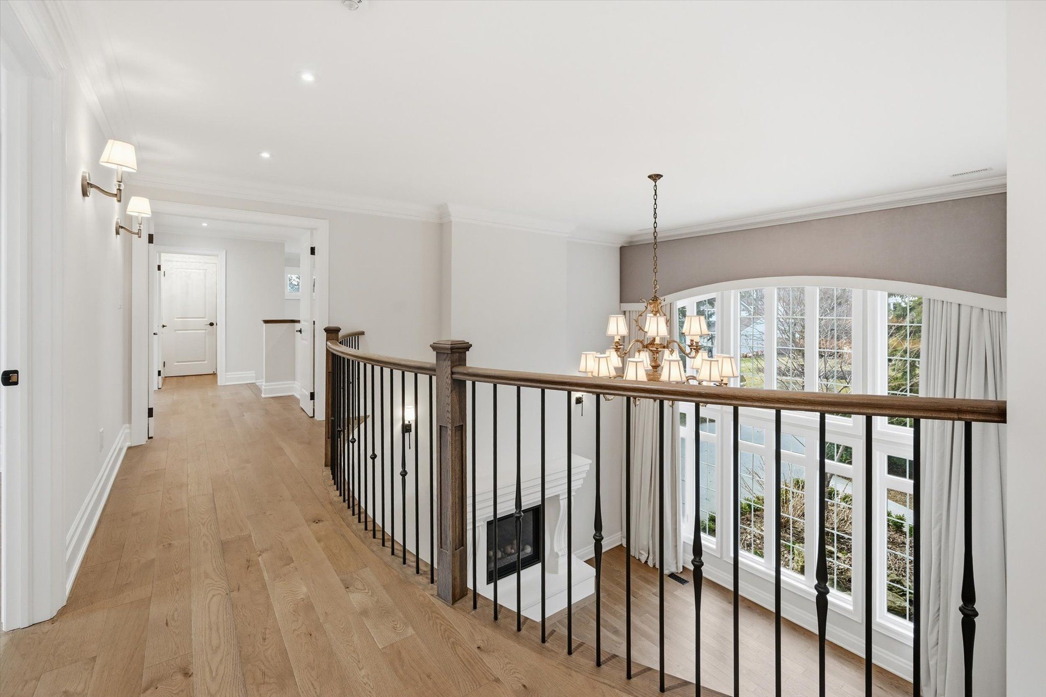 Situated in the prestigious coronation park enclave of south-west oakville, this reimagined custom residence offers over 4,500 square feet of finished living space on a premium 90' x 125' mature lot. Designed for modern family living, the home features 6 bedrooms and 4. 5 bathrooms with refined finishes and a highly functional layout. A grand double-height living room with 17' ceiling and architectural windows anchors the main level, complete with a gas fireplace and automated drapery. The chef-inspired kitchen features peninsula seating, a farmhouse sink, separate prep island, quartz surfaces, a 36" thermador gas range with pot filler, integrated hood, prep sink, and thermador dishwasher, opening to the dining area with walkout to a composite deck with glass railing. The second level includes two spacious bedrooms, one with a four-piece ensuite, powder room, and a versatile vaulted lounge. The third level is dedicated to a private primary retreat with dual walk-in closets, including a laundry rough-in, and a spa-inspired five-piece ensuite with freestanding tub, oversized glass shower, and heated floor. Two additional bedrooms and a five-piece bath complete this level. The finished lower level offers a media room with built-in shelving and av rough-in, along with a sixth bedroom or office. A recreation area with walkout, dedicated gym, full bath, laundry, and built-in storage with direct garage access can be found on the basement level. Additional highlights include engineered hardwood flooring throughout, dual hvac systems, ecobee thermostats, soffit lighting, a five-car driveway, and a backyard with saltwater pool, outdoor wet bar, pergola, and multiple seating areas. Walking distance to coronation park, the lakefront, and top-ranked schools. (certain images have been digitally enhanced and virtually staged)
