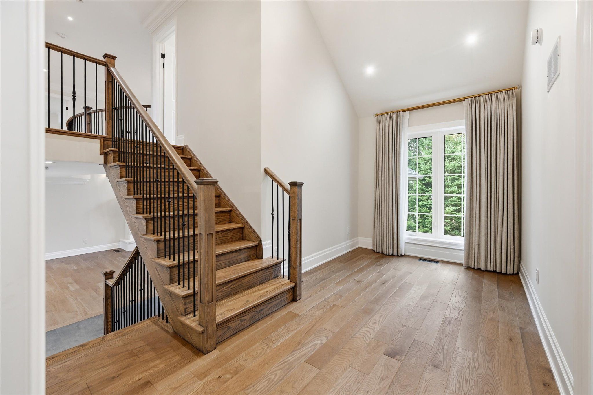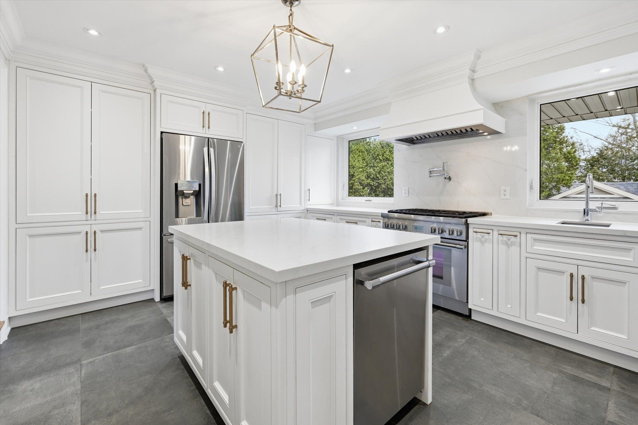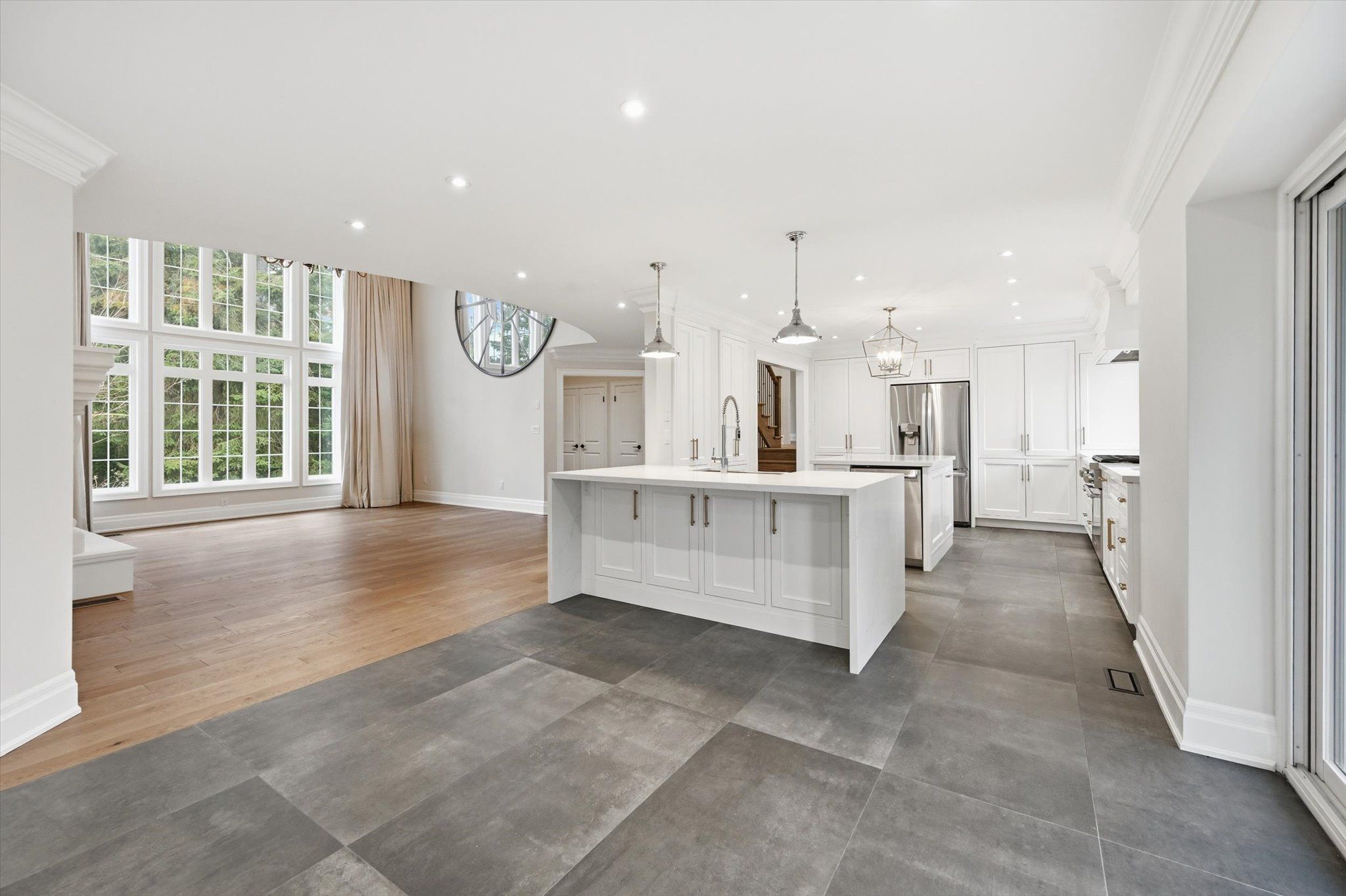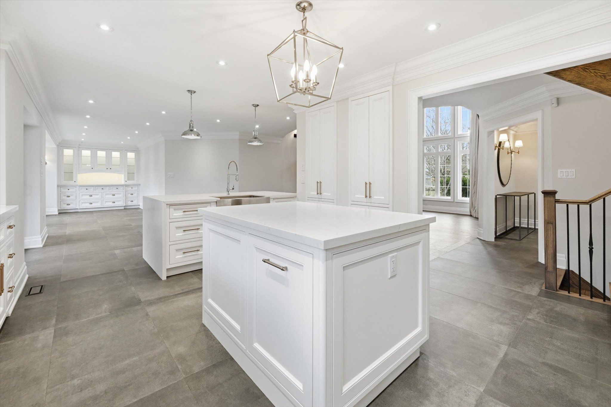 Situated in the prestigious coronation park enclave of south-west oakville, this reimagined custom residence offers over 4,500 square feet of finished living space on a premium 90' x 125' mature lot. Designed for modern family living, the home features 6 bedrooms and 4. 5 bathrooms with refined finishes and a highly functional layout. A grand double-height living room with 17' ceiling and architectural windows anchors the main level, complete with a gas fireplace and automated drapery. The chef-inspired kitchen features peninsula seating, a farmhouse sink, separate prep island, quartz surfaces, a 36" thermador gas range with pot filler, integrated hood, prep sink, and thermador dishwasher, opening to the dining area with walkout to a composite deck with glass railing. The second level includes two spacious bedrooms, one with a four-piece ensuite, powder room, and a versatile vaulted lounge. The third level is dedicated to a private primary retreat with dual walk-in closets, including a laundry rough-in, and a spa-inspired five-piece ensuite with freestanding tub, oversized glass shower, and heated floor. Two additional bedrooms and a five-piece bath complete this level. The finished lower level offers a media room with built-in shelving and av rough-in, along with a sixth bedroom or office. A recreation area with walkout, dedicated gym, full bath, laundry, and built-in storage with direct garage access can be found on the basement level. Additional highlights include engineered hardwood flooring throughout, dual hvac systems, ecobee thermostats, soffit lighting, a five-car driveway, and a backyard with saltwater pool, outdoor wet bar, pergola, and multiple seating areas. Walking distance to coronation park, the lakefront, and top-ranked schools. (certain images have been digitally enhanced and virtually staged)
