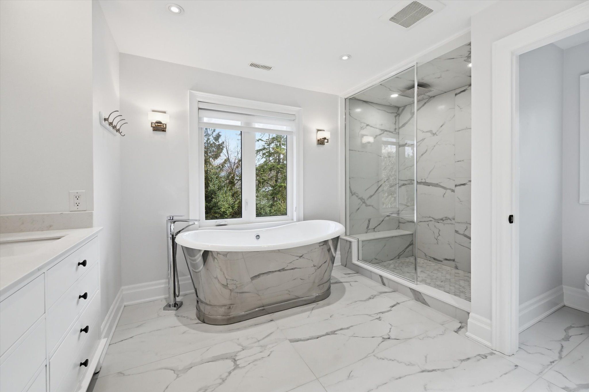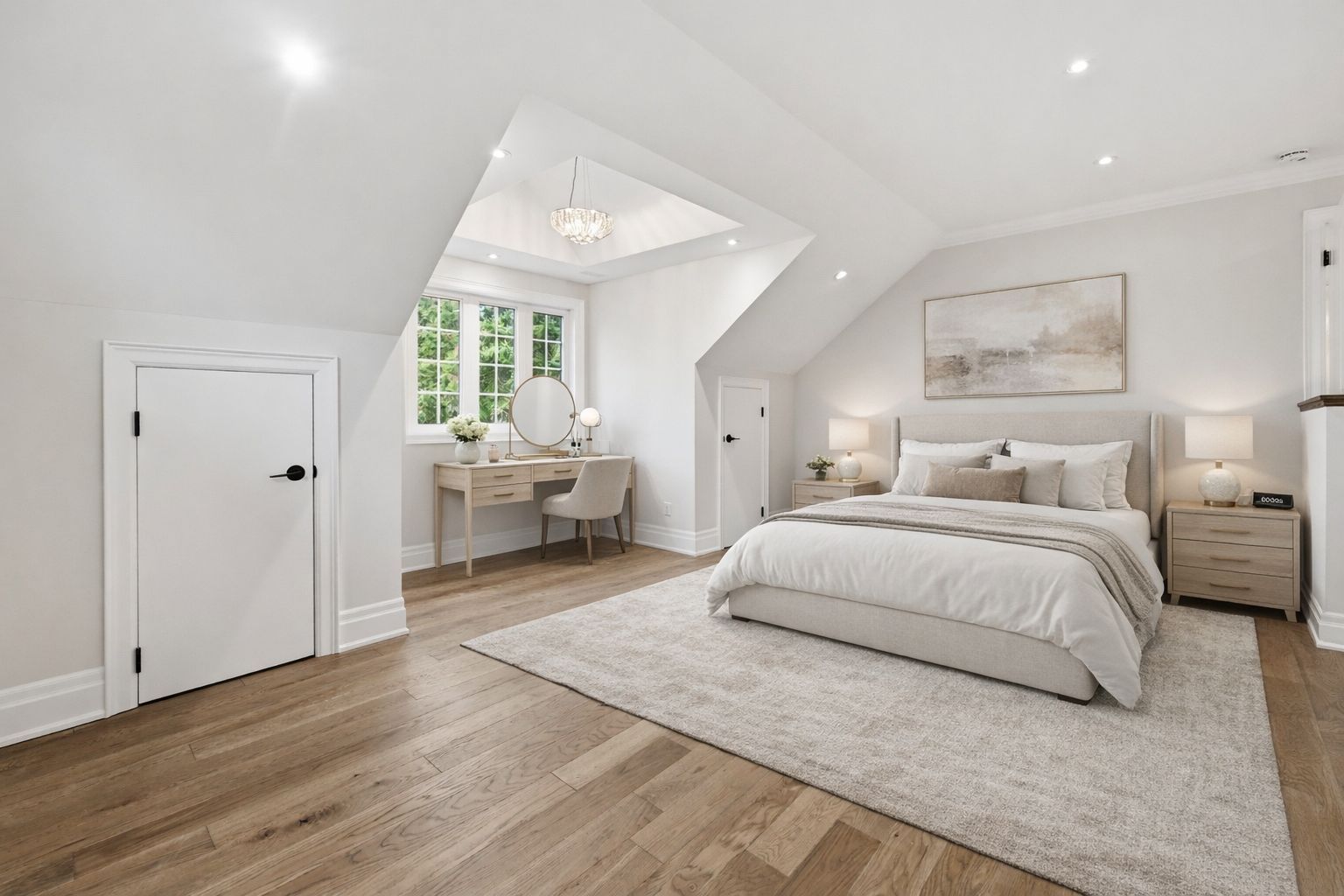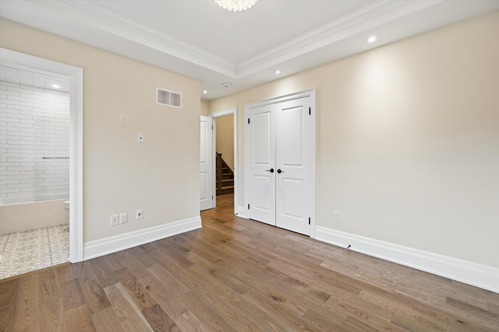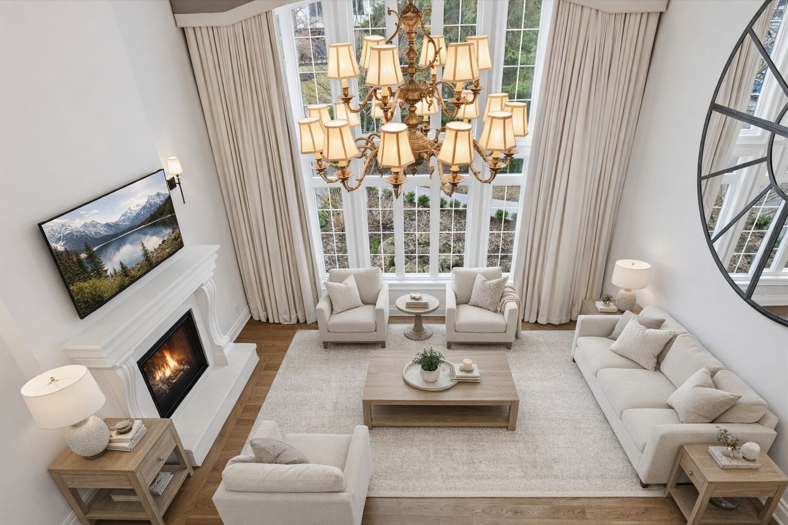 Situated in the prestigious coronation park enclave of south-west oakville, this reimagined custom residence offers over 4,500 square feet of finished living space on a premium 90' x 125' mature lot. Designed for modern family living, the home features 6 bedrooms and 4. 5 bathrooms with refined finishes and a highly functional layout. A grand double-height living room with 17' ceiling and architectural windows anchors the main level, complete with a gas fireplace and automated drapery. The chef-inspired kitchen features peninsula seating, a farmhouse sink, separate prep island, quartz surfaces, a 36" thermador gas range with pot filler, integrated hood, prep sink, and thermador dishwasher, opening to the dining area with walkout to a composite deck with glass railing. The second level includes two spacious bedrooms, one with a four-piece ensuite, powder room, and a versatile vaulted lounge. The third level is dedicated to a private primary retreat with dual walk-in closets, including a laundry rough-in, and a spa-inspired five-piece ensuite with freestanding tub, oversized glass shower, and heated floor. Two additional bedrooms and a five-piece bath complete this level. The finished lower level offers a media room with built-in shelving and av rough-in, along with a sixth bedroom or office. A recreation area with walkout, dedicated gym, full bath, laundry, and built-in storage with direct garage access can be found on the basement level. Additional highlights include engineered hardwood flooring throughout, dual hvac systems, ecobee thermostats, soffit lighting, a five-car driveway, and a backyard with saltwater pool, outdoor wet bar, pergola, and multiple seating areas. Walking distance to coronation park, the lakefront, and top-ranked schools. (certain images have been digitally enhanced and virtually staged)