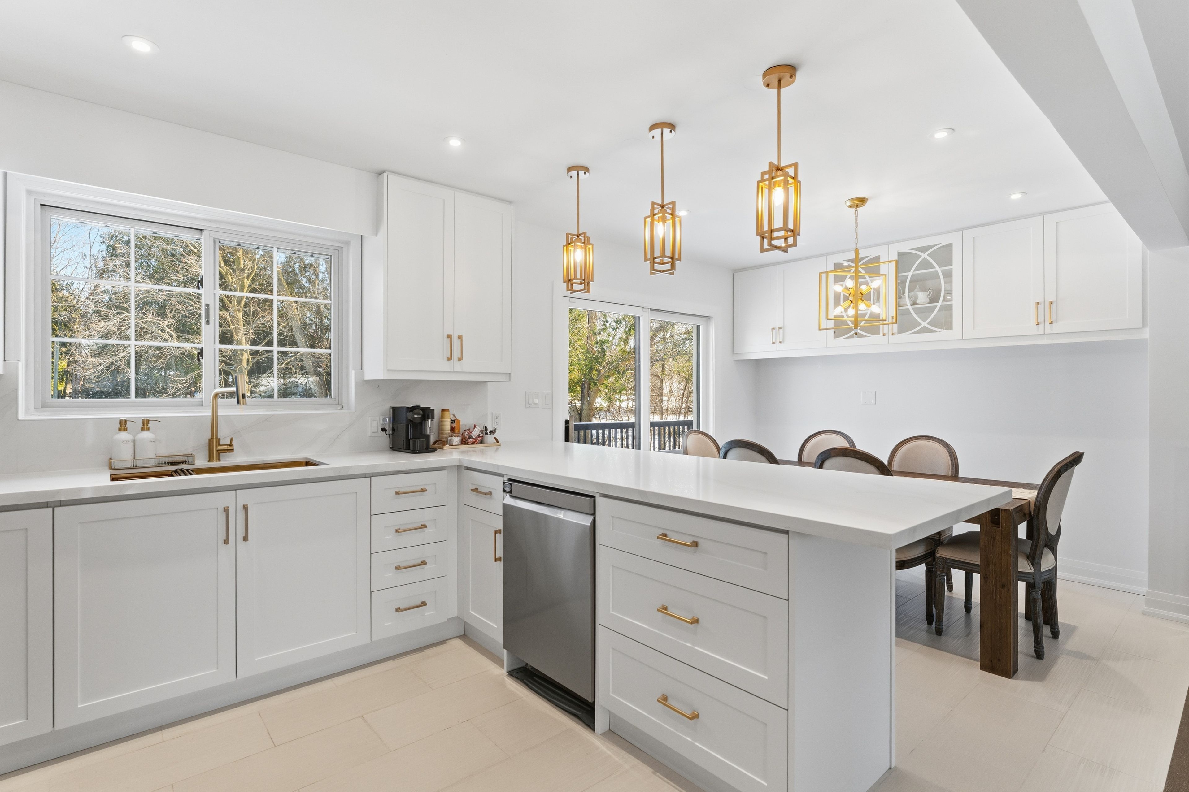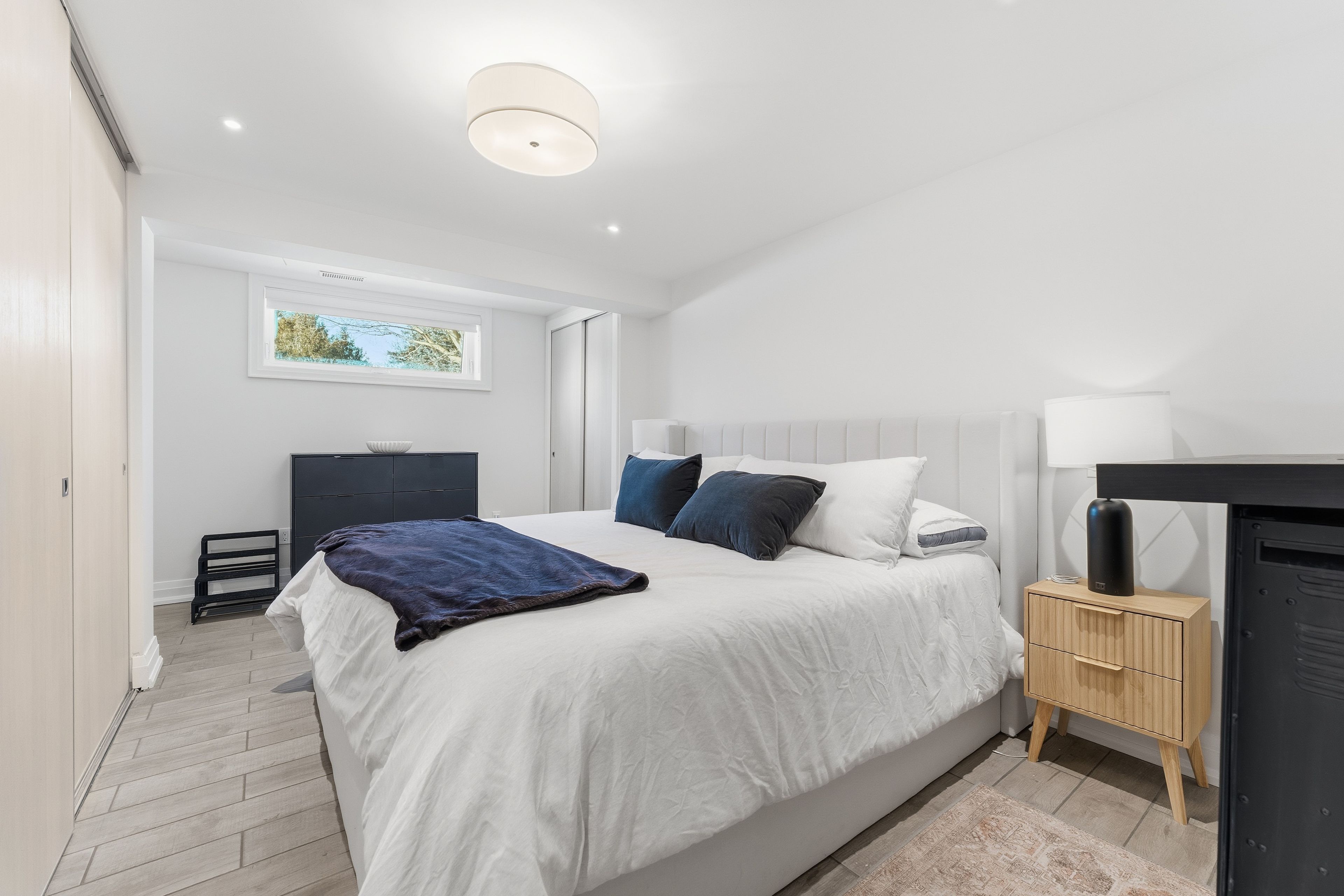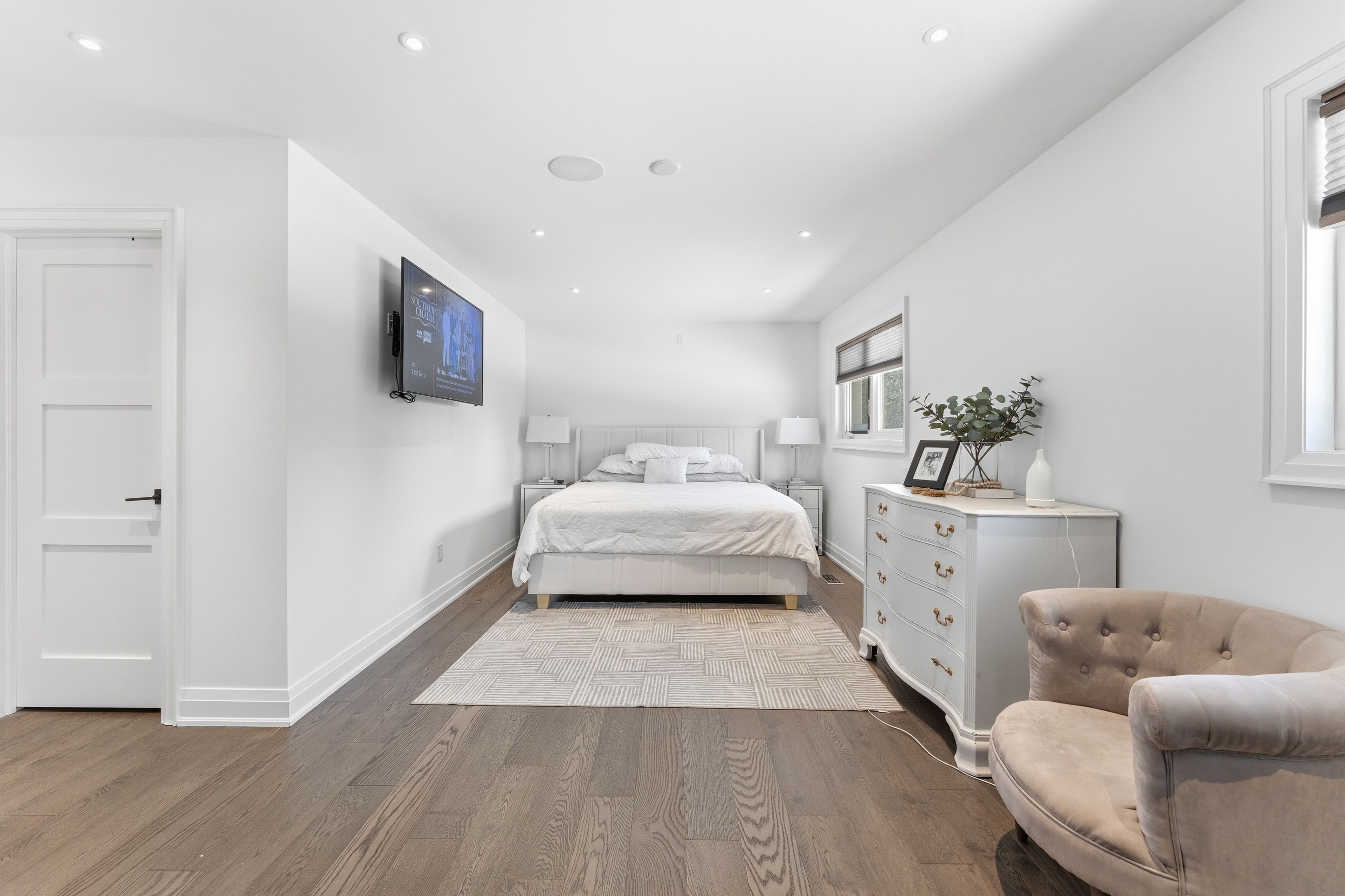 Beautifully updated from top to bottom, this impressive home sits on an expansive lot in the highly sought-after pottageville community with quick access to hwy 400. Enjoy the perfect blend of tranquility and functionality-an ideal live/work environment in a serene setting. The main floor features open-concept living finished with premium craftsmanship throughout. Two spacious primary bedrooms each offer spa-like ensuite bathrooms, walk-in closets with custom organizers, and built-ins. A third bedroom is located on the lower level, also complete with built-ins. The home includes two gourmet kitchens and a bright look-out basement with large windows that flood the space with natural light.