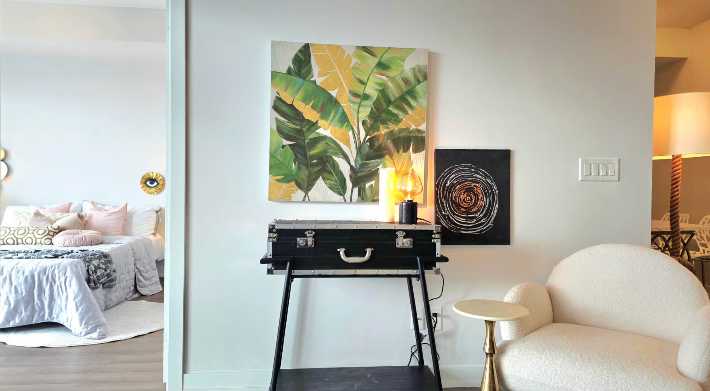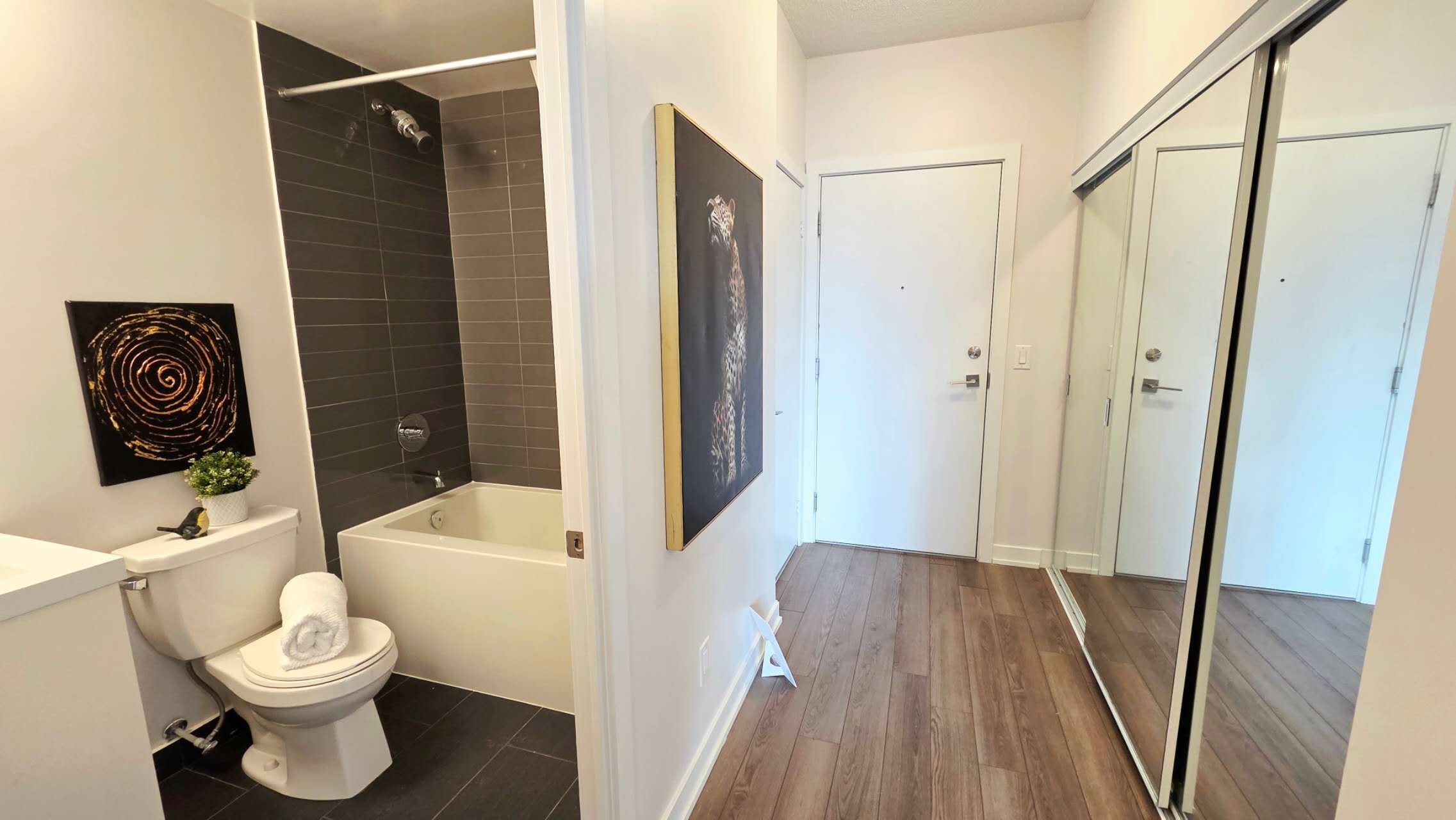 • Spacious one bedroom plus den suite with high ceilings and laminate flooring.