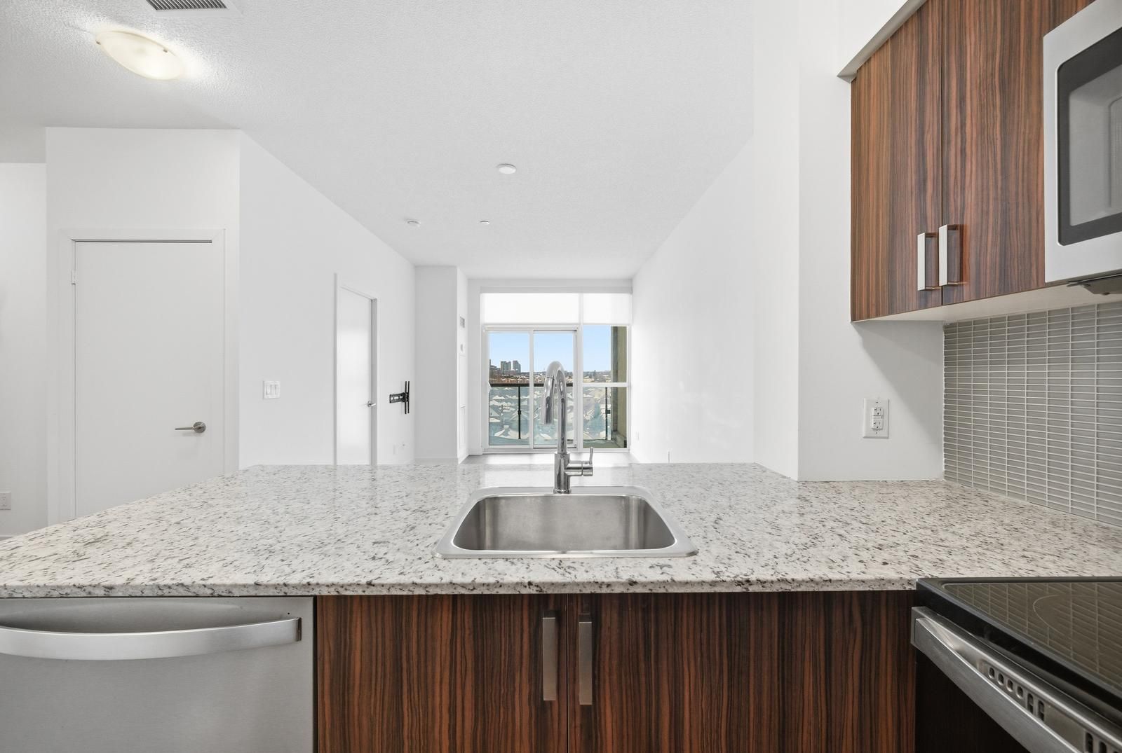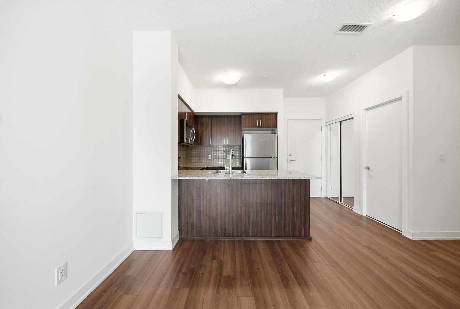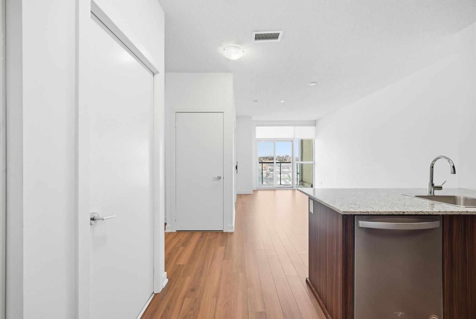 Welcome to the empire midtown condos! Steps from eglinton west subway and the future oakwood lrt station, this 6th-floor suite features a private balcony, 9' ceilings, full-height double-glazed windows with blinds, in-suite laundry, and granite countertops with stainless steel appliances (fridge, stove, microwave, dishwasher0> 1 underground parking spot included. Building amenities: 24-hr concierge, party lounge, roof top terrance with bbqs, fitness &yoga rooms, 2 guest suites, pet wash, and bicycle repair room.