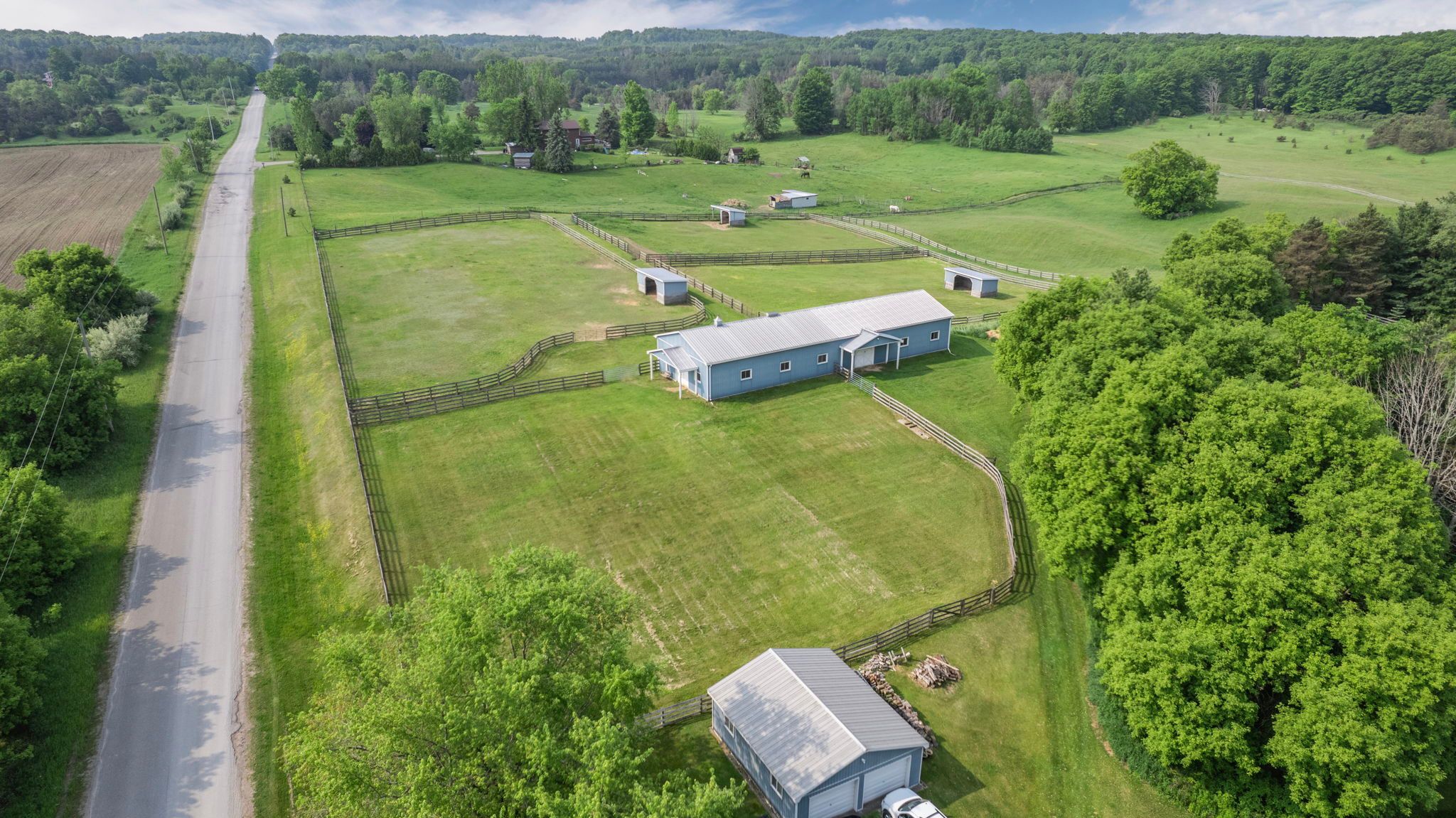 Welcome to 22. 97 acres of country paradise in south adjala! This exceptional hobby or horse farm offers the ultimate blend of rural charm and modern convenience, perfectly situated on a paved road just minutes to hwy 9 and the vibrant town of tottenham with its shops, dining, and everyday essentials. Originally built in 1900, the character-filled century home radiates warmth with original wide plank floors, natural light streaming through every window, and breathtaking views across open pasture and rolling fields. The expansive kitchen is the heart of the home open to the living room and warmed by a cozy natural gas fireplace, its ideal for gathering and entertaining. Enjoy peaceful mornings on the covered front porch or unwind on the large back deck overlooking green paddocks and grazing horses. The detached oversized 2-car garage offers flexibility for vehicle storage, a workshop, or additional space for your hobbies. Equestrians will love the thoughtfully designed insulated barn featuring 7 spacious stalls with water, electric, fans, and an attached storage area for hay and equipment. The property is fully equipped with 7 paddocks, 3 run-in sheds, a round pen, and double oak board fencing, making it move-in ready for your horses or livestock. Additional highlights include a steel roof for peace of mind, fibre internet for seamless connectivity, and approximately 10 acres of productive hay. Whether you're dreaming of farm-to-table living, a private country retreat, or a place to build your equestrian dreams, this is the one. Rarely does a property check so many boxes location, land, infrastructure, and timeless charm. Don't miss this incredible opportunity to own a scenic, turn-key farmstead in a sought-after south adjala location!