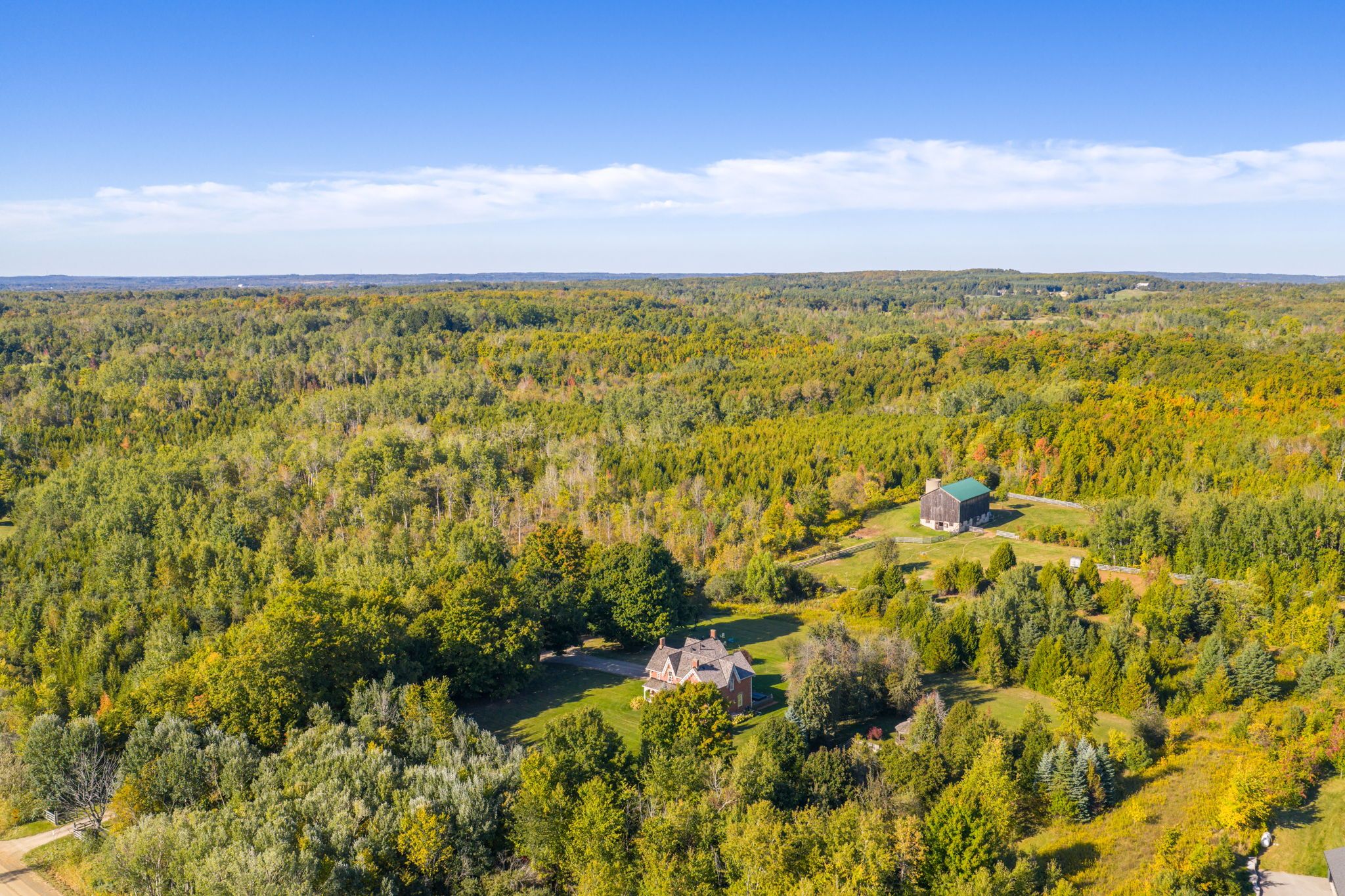 Stunning restored victorian farmhouse on 57 private acres with barn & trails originally built in 1860 by the mceachern family, this grand victorian farmhouse has been beautifully restored, blending timeless craftsmanship with modern comfort. Privately set on 57acres, this rare country retreat features high ceilings, original stonework, hardwood and tile flooring, and countless preserved architectural details including limestone windowsills, gingerbread trim, and a dramatic spiral wood staircase. The spacious 3-bedroom home features an updated open-concept kitchen that flows seamlessly into a large dining area ideal for family gatherings and entertaining. The sun-filled living room is accented with original plaster crown molding and oversized windows that frame views of the garden. The luxurious primary suite offers a spa-like ensuite bath and a huge walk-in closet. Nearly every window offers a postcard-worthy view whether overlooking the historic stone ice house(which could serve as a studio or workshop), the mennonite-restored bank barn, the fenced paddocks, vegetable gardens, or open meadows. Equestrian-ready, the bank barn features 5 stalls, a wash stall, tack room, and spacious hayloft. There's also a large heated workshop for hobbies or home business use. The land is enrolled in a managed forest program for significant tax savings, and private trails invite riding, hiking, mountain biking, and exploring. Located on a quiet country road just minutes from caledon amenities, near the go train, and within easy commuting distance to the city. Live the country dream with all the comforts of modern living and the beauty of historic charm.
