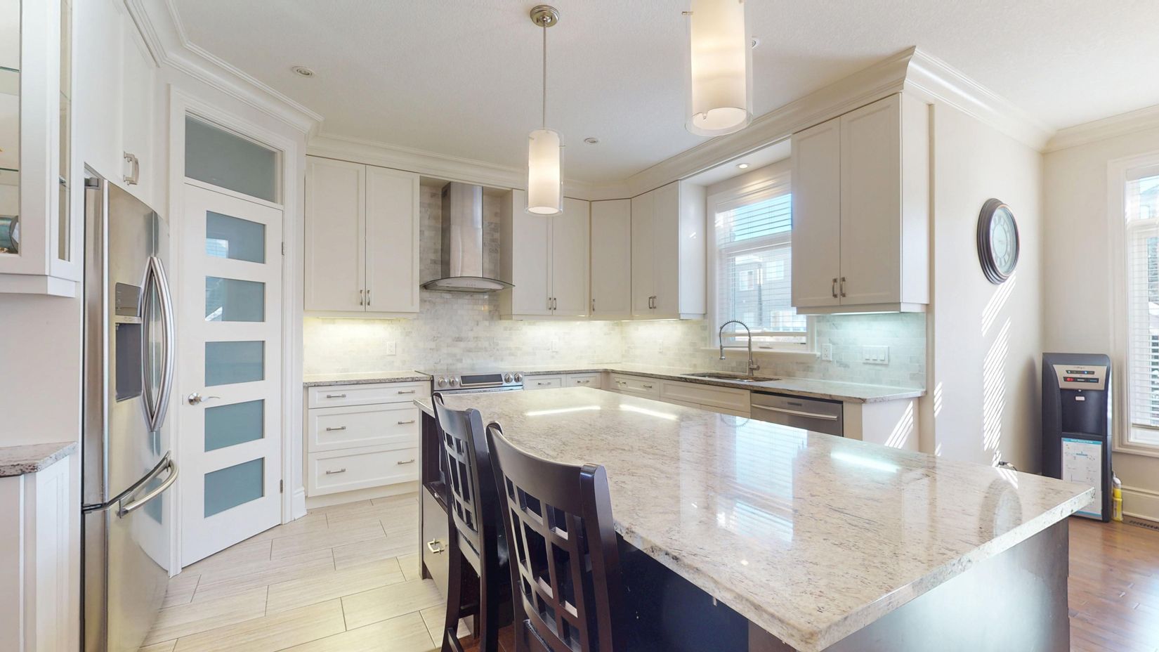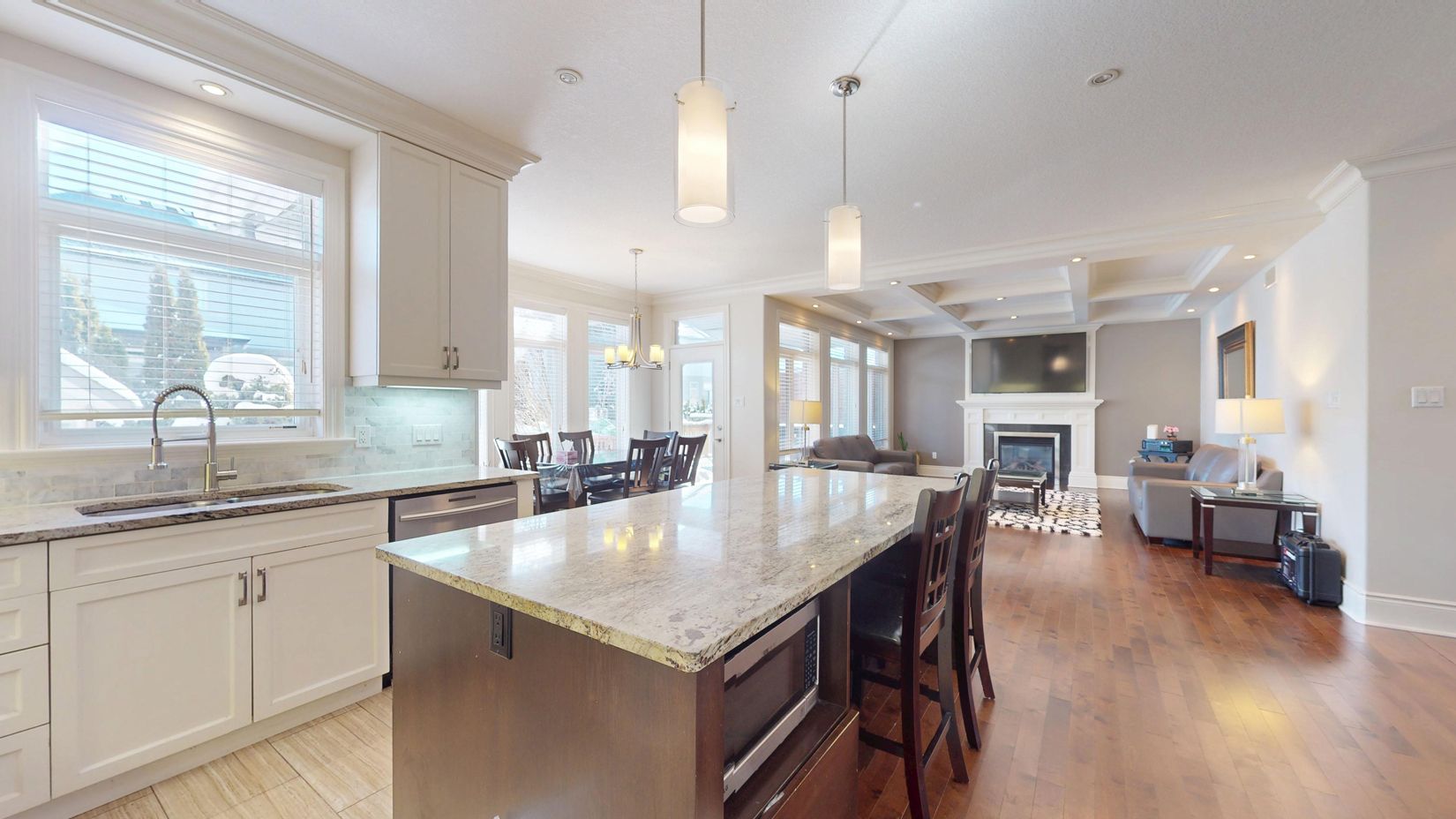 • Open concept kitchen featuring granite countertops and ample cabinet space.