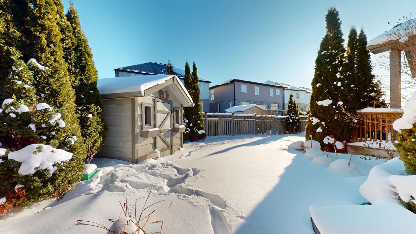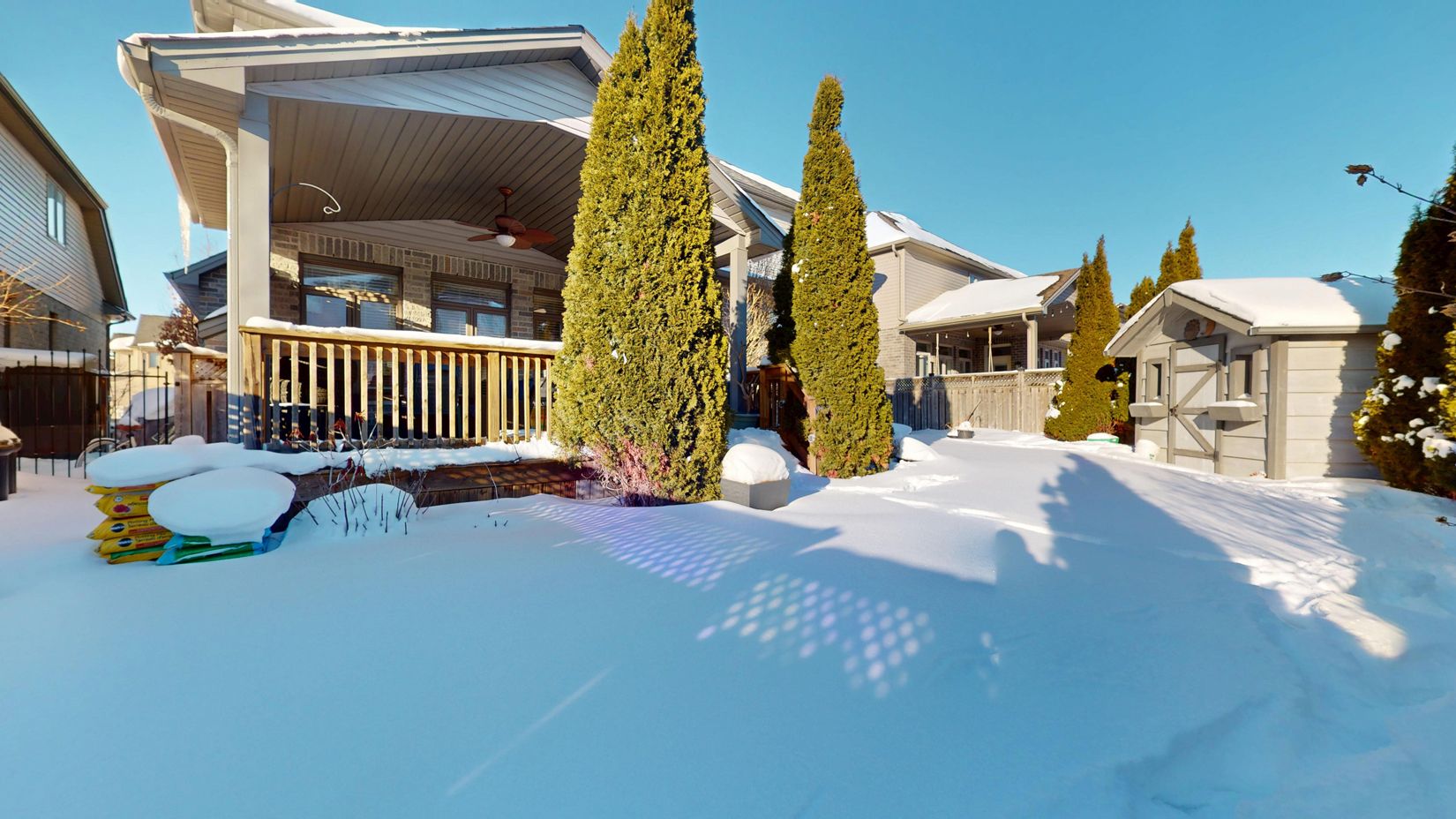 • Fully fenced yard with landscaping, a covered patio, and a shed.