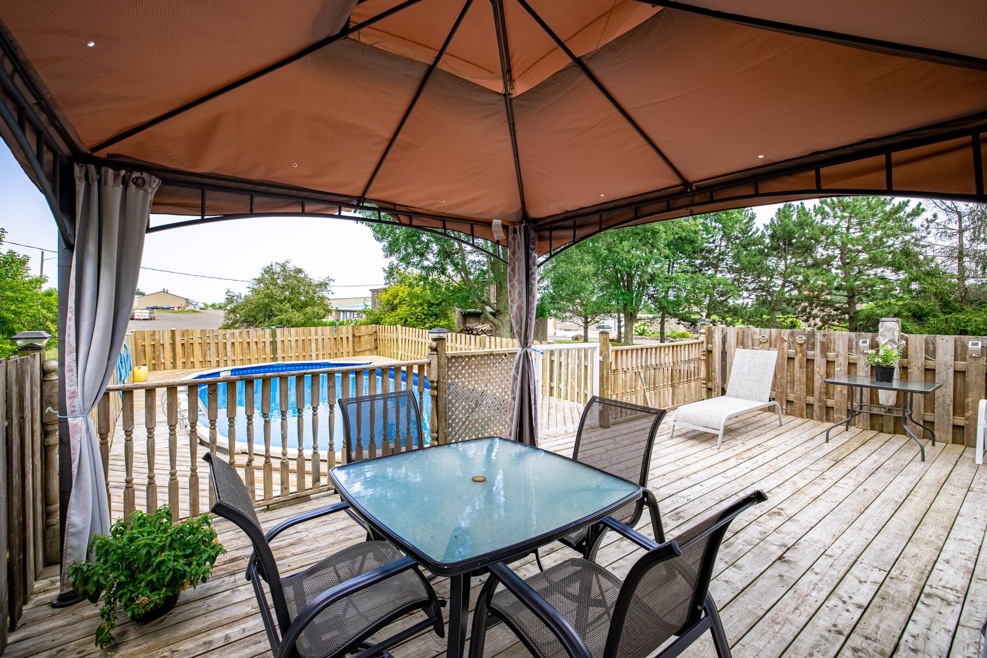 • Inviting backyard deck with gazebo and above-ground pool for summer enjoyment.