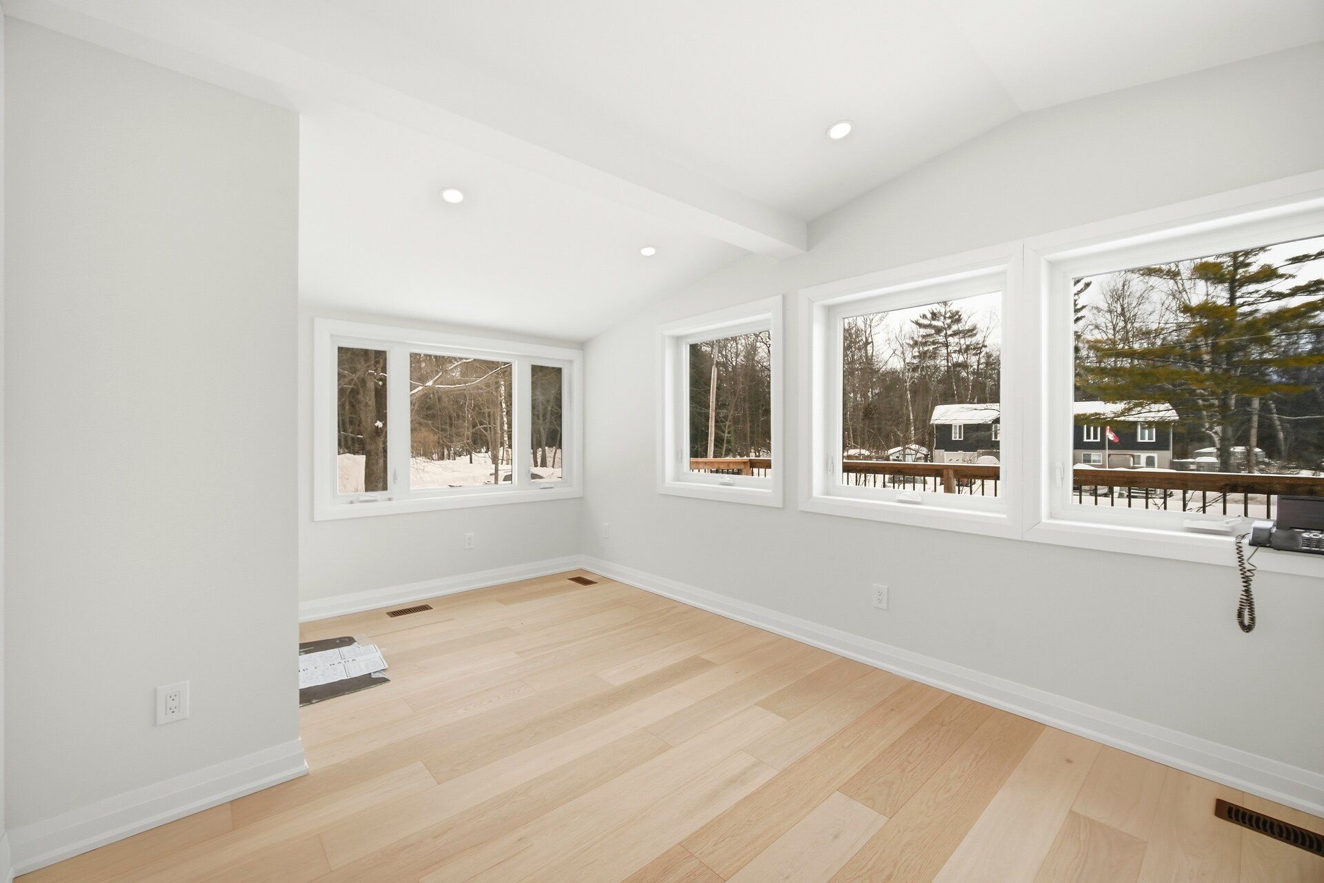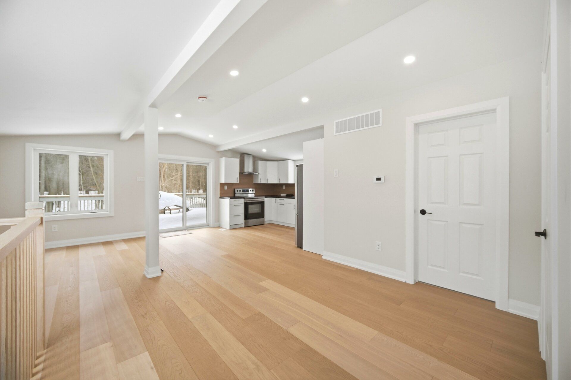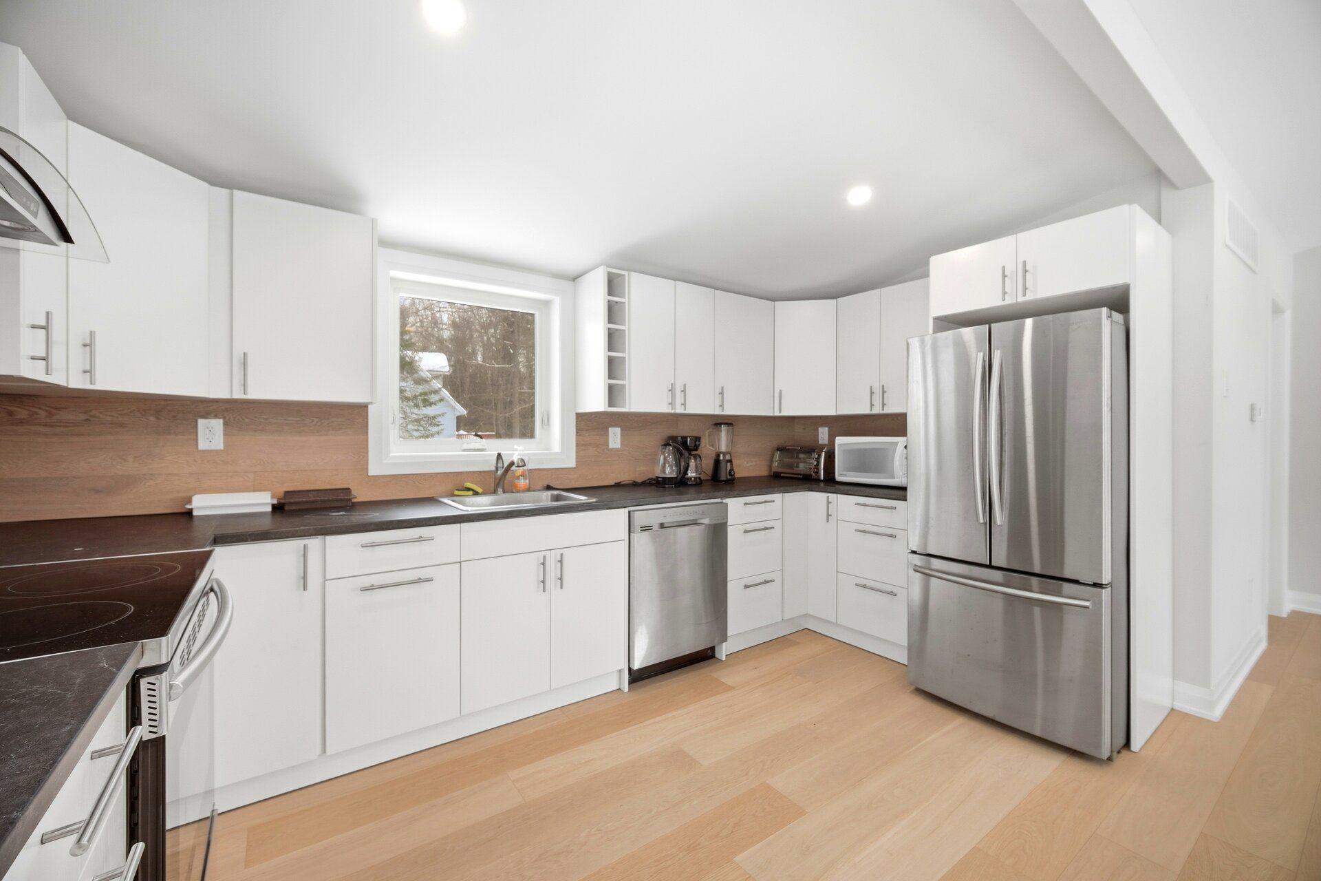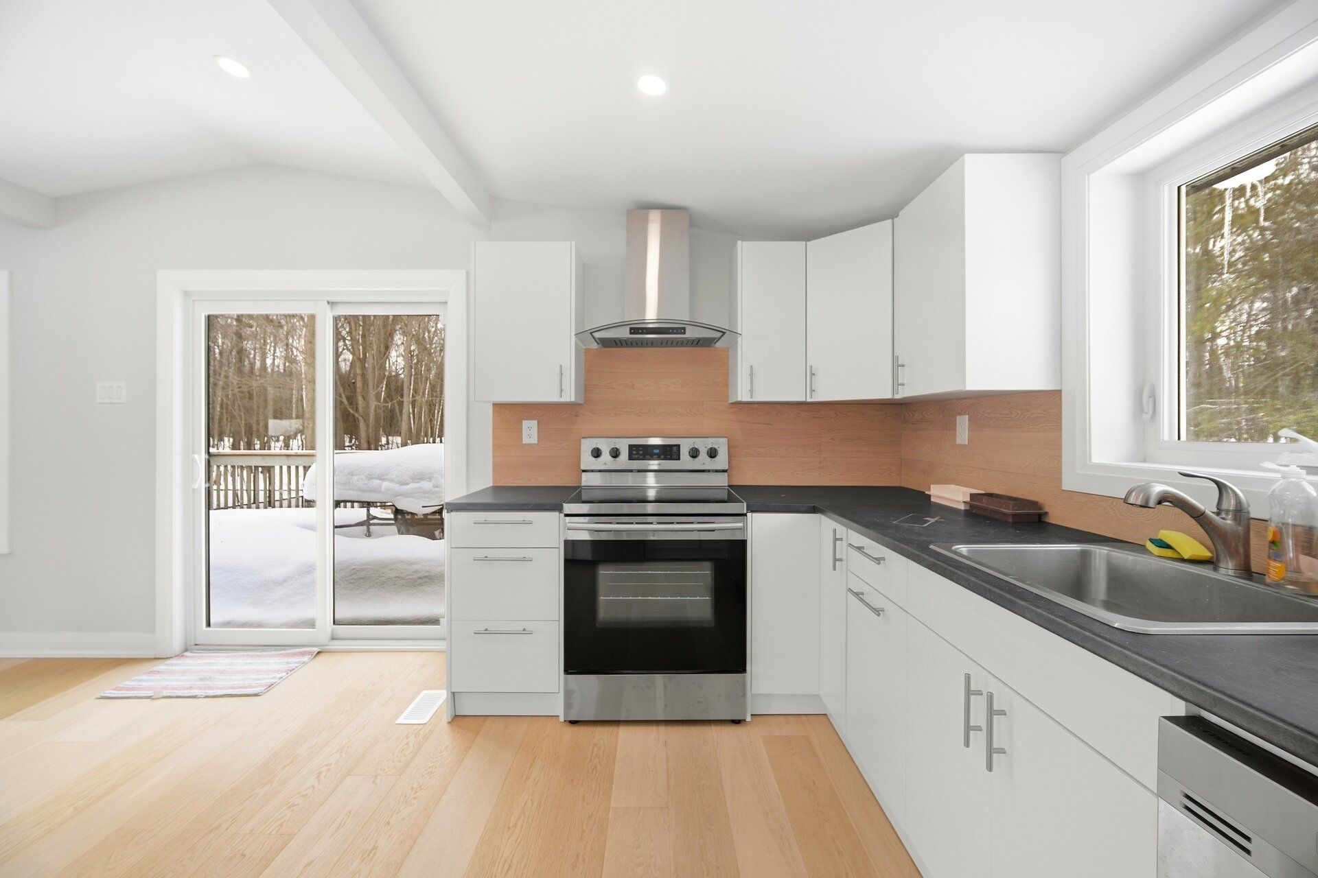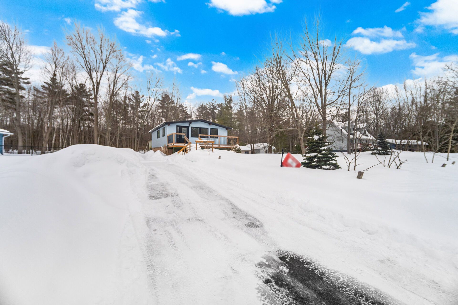 • Large rear deck offering peaceful views of trees and nature.
