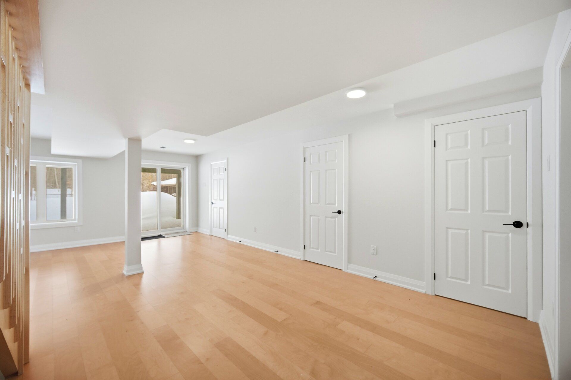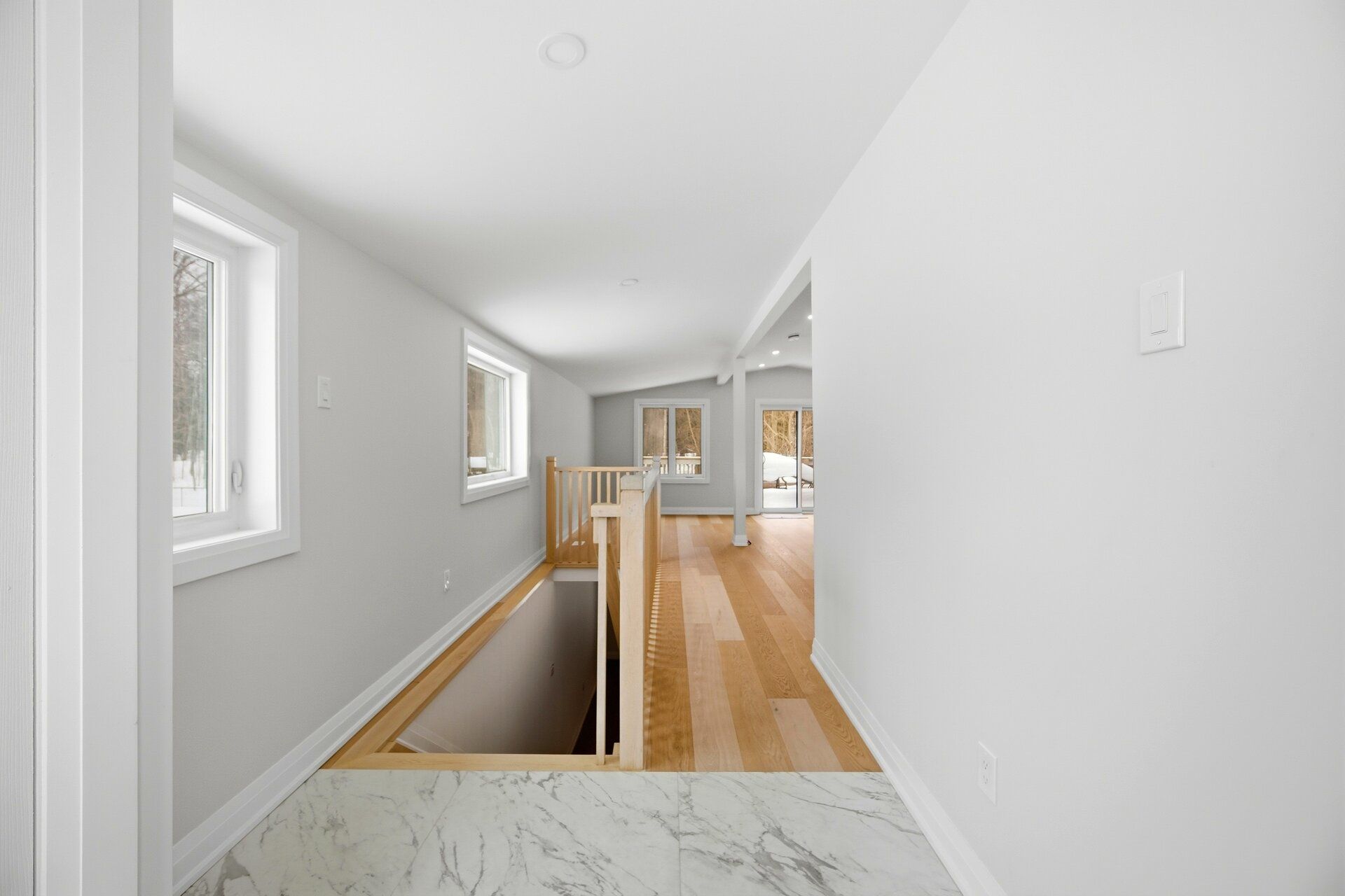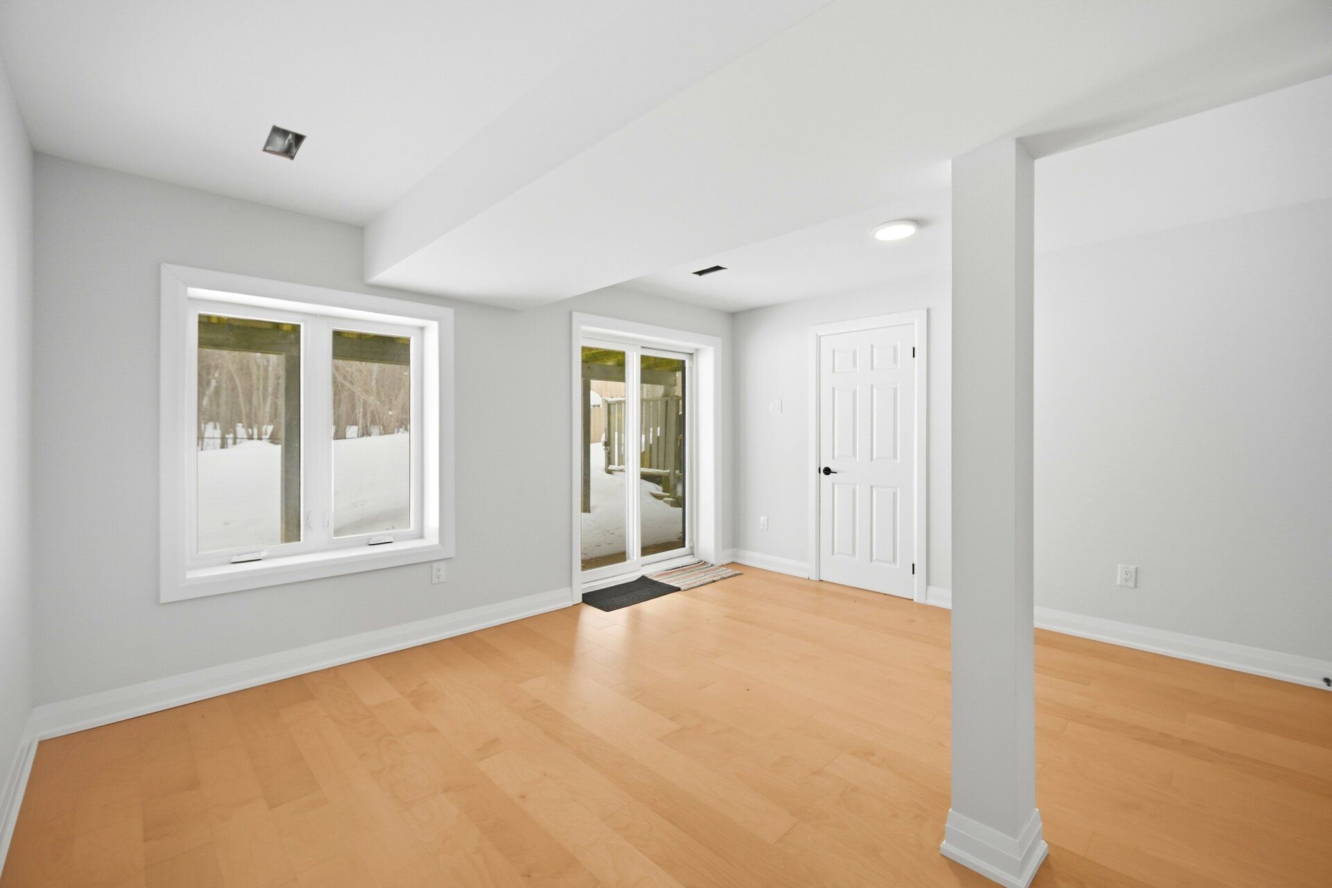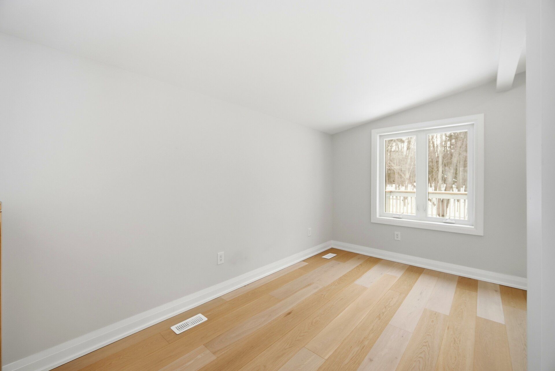 • Large rear deck offering peaceful views of trees and nature.