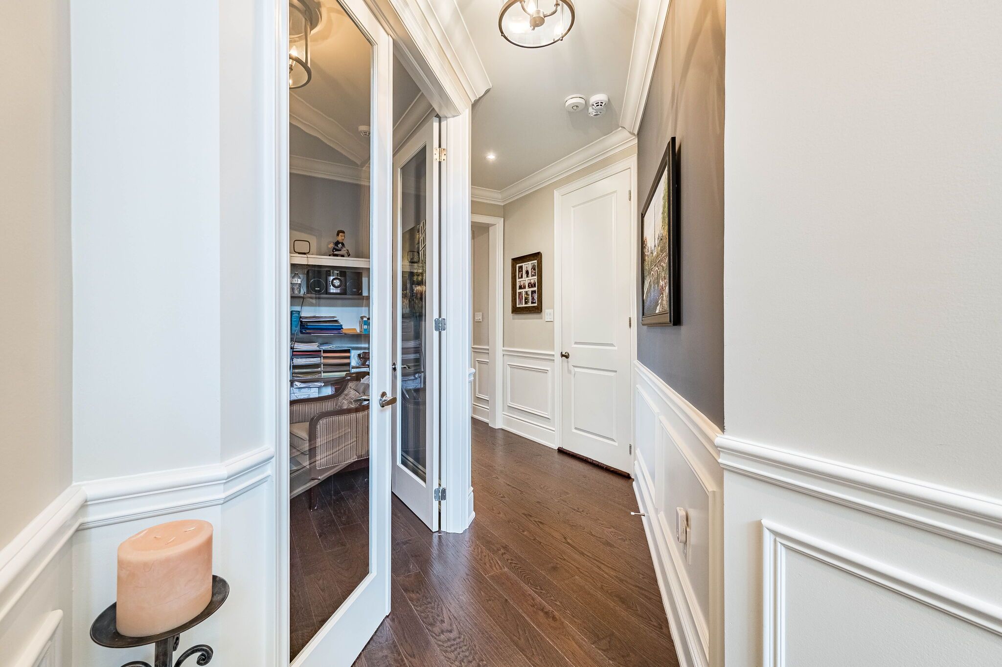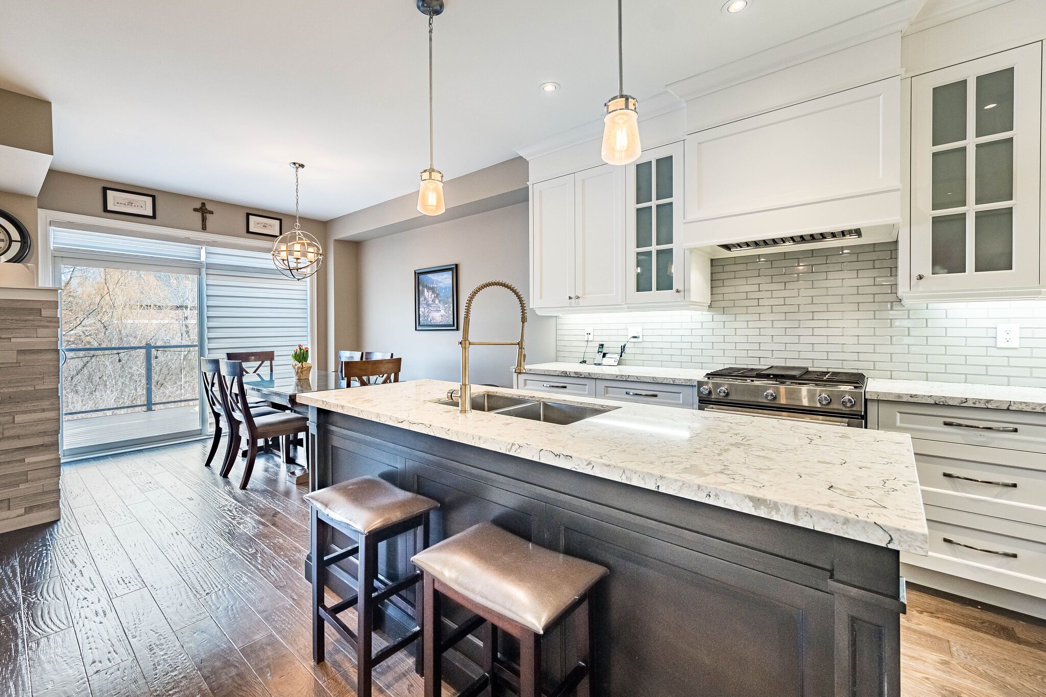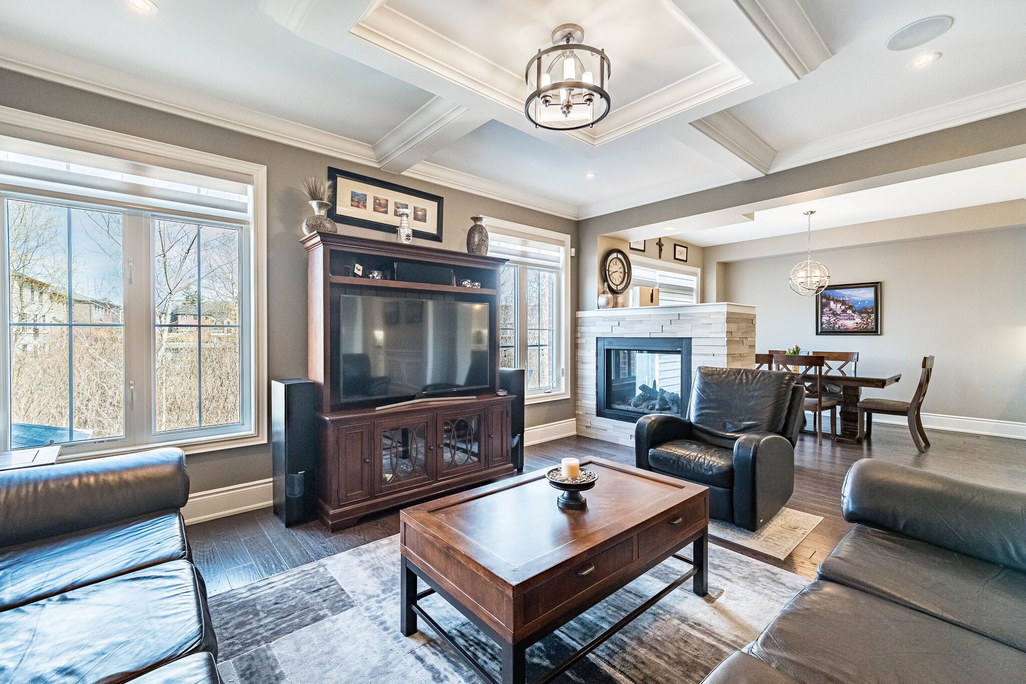 • Elegant main floor with natural light and a double-sided fireplace.