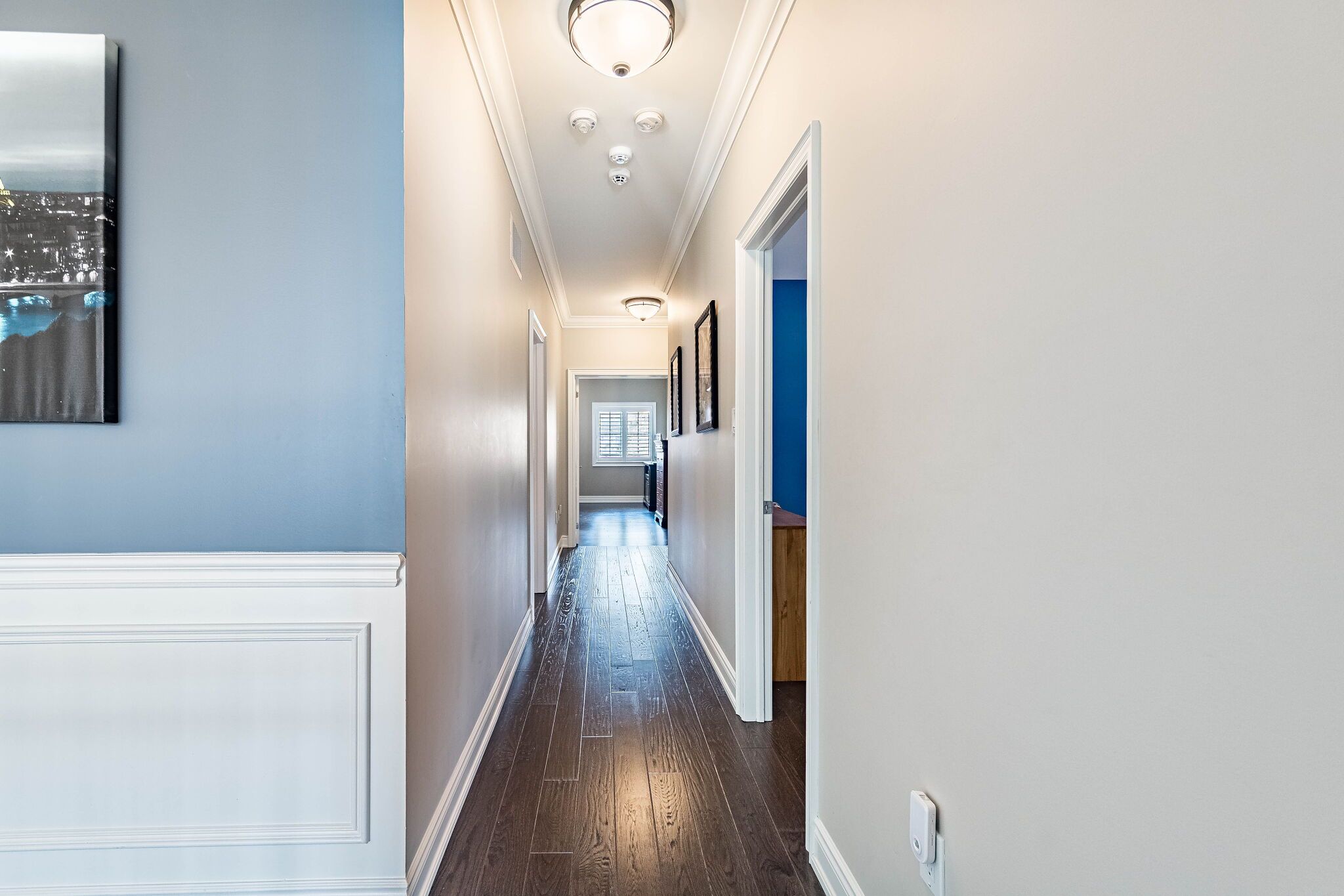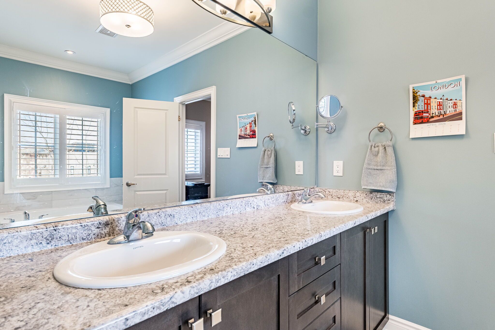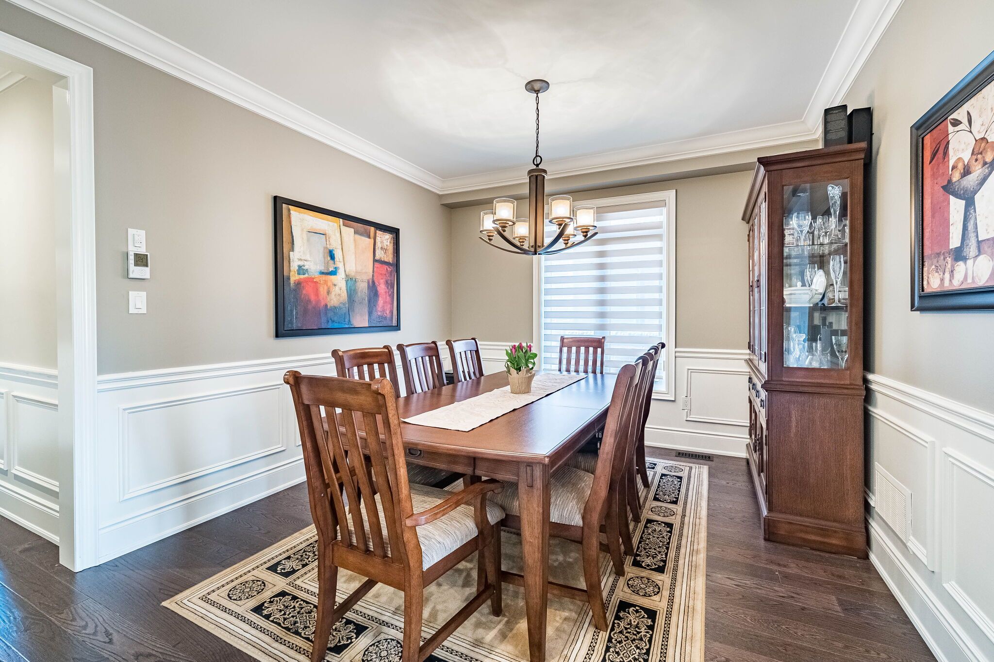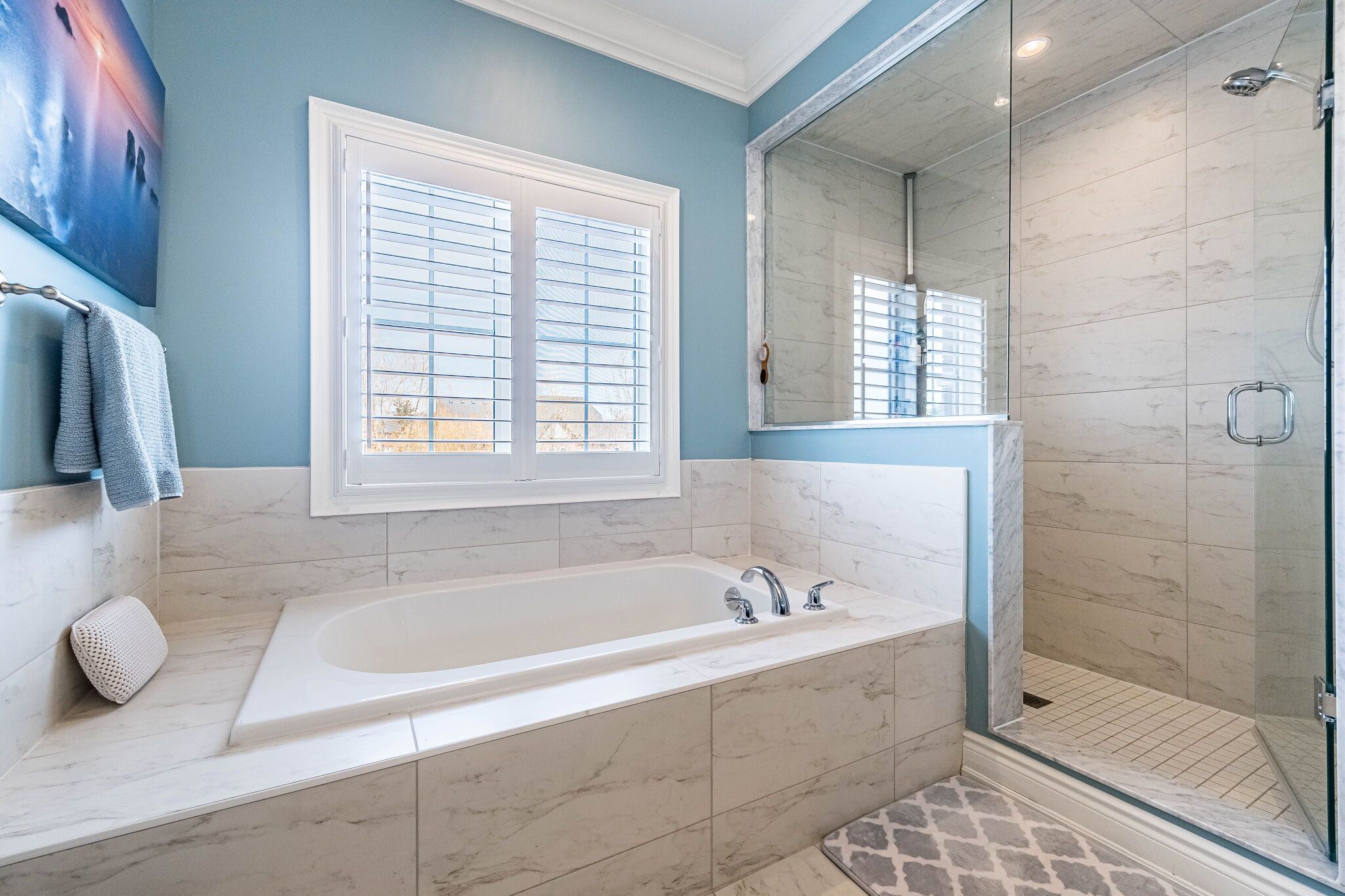 • Elegant main floor with natural light and a double-sided fireplace.