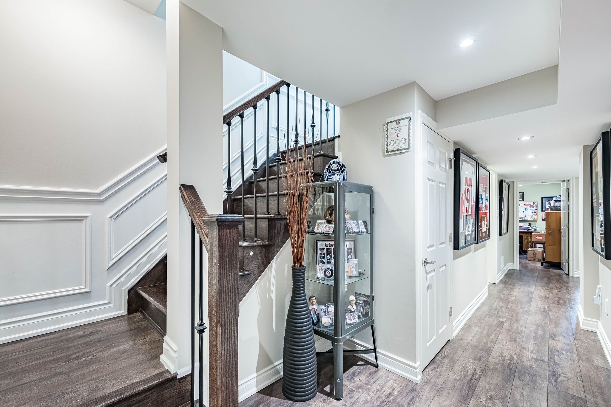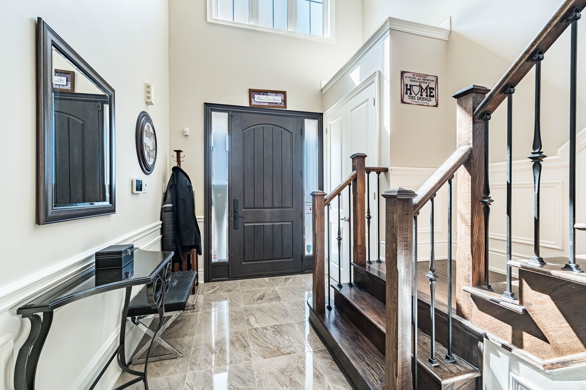 • Grand foyer with porcelain tile and oak staircase creates a stunning entry.