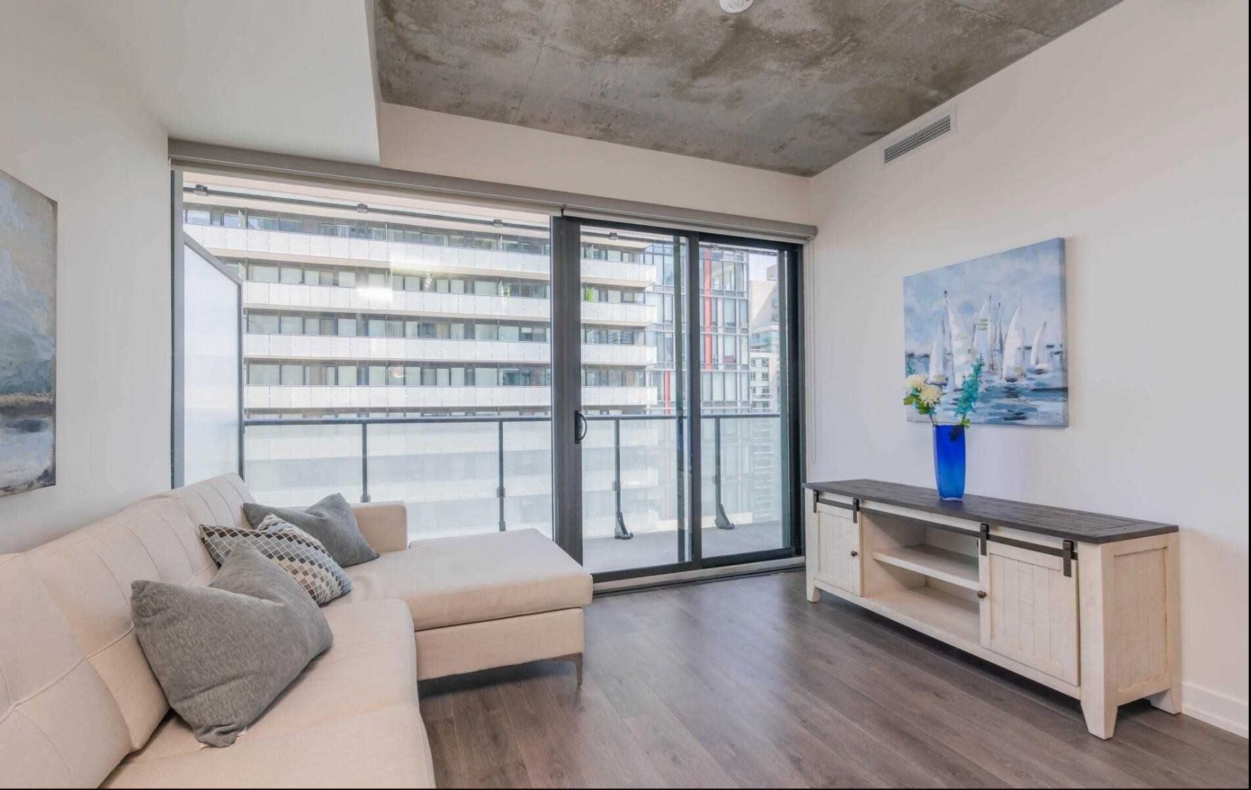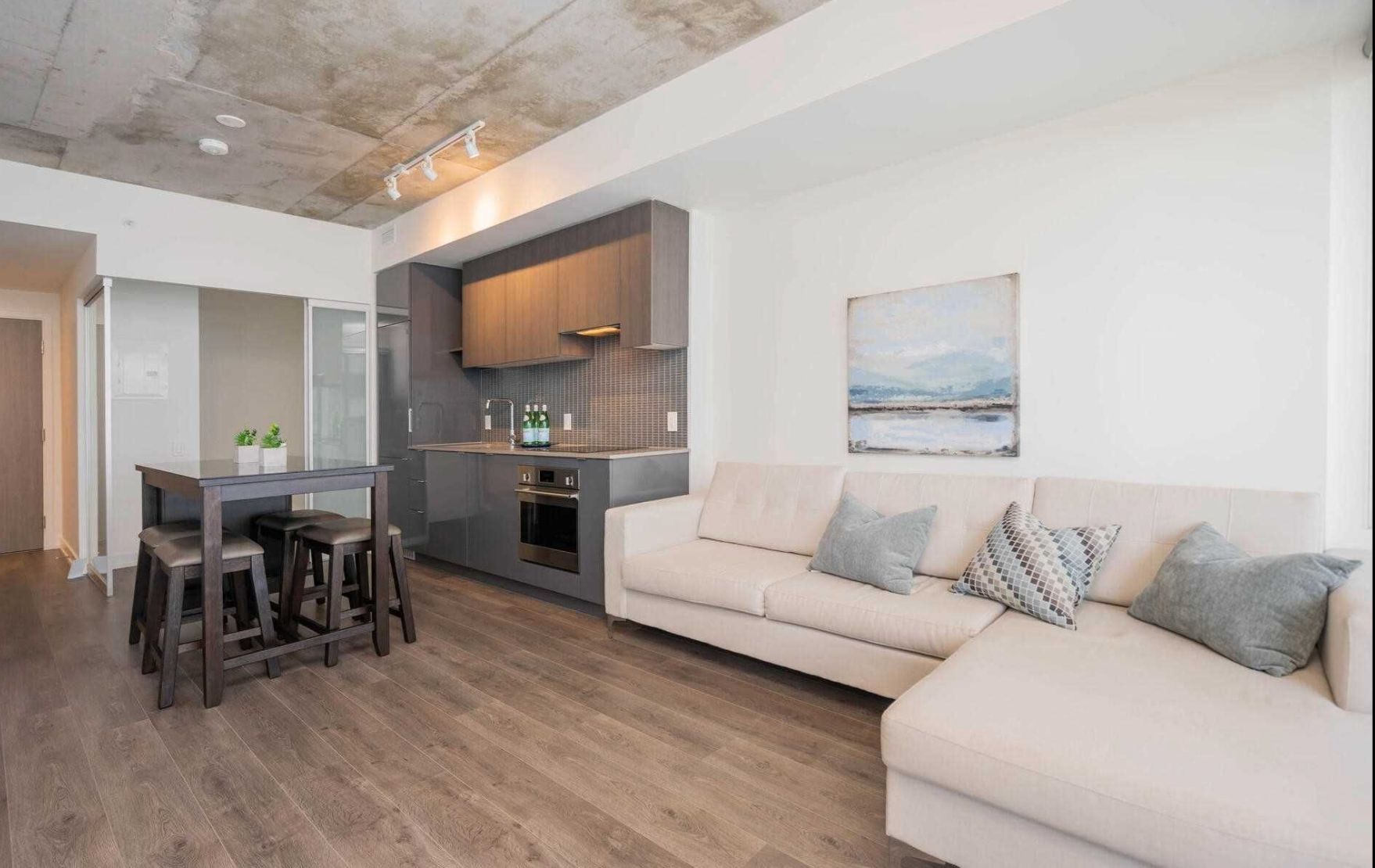 Furnished stunning 2bedroom plus 2washrooms with a total of 830 sqft of living space ( 714 sqft interior + 116 sqft balcony) and breathtaking views of the city and lake. Featuring 9ft smooth ceilings and extra-long balcony, this suite is the perfect blend of style and comfort. Premium finishes include quartz countertops, integrated appliances, a cooktop stove, and wide-plank laminate flooring. Custom roller shades provide privacy and elegance. One parking spot included located steps to transit, subway, shops, cinemas, schools, parks, and restaurants, this suite offers convenience at your doorstep. Enjoy an amazing view and access to hotel-style amenities including cabanas, and outdoor pool, hot tub, spa, bbq area, gym, and billiard/party room