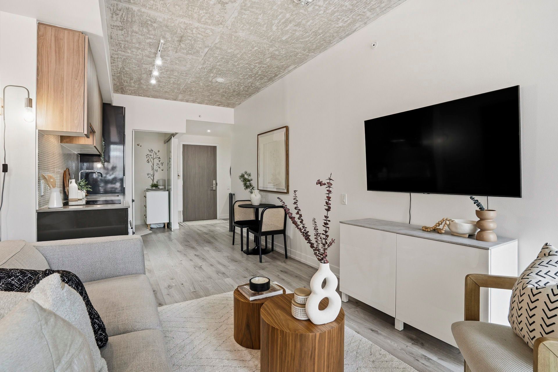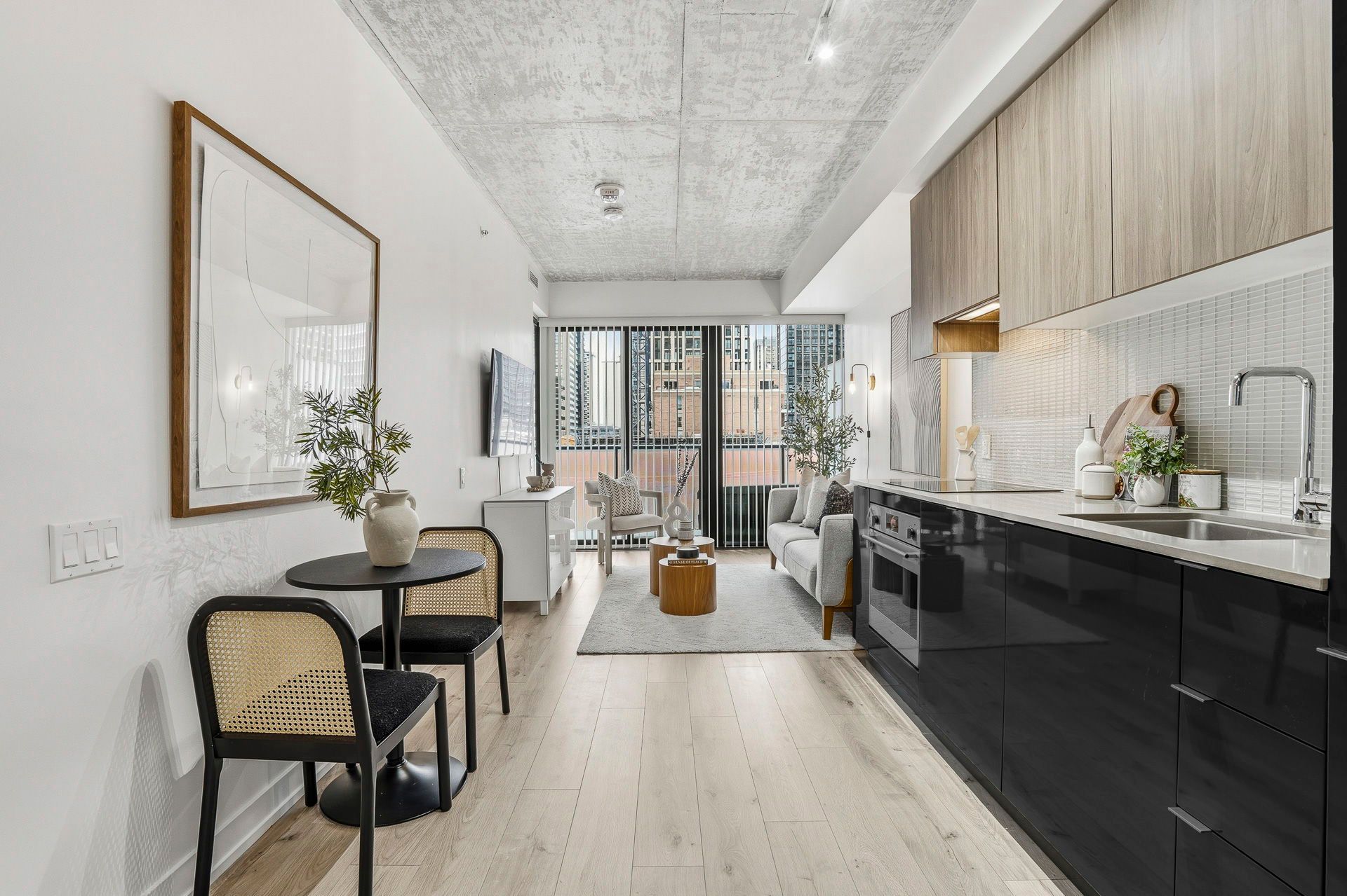 Imagine waking up in the heart of yonge & eglinton - coffee in hand, city energy just outside your door. Welcome to suite 306 at 161 roehampton avenue. Offering 547 sq ft of thoughtfully designed interior living space plus a 91 sq ft private balcony, this loft-inspired suite blends modern sophistication with urban character. Exposed concrete ceilings create that coveted midtown aesthetic, while natural light fills the open-concept living and dining space, giving the home warmth and dimension. The sleek kitchen is outfitted with customized built-in appliances, streamlined cabinetry, and contemporary finishes, ideal for hosting friends before dinner along yonge street or enjoying a quiet night in. One of the most versatile features is the enclosed den with privacy-stained sliding doors. Whether you're working from home, welcoming guests, or creating a nursery, this flexible space adapts to your life as it evolves. The spacious primary bedroom offers generous closet space and connects to a stylish semi-ensuite bath, delivering both function and flow. And then there are the amenities - because living here feels like being on permanent staycation. Start your mornings in the fully equipped fitness centre, unwind in the spa with steam room and therapy room, or take in skyline views from the rooftop terrace with bbqs. In warmer months, relax by the outdoor infinity pool and hot tub. Entertain friends in the residents' lounge featuring a golf simulator, pool tables, and a tv area. Steps to the subway, shops, restaurants, cafés, and everyday essentials, this unbeatable location offers exceptional walkability and seamless transit access - making it highly desirable for professionals and renters alike. For first-time buyers, this is your entry into one of toronto's most vibrant neighbourhood. For end-users, it's turnkey living with premium amenities. For investors, it's a high-demand location with strong rental potential.