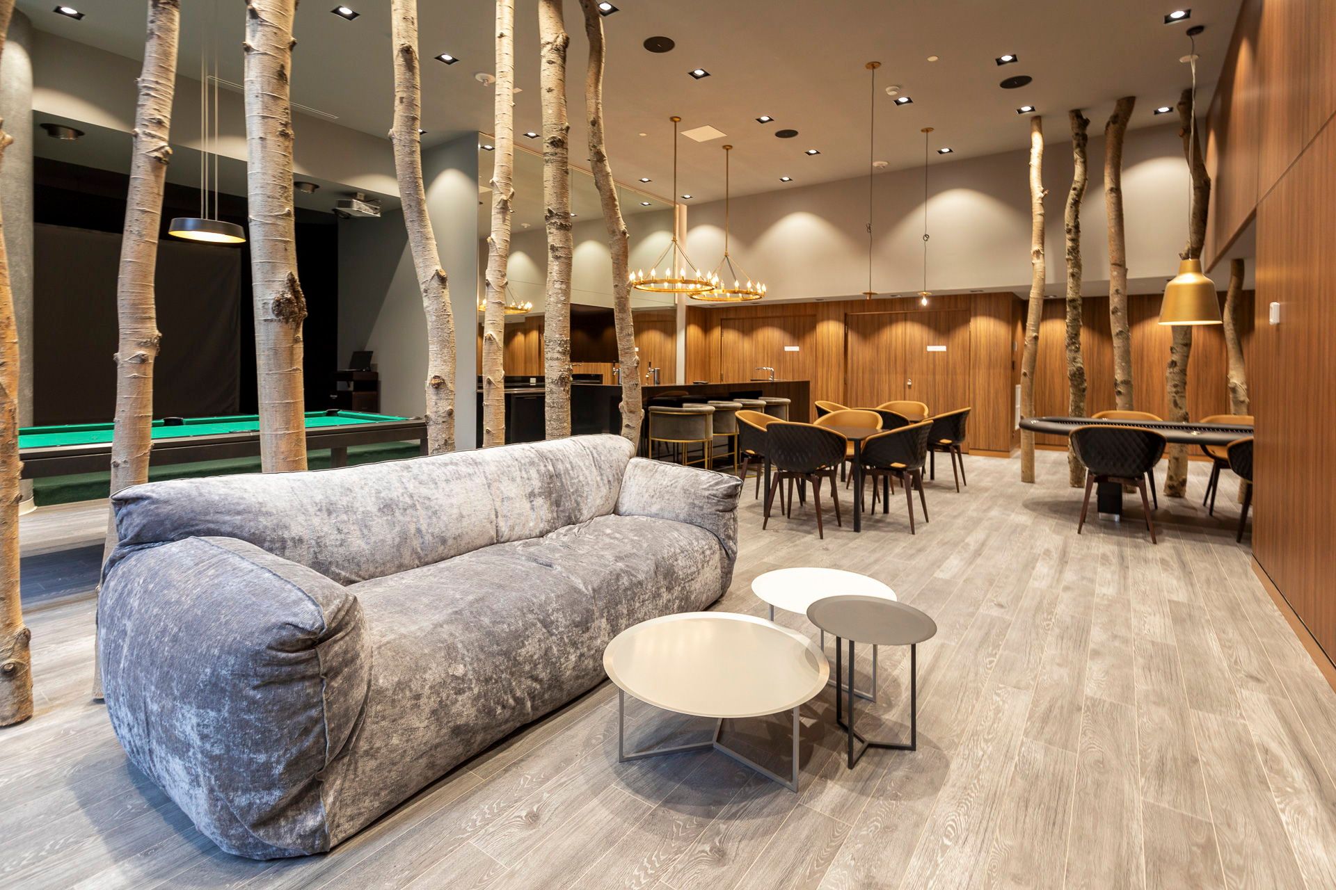 • Building amenities include fitness center, spa, rooftop terrace, and infinity pool.