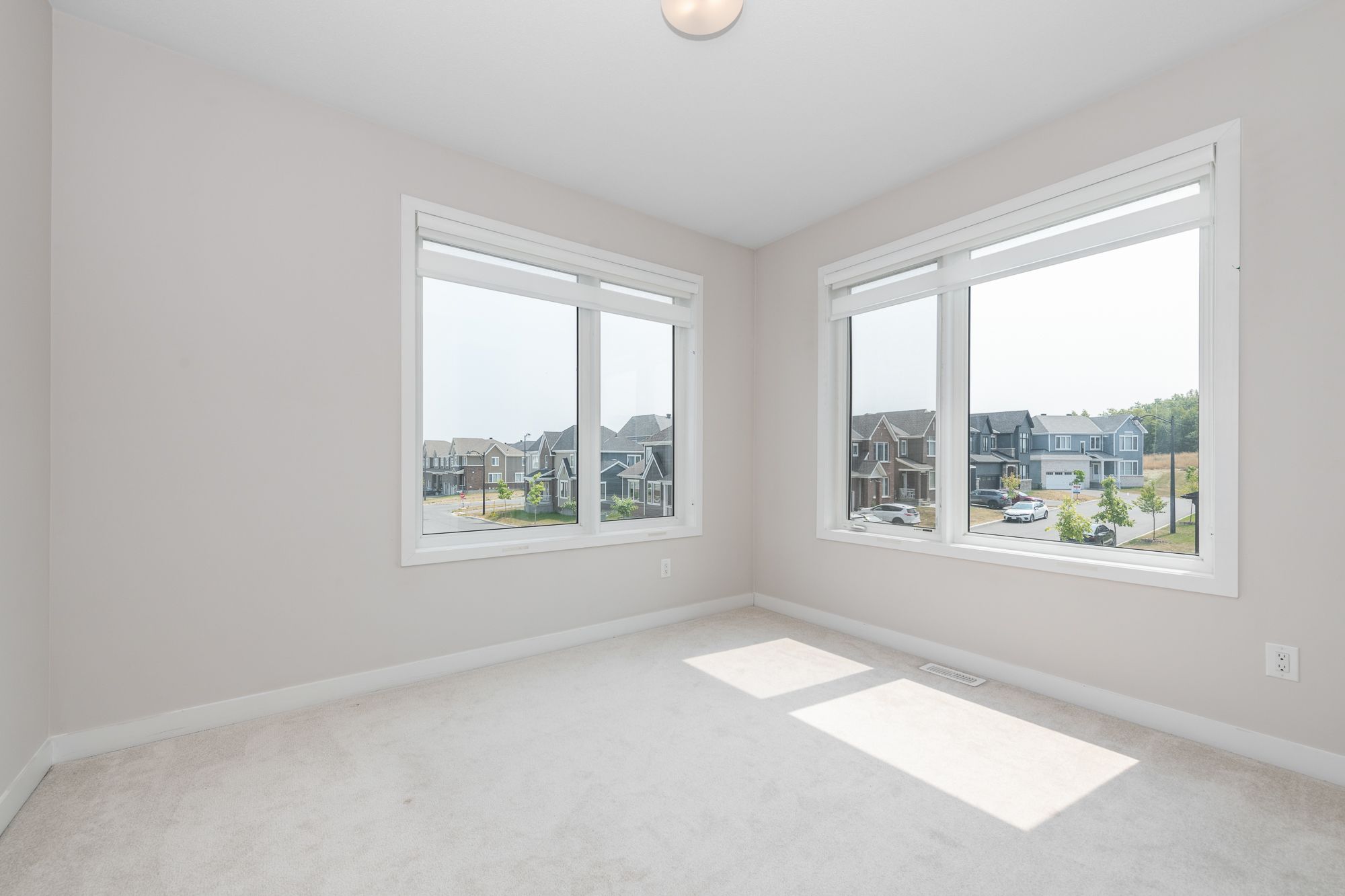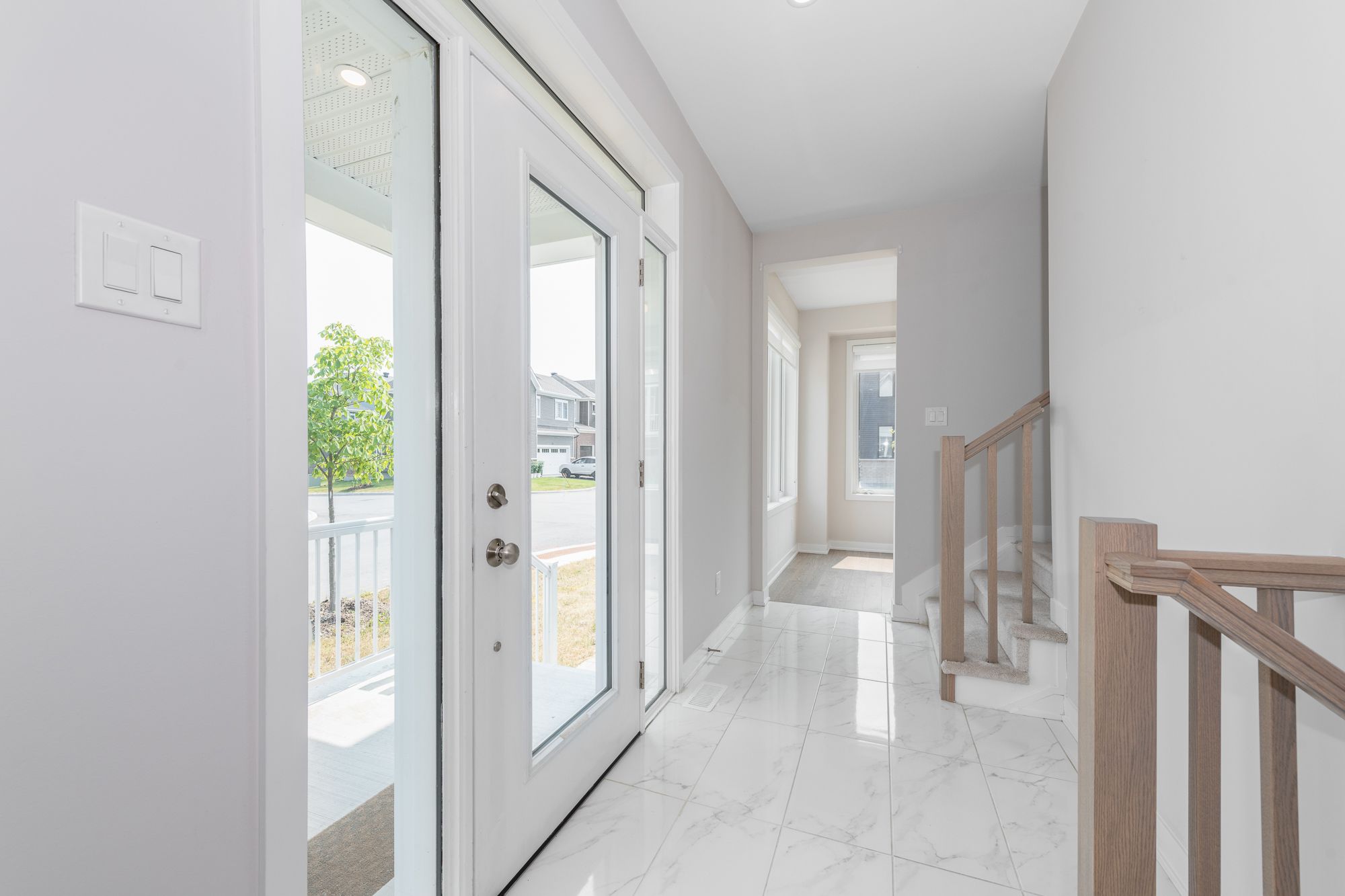 Immerse yourself in this exquisite four-bedroom, four-bathroom detached home nestled on an expansive corner lot in the desirable community of half moon bay, barrhaven. Upon entering the main floor, you will be greeted by a spacious foyer and inviting office or den, seamlessly transitioning into an open concept dining and kitchen area. The living room boasts a linear fireplace and a cathedral ceiling, creating an elegant ambiance. Hardwood floors and smooth ceilings add a touch of sophistication. The chefs kitchen is designed with precision and elegance, featuring quartz countertops, a gas stove, premium stainless steel appliances, an elegant backsplash, two-tone kitchen cabinets, and more. The second floor comprises four generously sized bedrooms, equipped with a walk-in closet's. The primary ensuite bathroom offers a relaxing retreat with ample room for king size bed. Primary ensuite features 60 inch upgraded glass shower and double sink vanity with quartz countertops, while the shared main bathroom provides convenience. The finished recreation room consists of full bathroom and offers ample space for family gatherings, gym or kids toy room or can be transformed into a dedicated fitness area or a media room provides an ideal setting for entertainment. The spacious backyard features an oversized deck, a lookout basement grading, and additional side brick, enhancing the corner lots premium appeal. This exquisite home boasts over $70,000 in comprehensive upgrades, ensuring an unparalleled level of comfort and sophistication.
