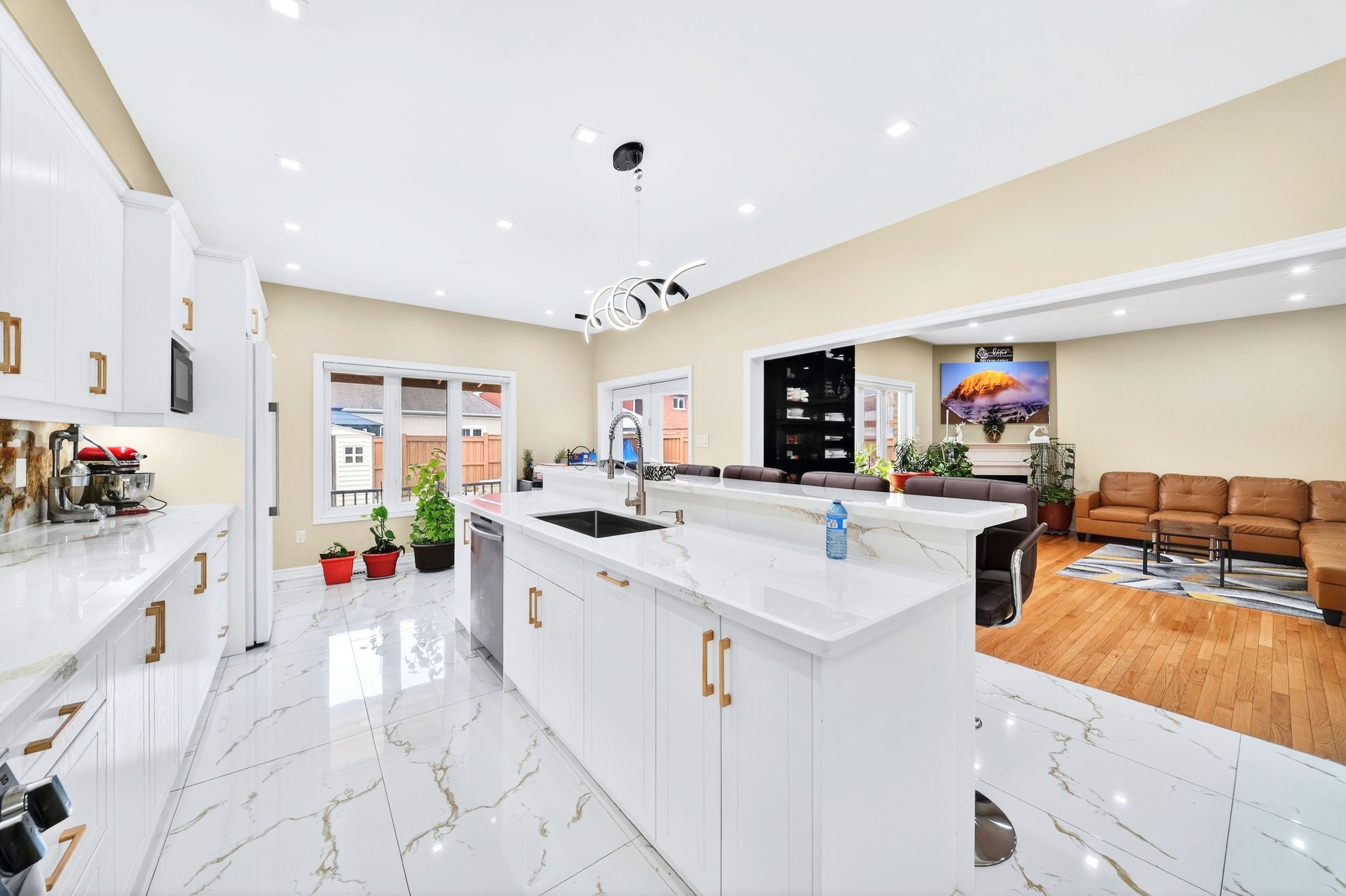 Rare multi-family gem with over 4,000 sq. Ft. Of upgraded living space in a family-friendly new tecumseth neighbourhood! Legal basement ideal for large families or income potential, this home features a brand new 2-bedroom self-contained basement apartment with a separate entrance and a separate laundry. Double-door entry leads to spacious principal rooms with 9-ft ceilings, a main floor office/prayer room, brand new designer kitchen with large island, main floor laundry, 3-pc bath, and garage access. Upstairs offers 3 newly renovated bathrooms, including 2 luxurious primary suites with spa-like en-suites, his-and-her closets, and custom built-ins. Extensive upgrades include interior/exterior pot lights, stone steps/porch, concrete patio, security cameras, new double front door, new garage door, and more. Energy star rated for efficiency. A rare blend of space, style, and income potential!