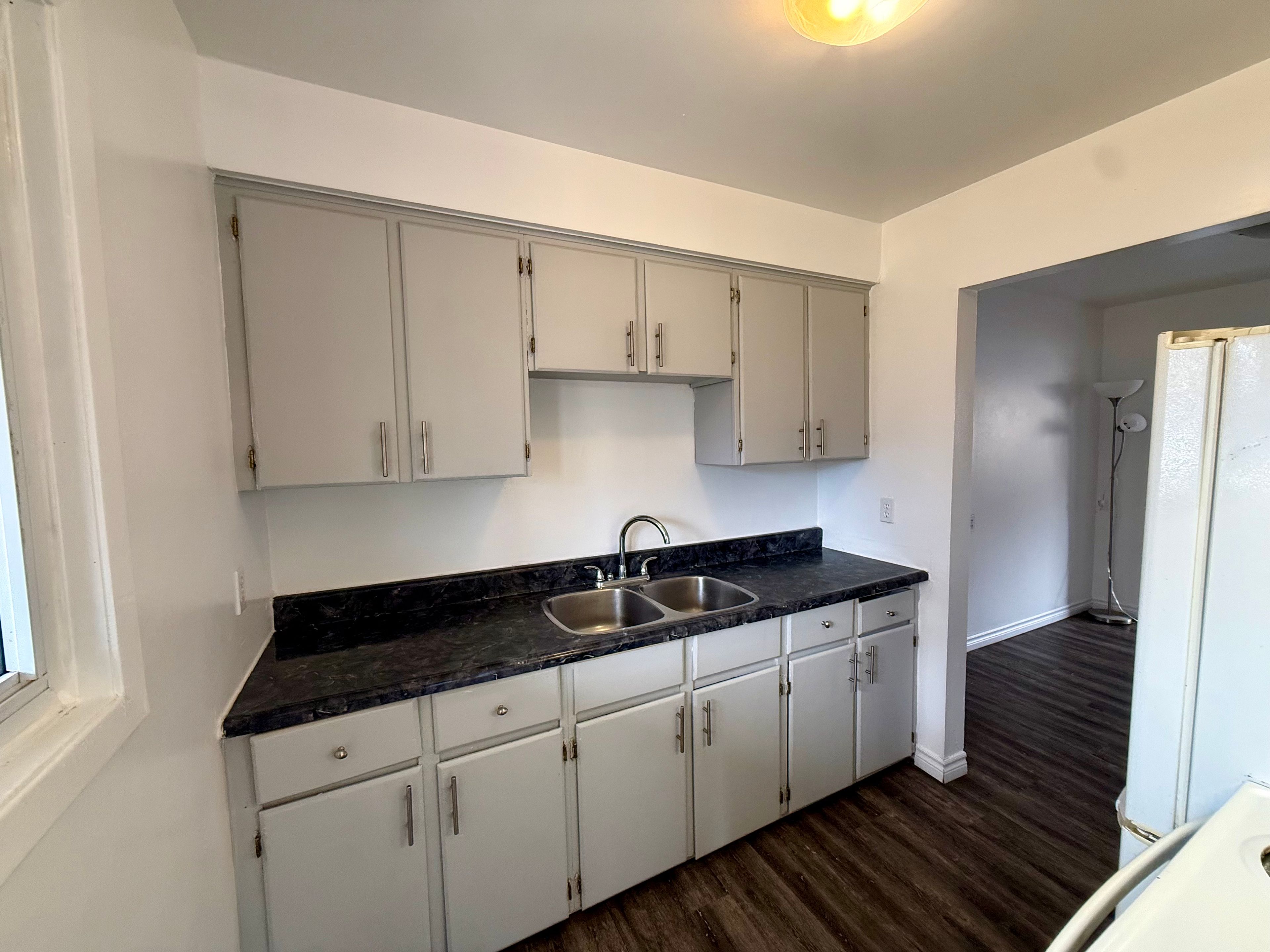 • Includes essential appliances like a refrigerator, stove, and dryer.