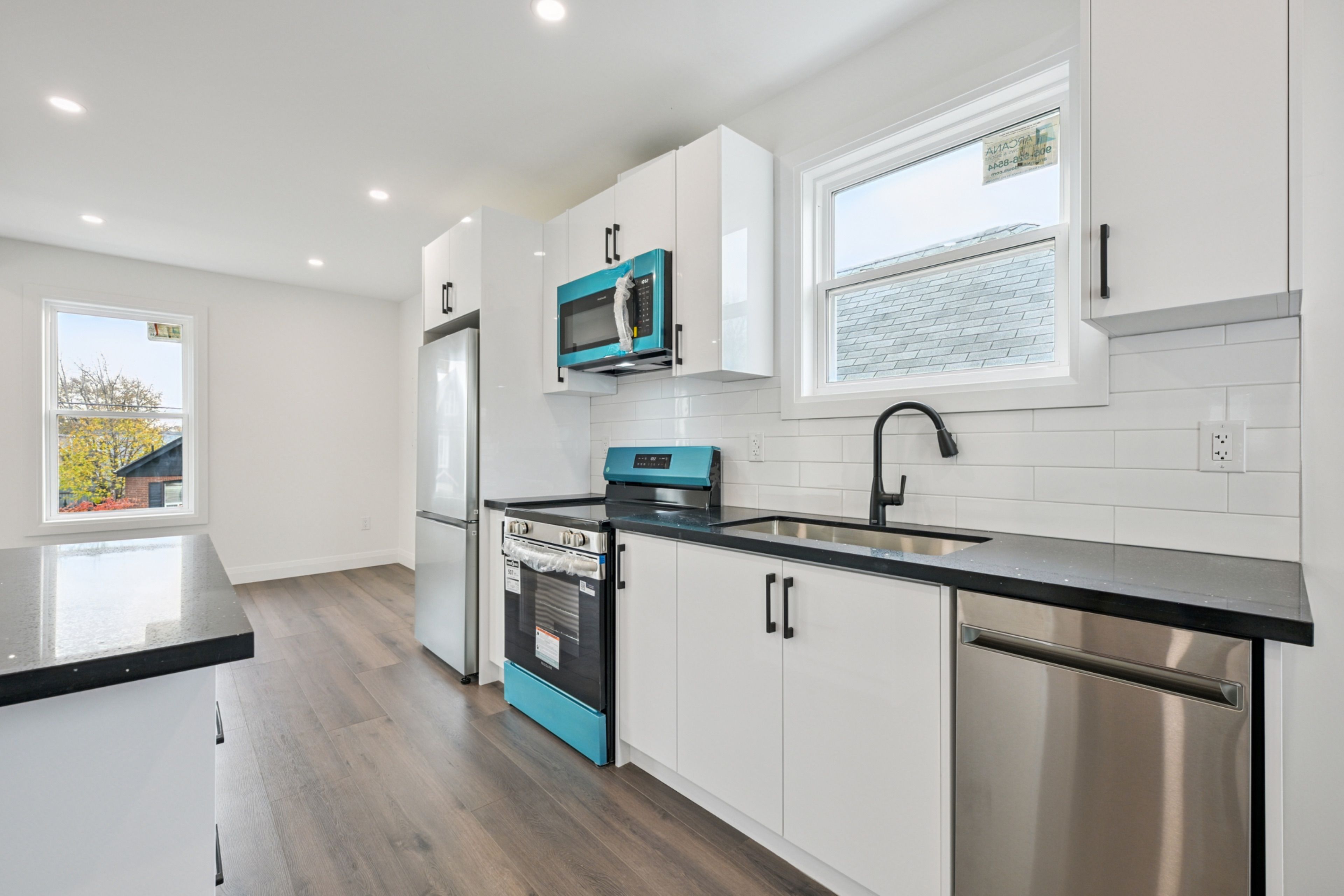 Legal duplex! Renovated top-to-bottom, beyond the studs, each self-contained 1-bed/1-bath unit showcases contemporary finishes with resilience in mind, has new appliances including their own dishwasher, full laundry, as well as modern cabinetry, and granite counters with breakfast bar island. This income-ready layout is flexible - ideal for investors, multi-generational living, or live in oneunit and rent the other! All the key structural & mechanical upgrades are done, providing peace of mind for many years: roof, windows, doors,furnace, a/c, hot water tank, electrical panels, gas meter, sump pump, incoming water service line, rear fence and stairs. A separate entranceleads to the unfinished basement making maintenance simple and secure. You have access to the main panel, furnace, and sump pump, aswell as tons of space to store any maintenance items - all separate from the finished spaces. And don't forget the foundation and structure! Both have been reinforced and approved by structural engineers! This duplex in upcoming homeside was developed with a long-term strategyin mind. Whether you're expanding your portfolio or looking for a home with built-in rental potential, take advantage of this stand-out opportunity before it's gone.