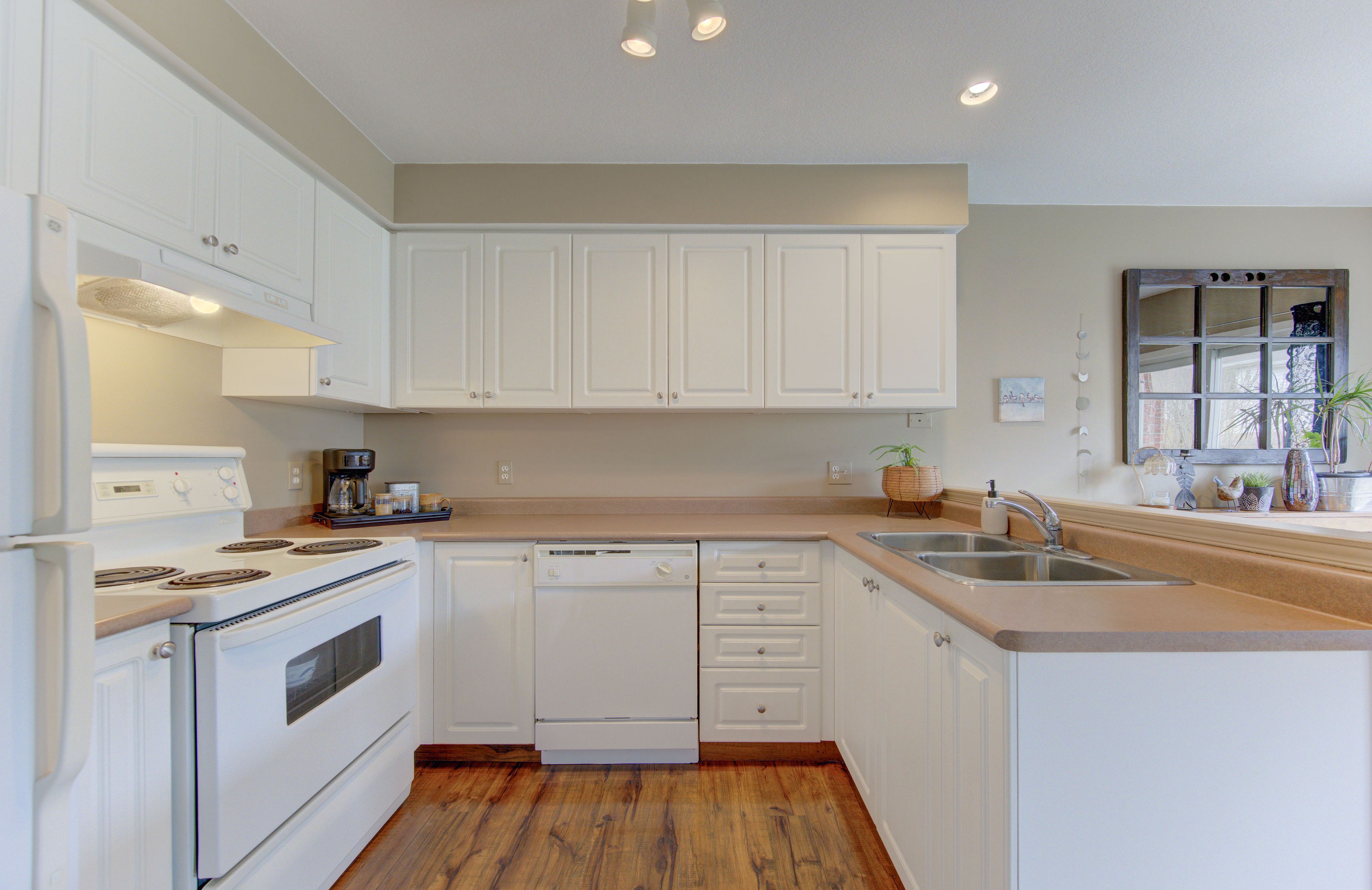• Eat-in kitchen with ample cabinets and access to a large deck.
